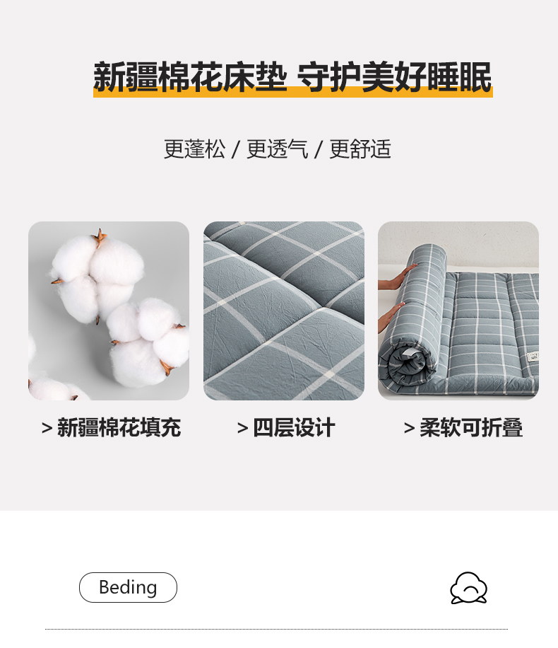 商品名称:暖阳 2025新款新疆棉花水洗棉成人家用床垫 马卡龙大格
