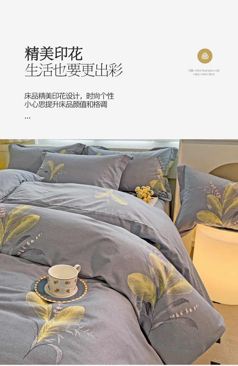 当前位置: 91家纺网 > 商品网购 > 床品套件 > 四件套 > 全棉普通四件套 > 品乐家纺 2023新款全棉喷气磨毛印花四件套 幻彩羽叶-灰