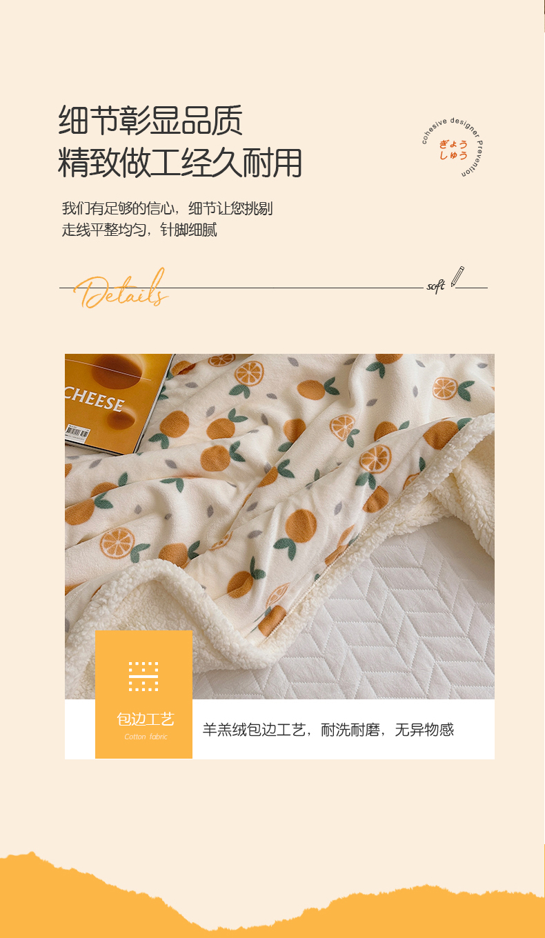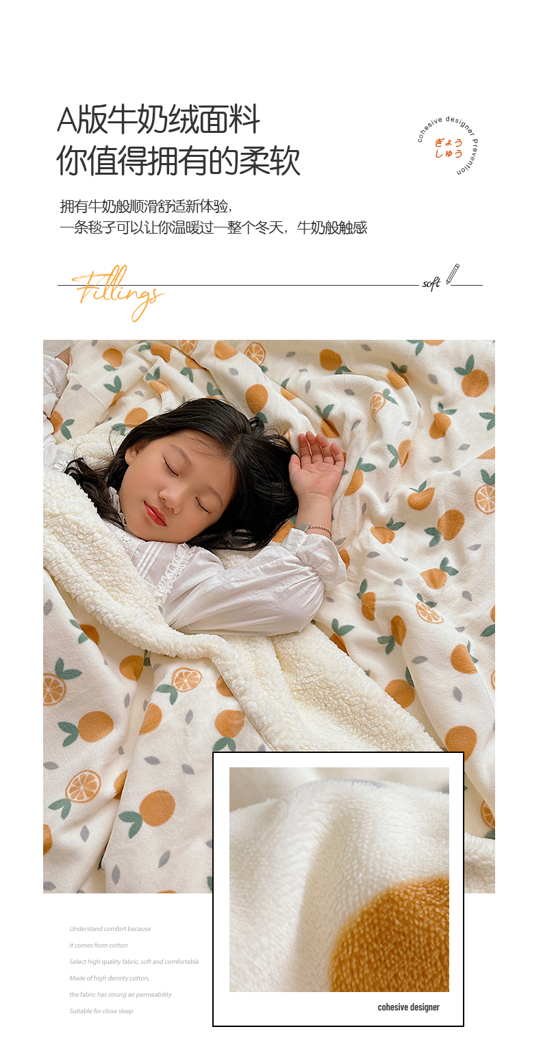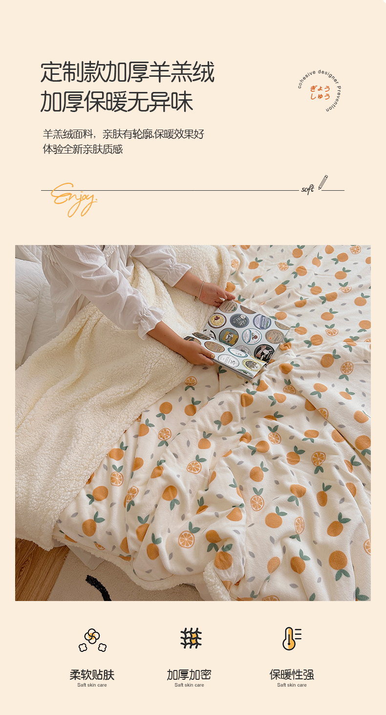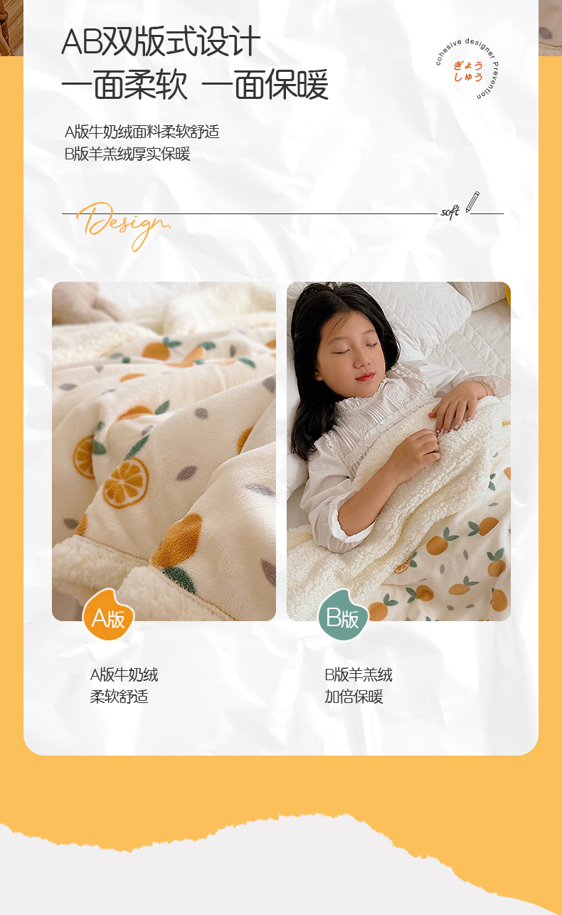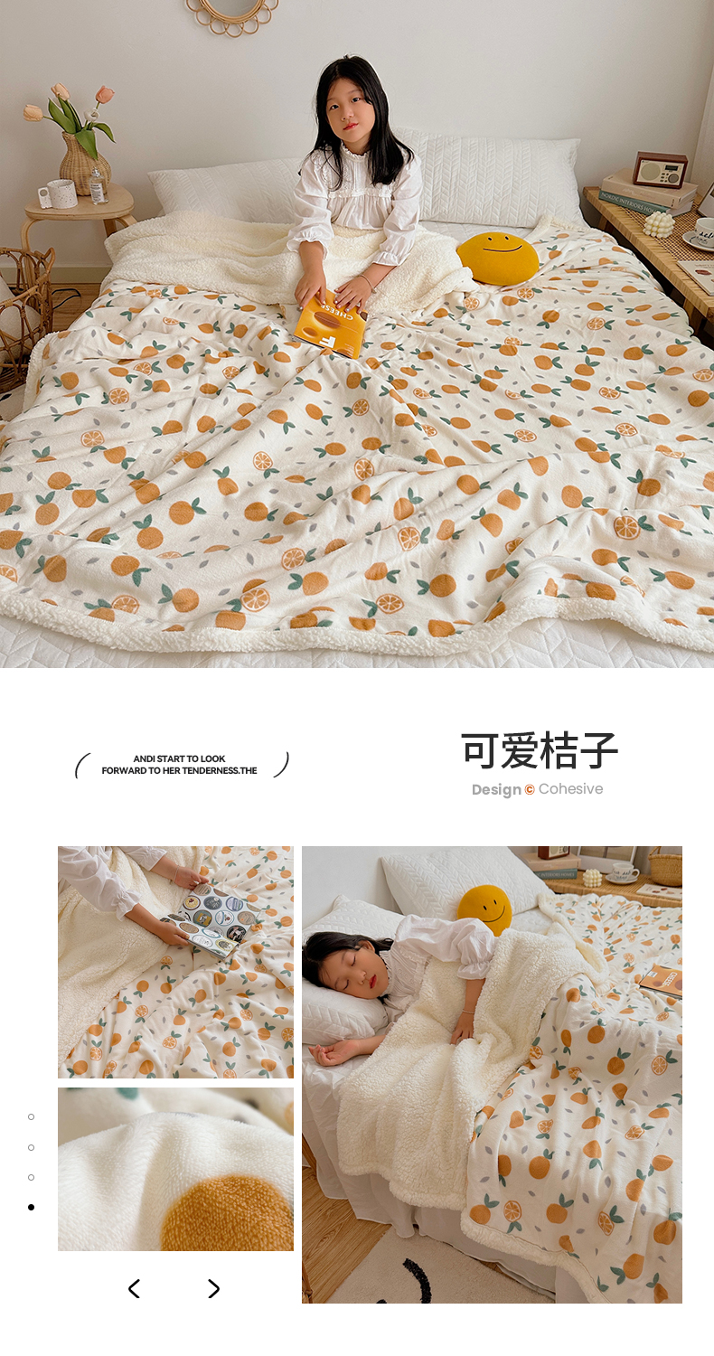 萝莉家纺 2023新款ins加厚牛奶绒羊羔绒毯午睡毯沙发盖毯 可爱桔子