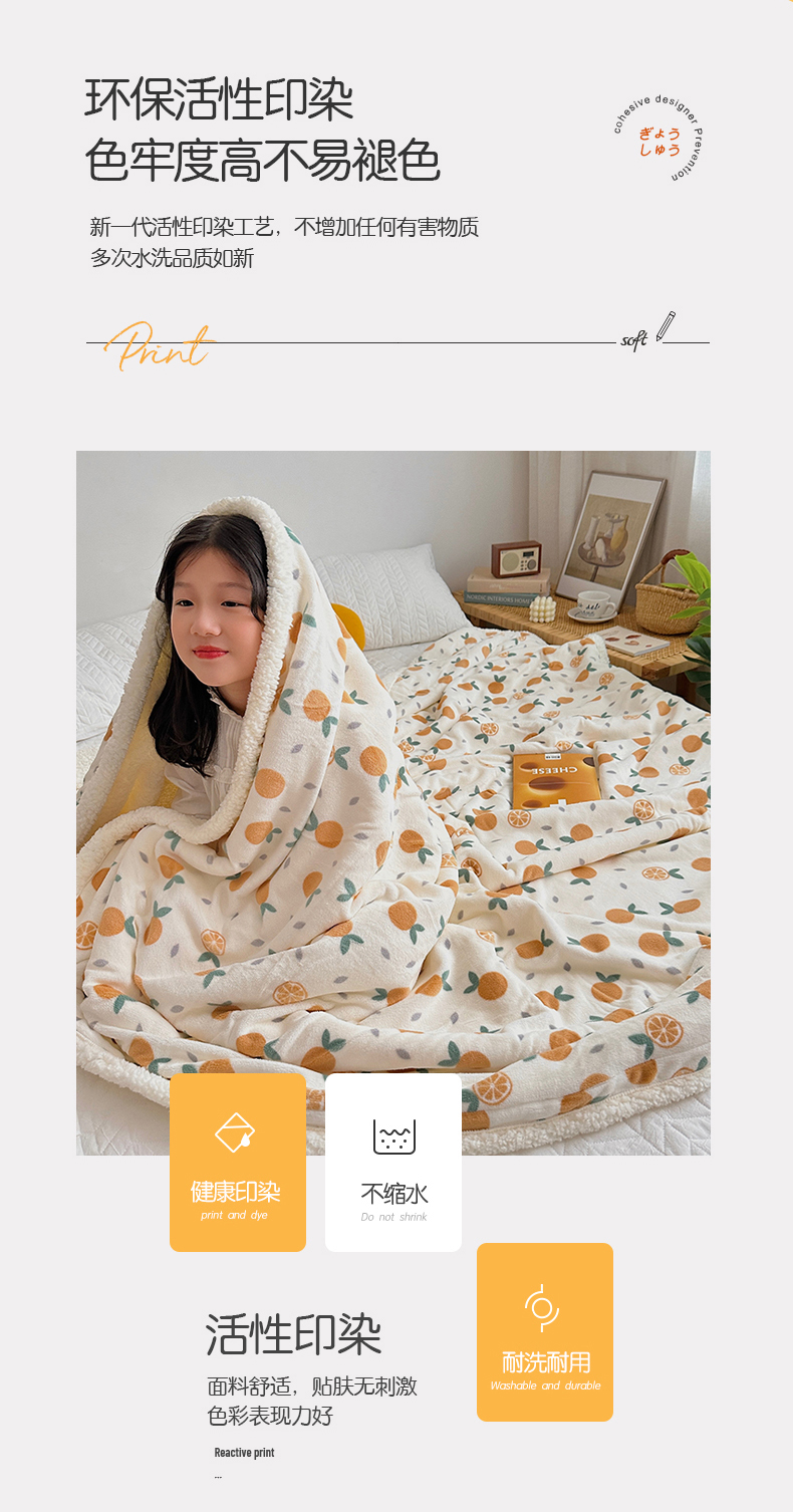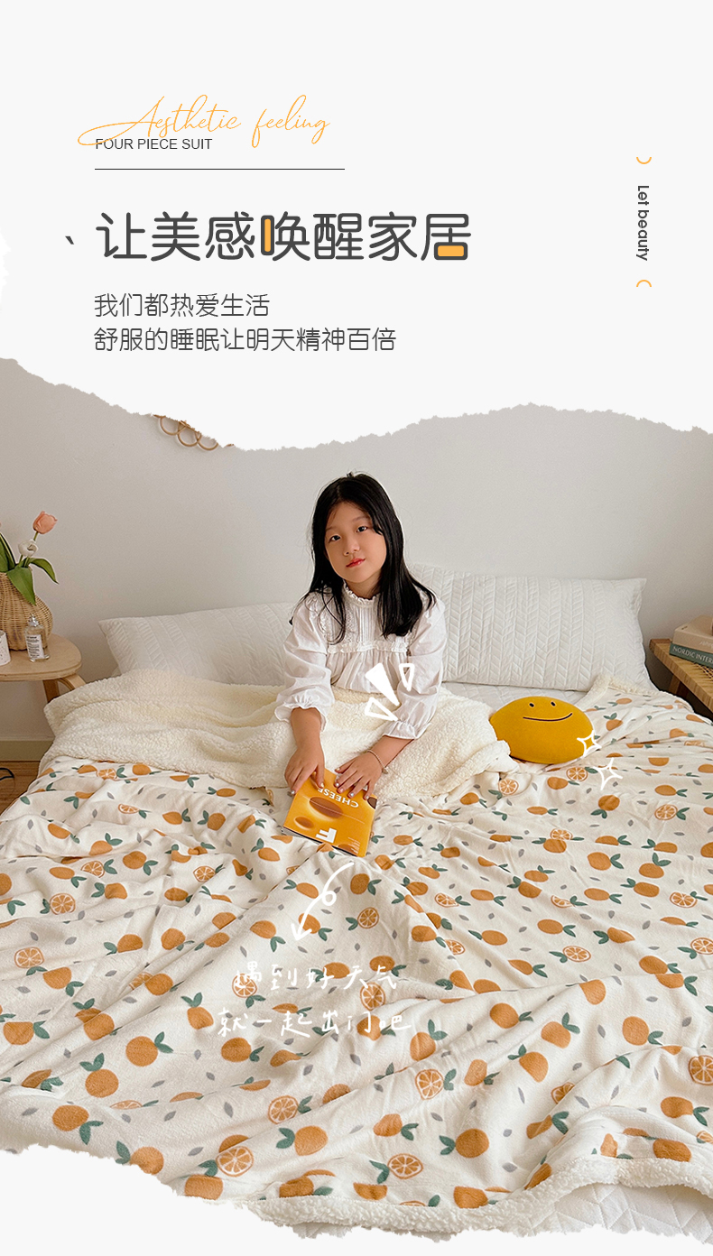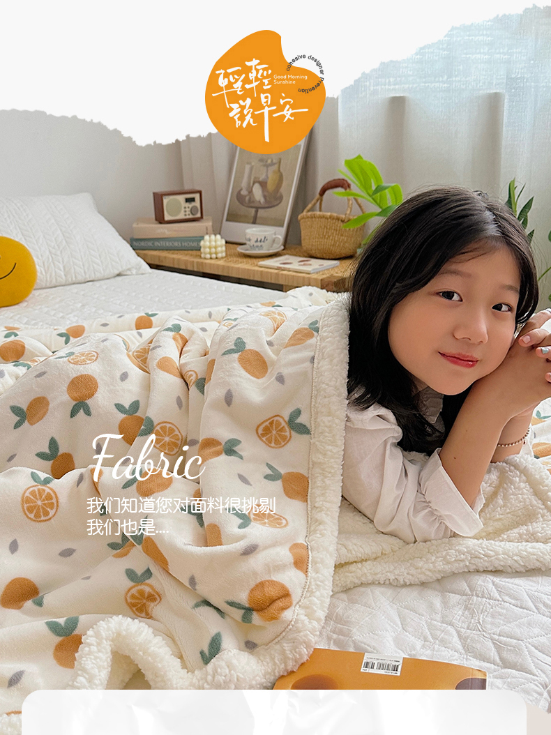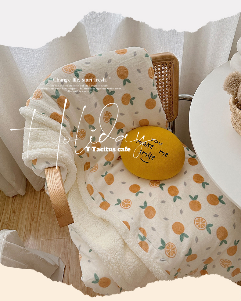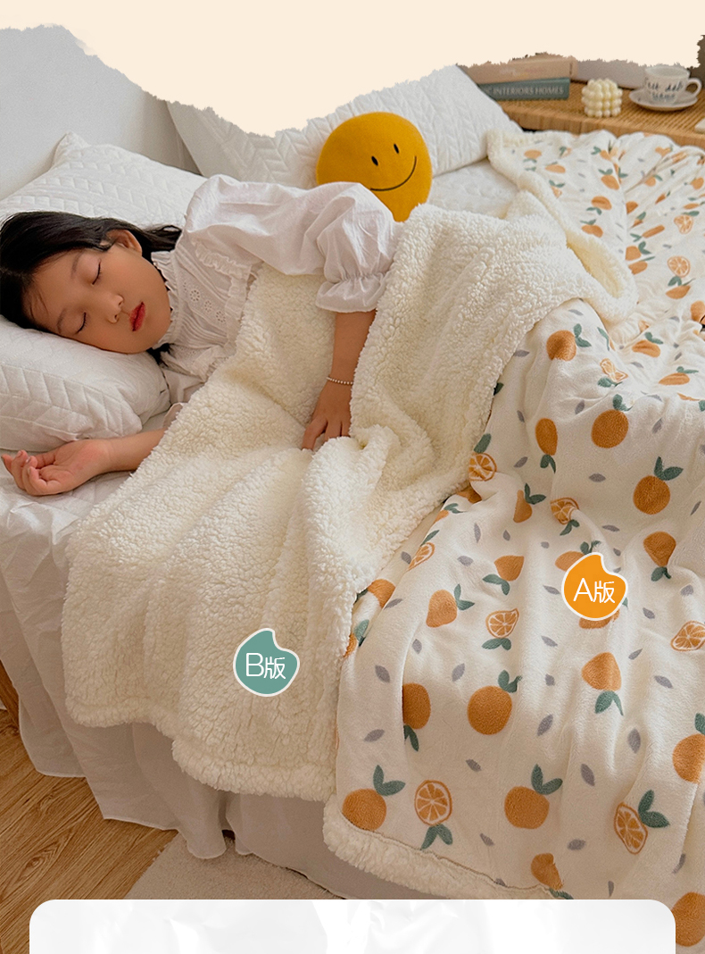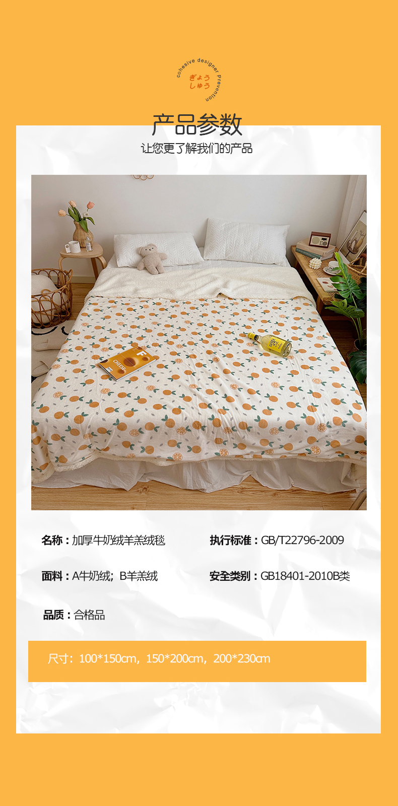 萝莉家纺 2023新款ins加厚牛奶绒羊羔绒毯午睡毯沙发盖毯 可爱桔子