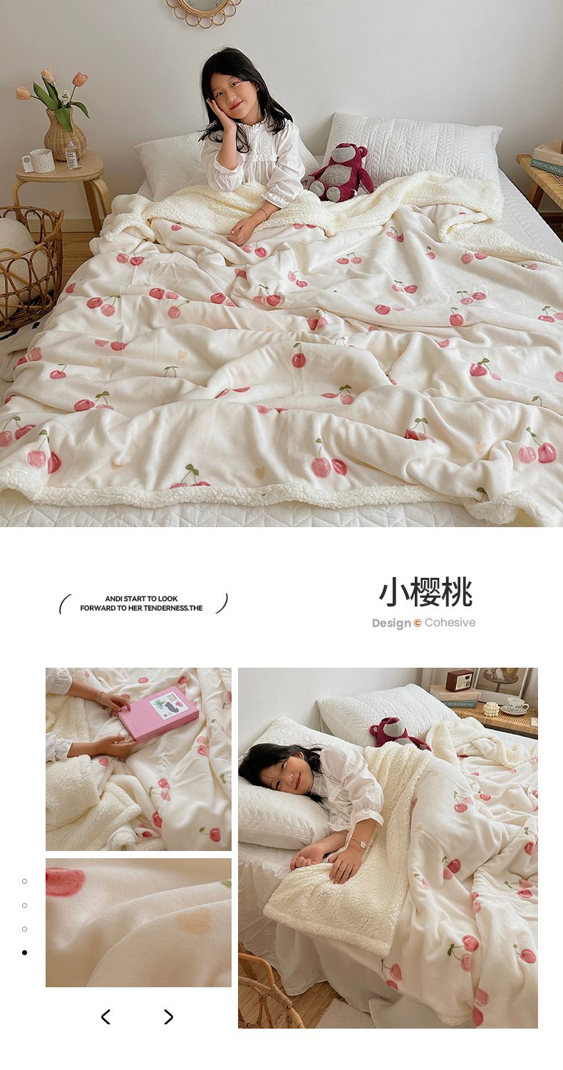 萝莉家纺 2023新款ins加厚牛奶绒羊羔绒毯午睡毯沙发盖毯 小樱桃