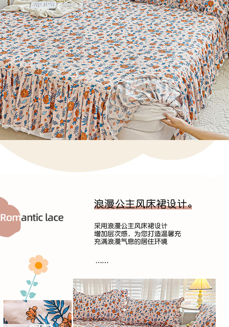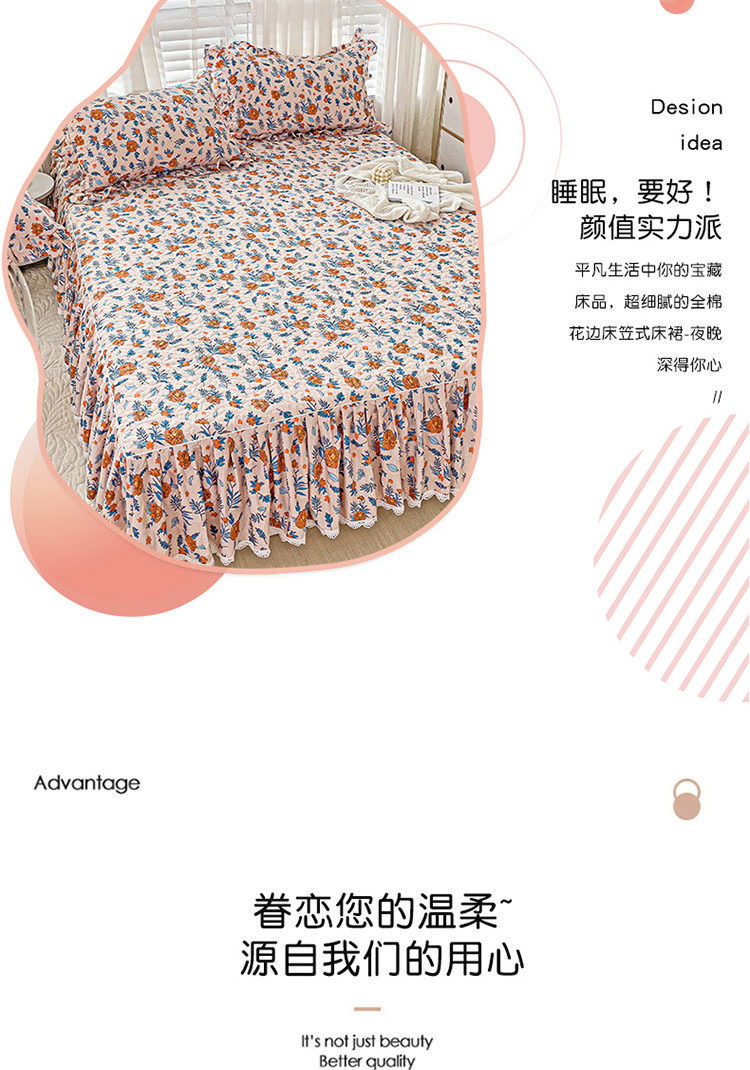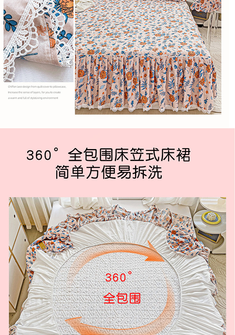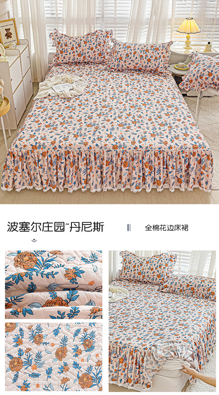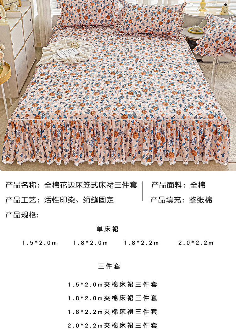 • 91家纺网 家纺一手货源 找家纺 罗艺轩 2024新款全棉花边床笠式夹棉床裙三件套波塞尔庄园丹尼斯