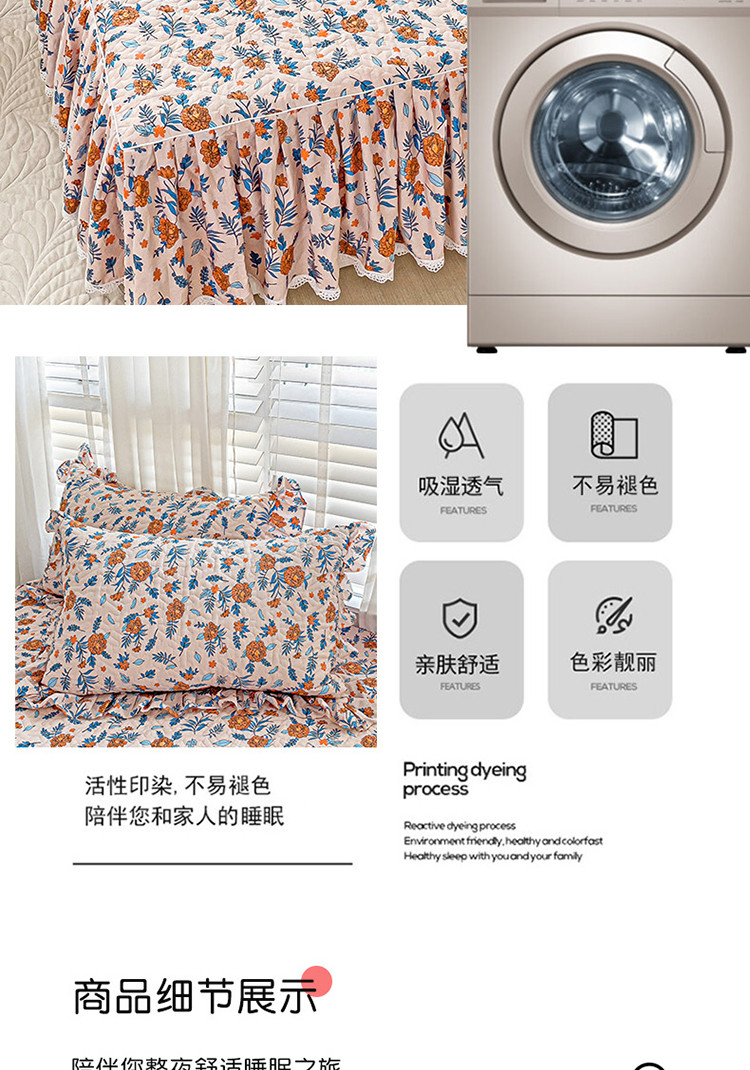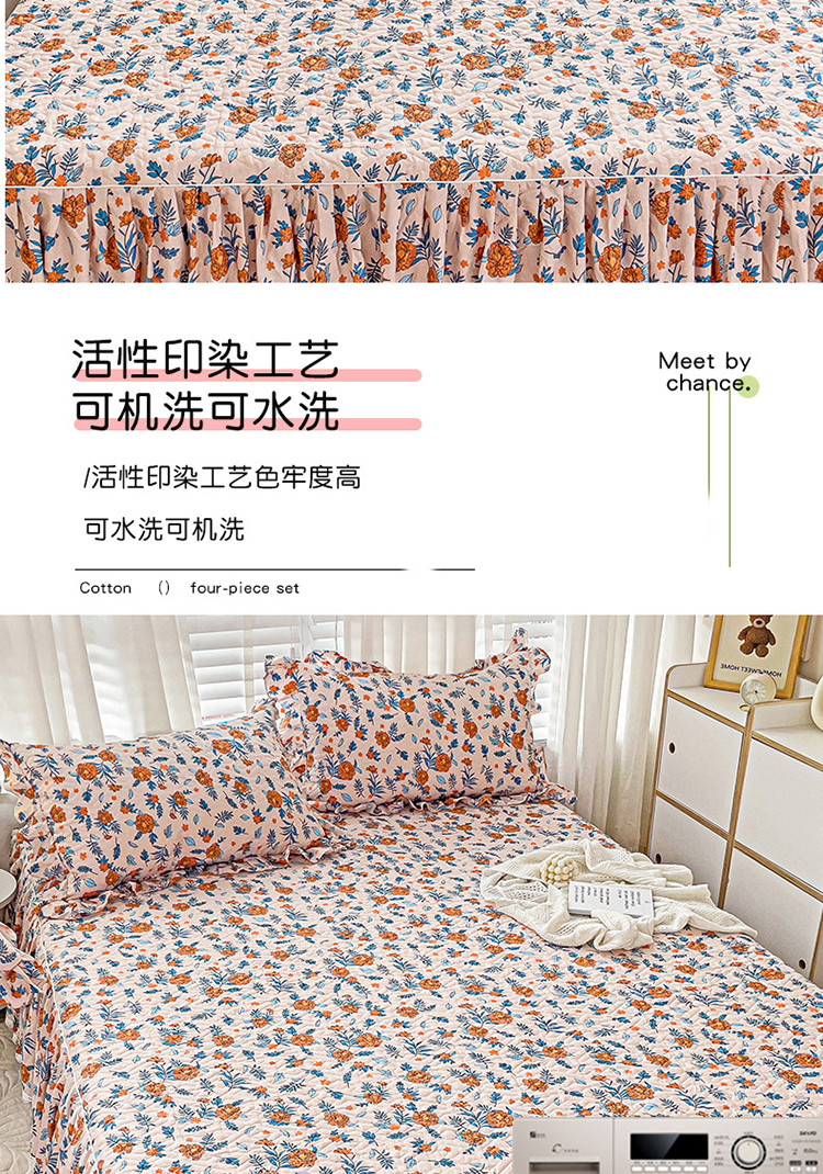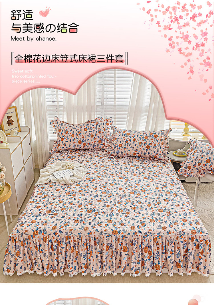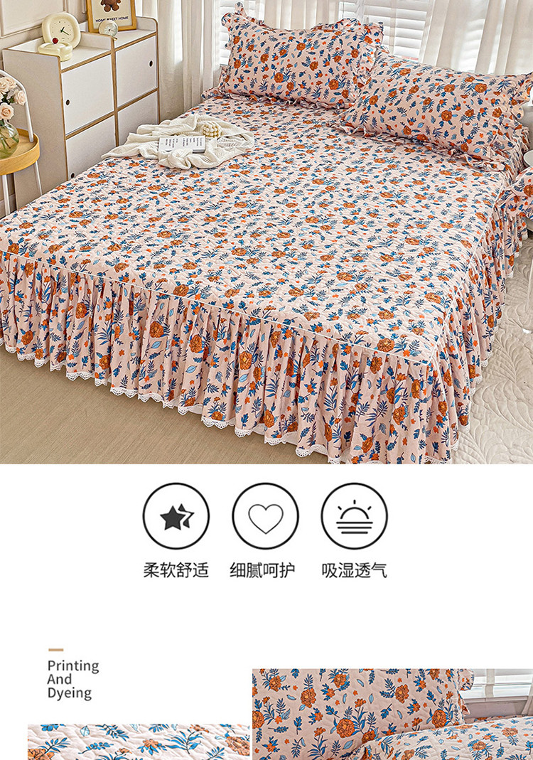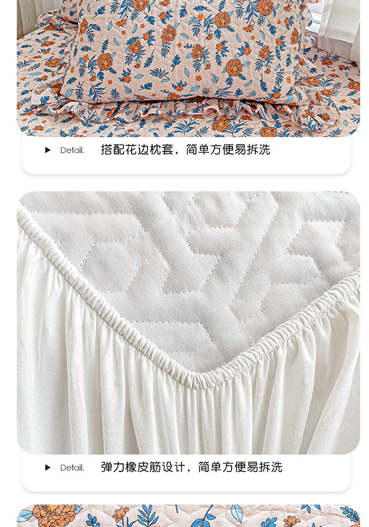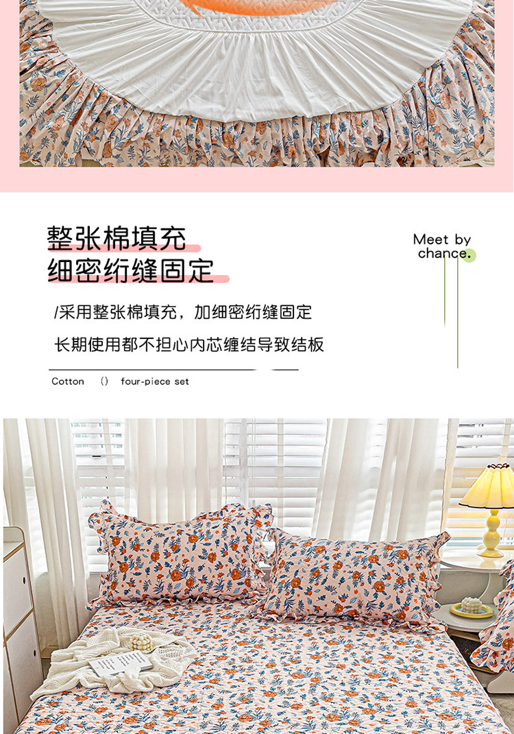• 91家纺网 家纺一手货源 找家纺 罗艺轩 2024新款全棉花边床笠式夹棉床裙三件套波塞尔庄园丹尼斯