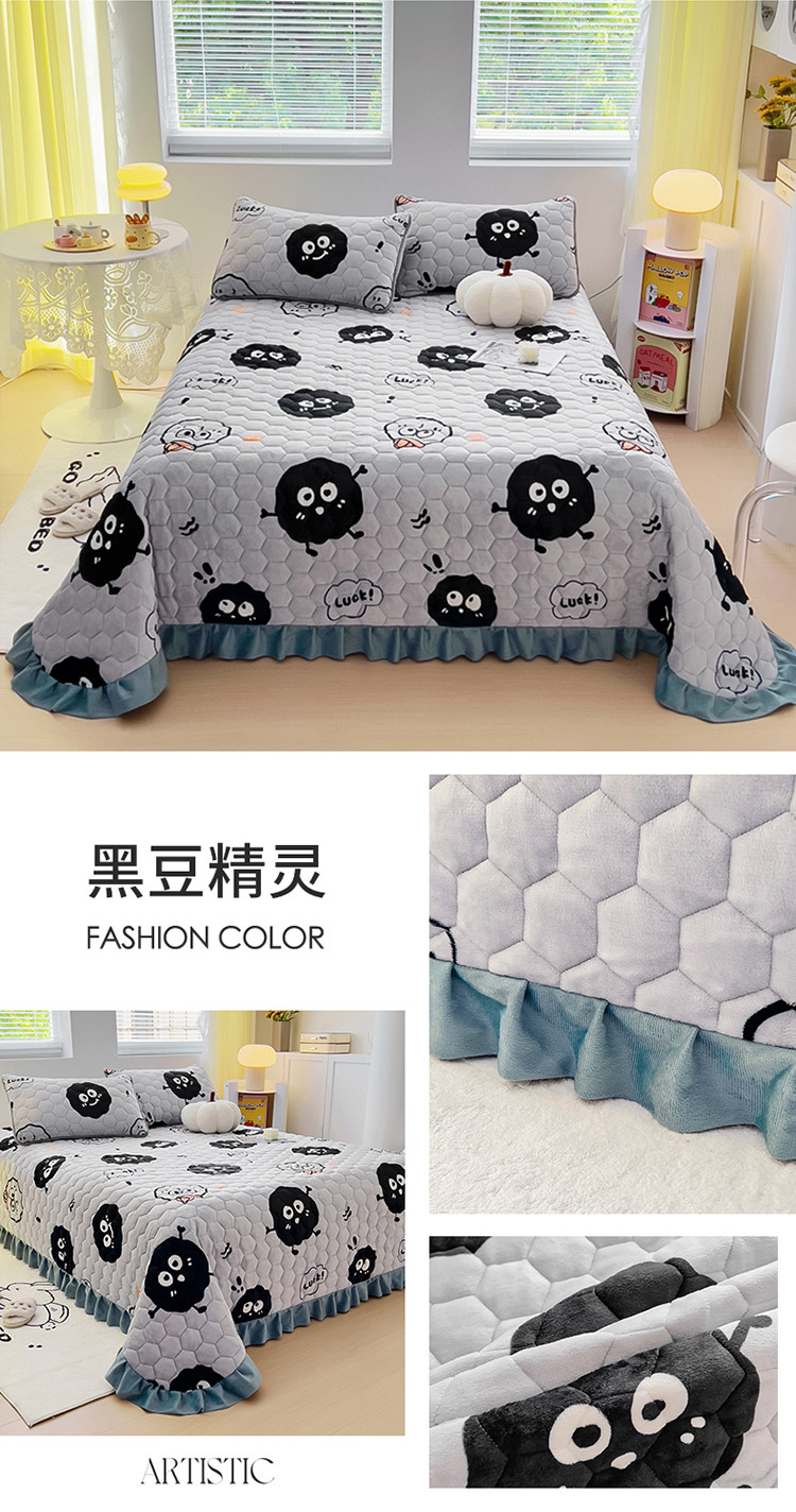 商品名称:情煊 2023新款牛奶绒印花床盖 黑豆精灵
