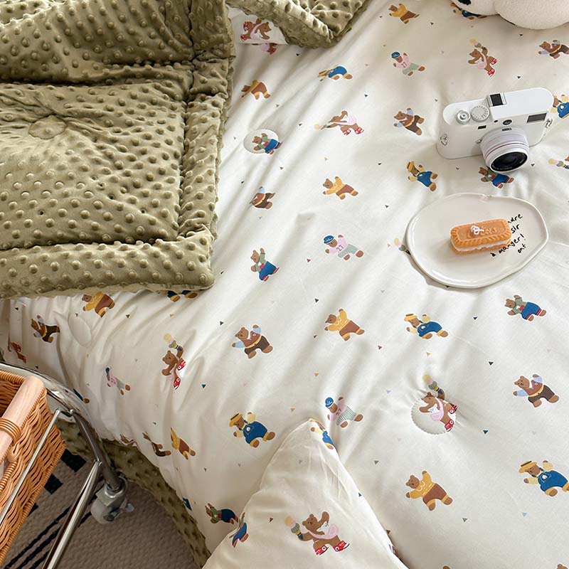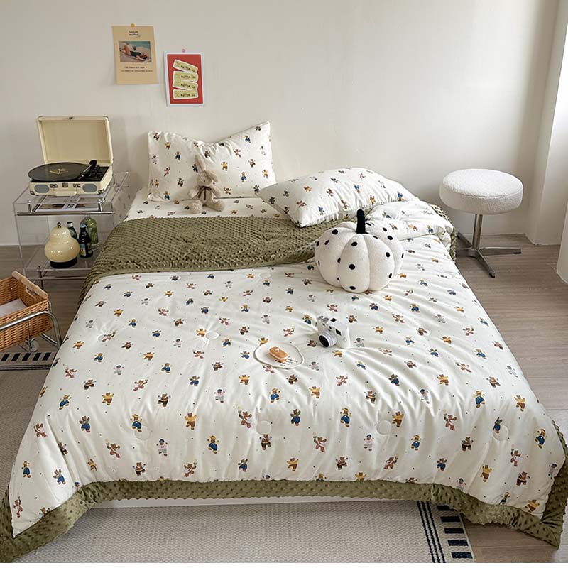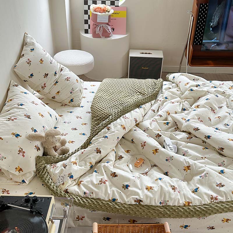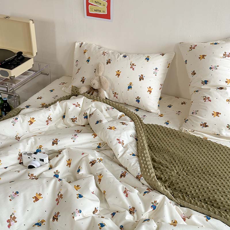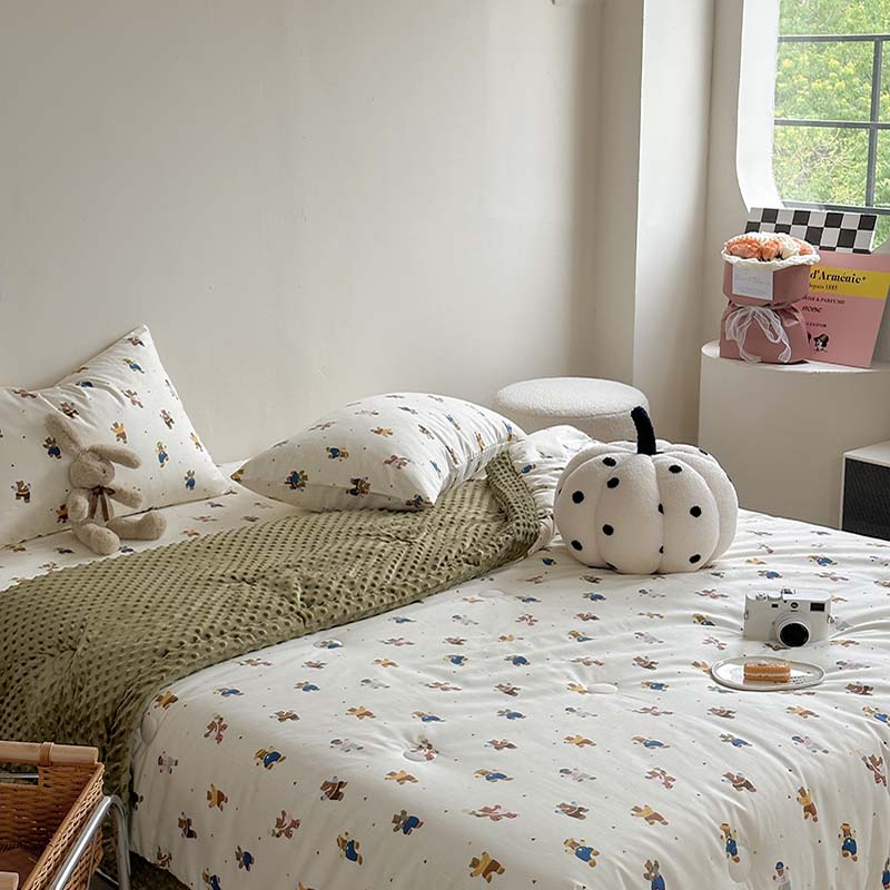 商品名称:星期八 2023新款复古碎花全棉豆豆春秋被四件套 可爱熊
