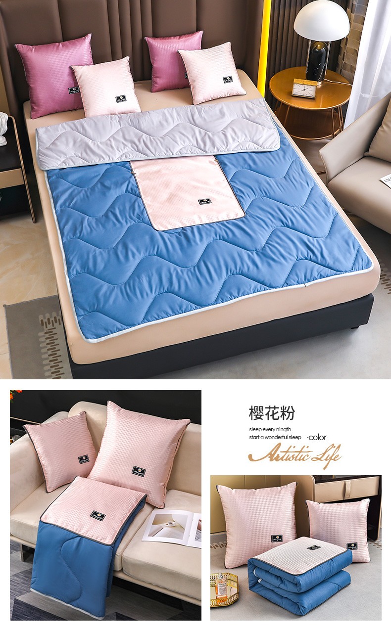 商品名称:伊可爱抱枕被 2023新款天丝凉感提花多针抱枕被 千鸟格-樱花粉