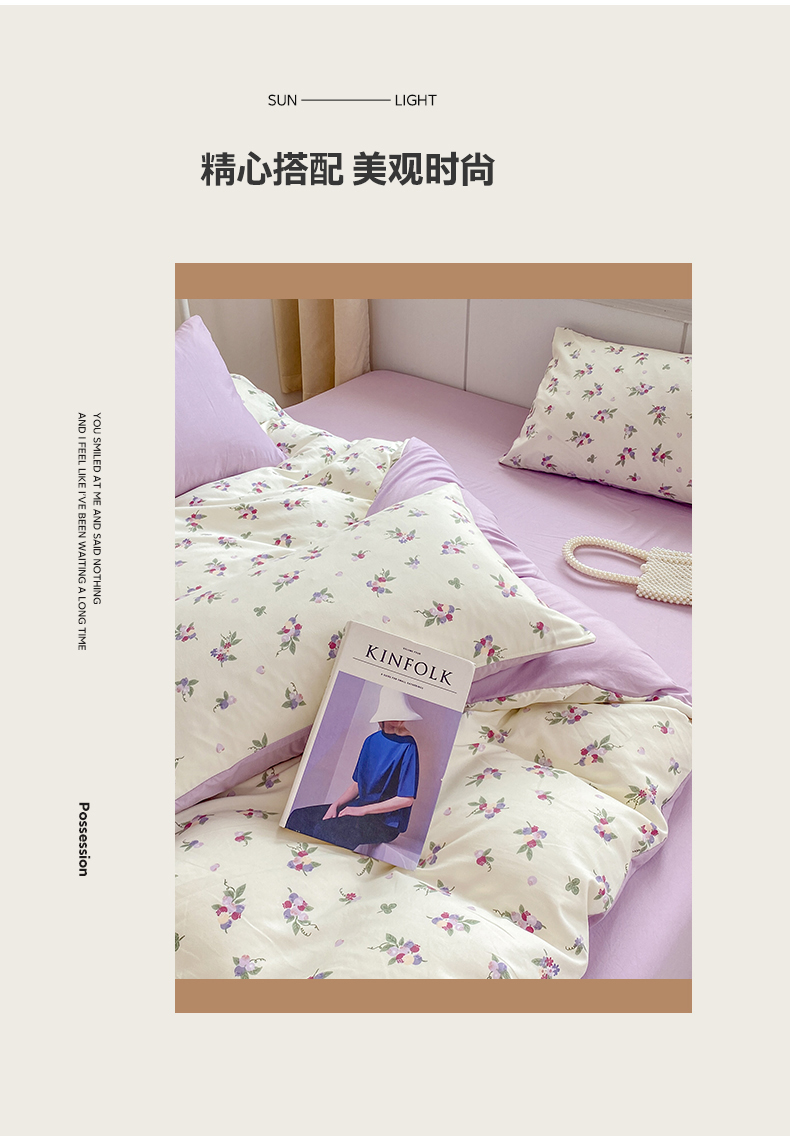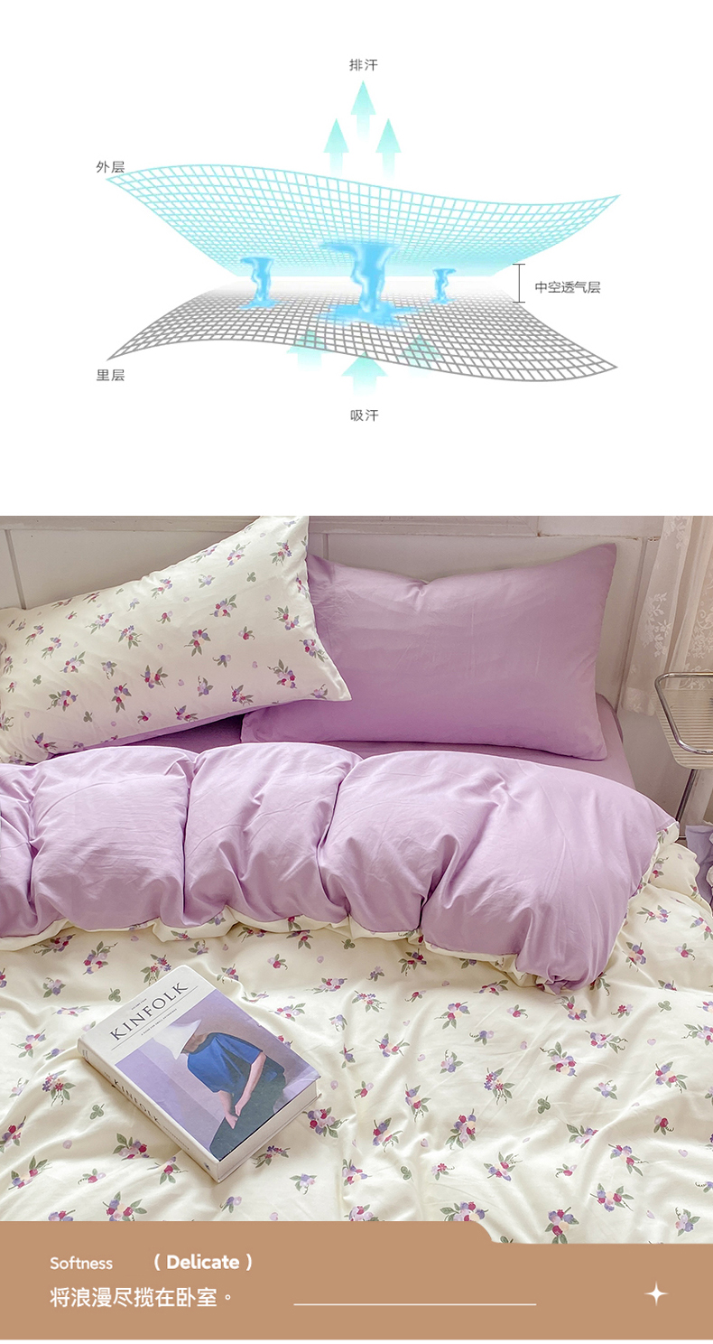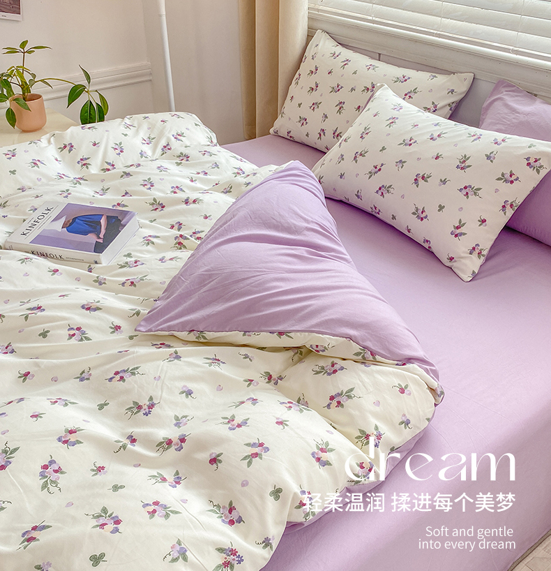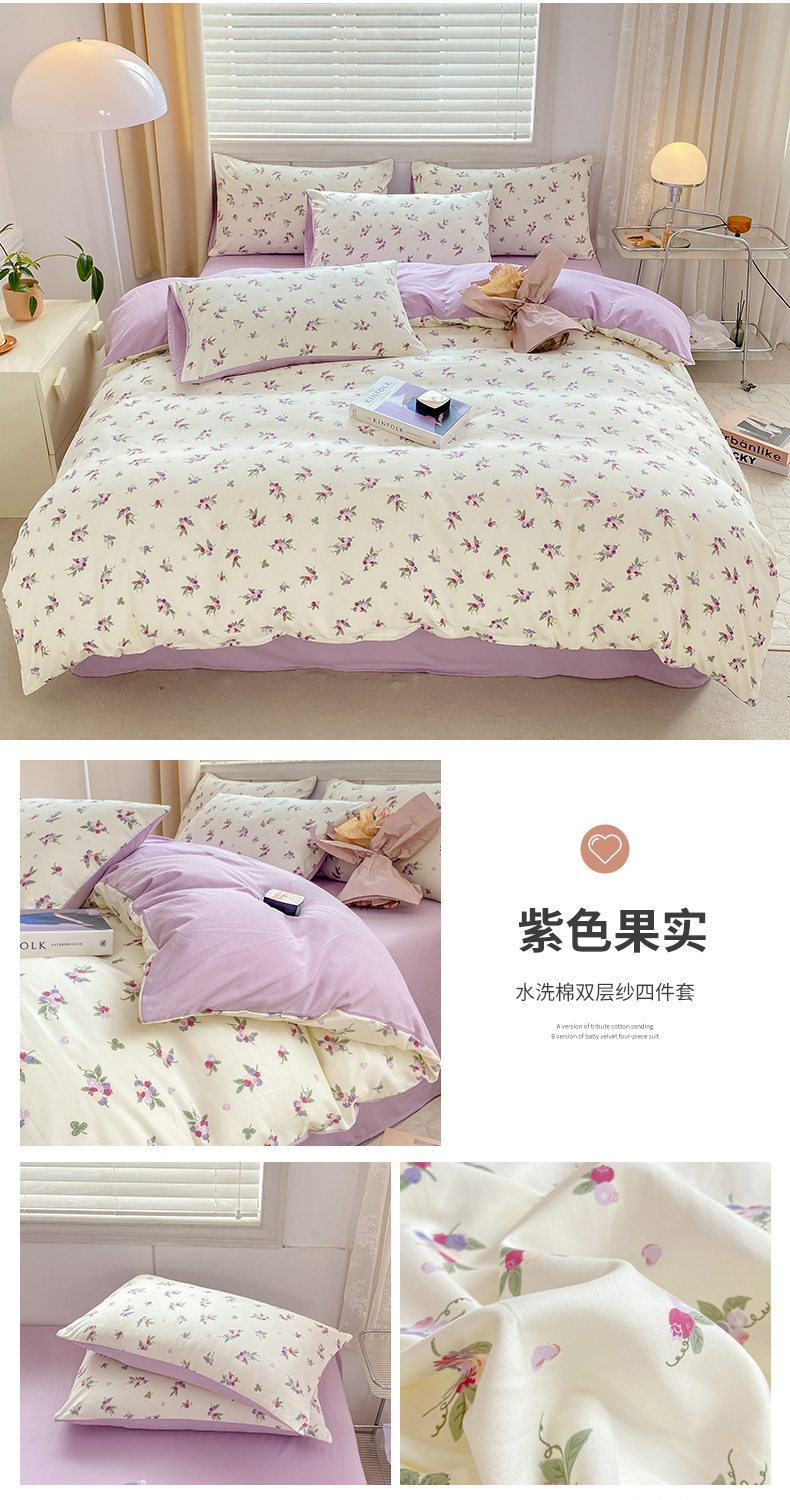 当前位置: 91家纺网 > 商品网购 > 床品套件 > 四件套 > 全棉普通四件套 > 雅阁尔 2023新款直播爆款母婴级水洗棉双层纱四件套小碎花被套床笠款三件套 紫色果实