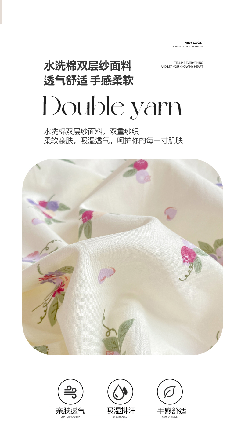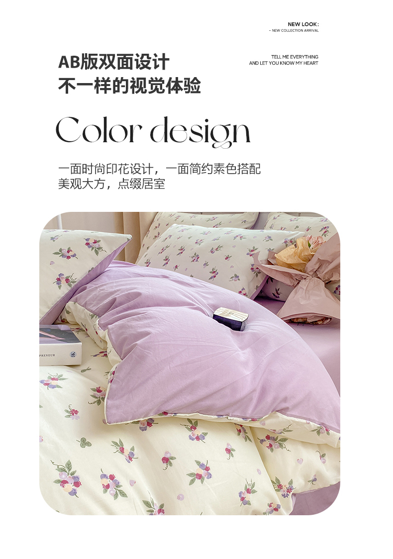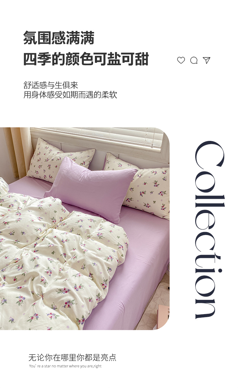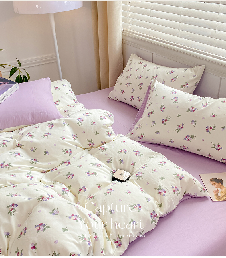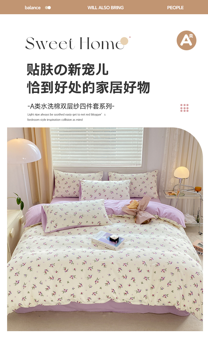 当前位置: 91家纺网 > 商品网购 > 床品套件 > 四件套 > 全棉普通四件套 > 雅阁尔 2023新款直播爆款母婴级水洗棉双层纱四件套小碎花被套床笠款三件套 紫色果实