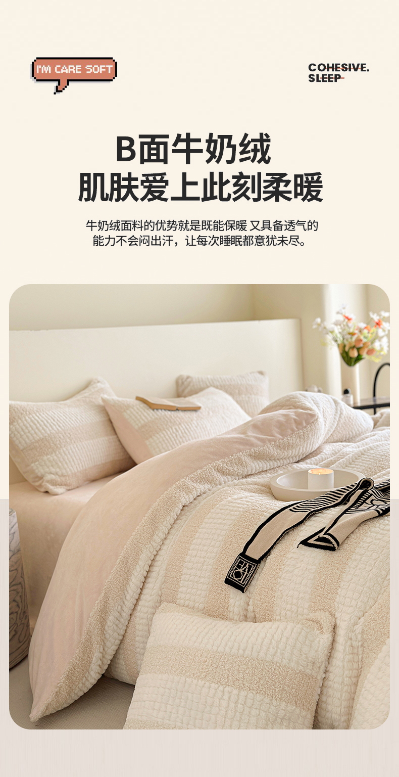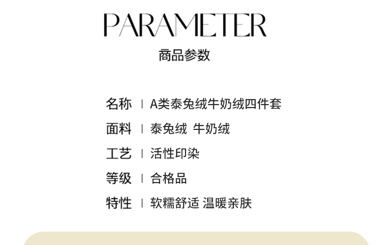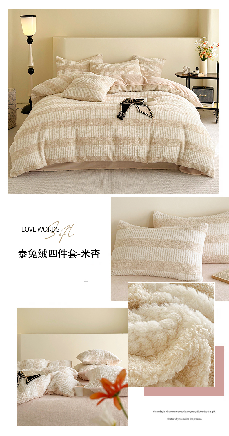 当前位置: 91家纺网 > 商品网购 > 床品套件 > 四件套 > 牛奶绒四件套 > 网客 2024新款泰兔绒牛奶绒四件套 泰兔绒四件套-米杏