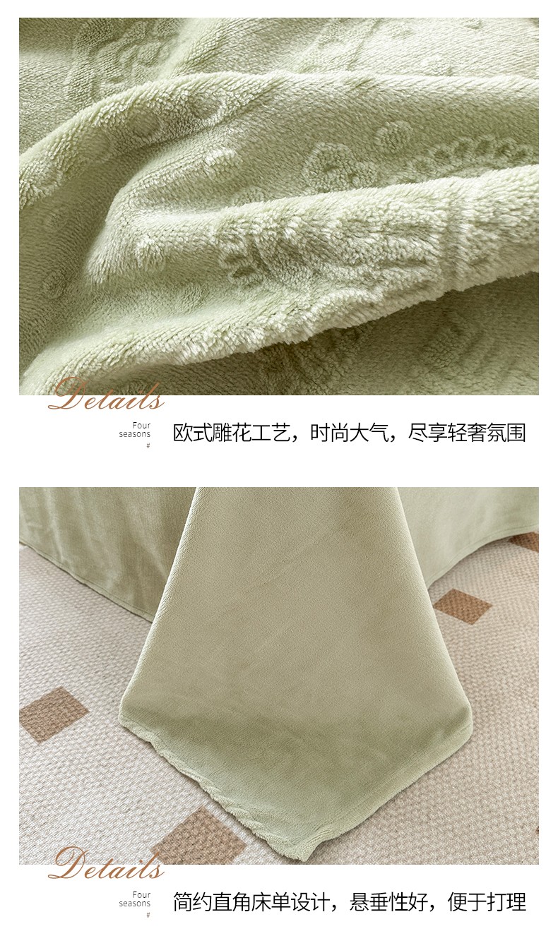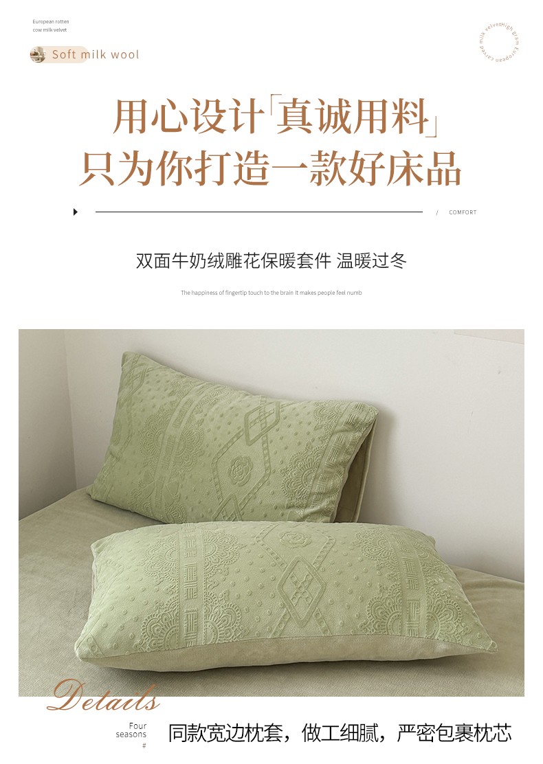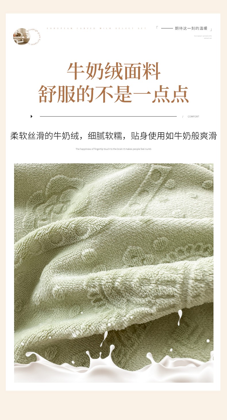 商品名称:优彩 2023新款高克重烂花牛奶绒剪花立体雕花牛奶绒四件套 米兰-森绿