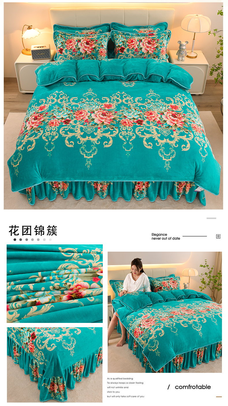 金柚子 2024新款加厚牛奶绒四件套 花团锦簇