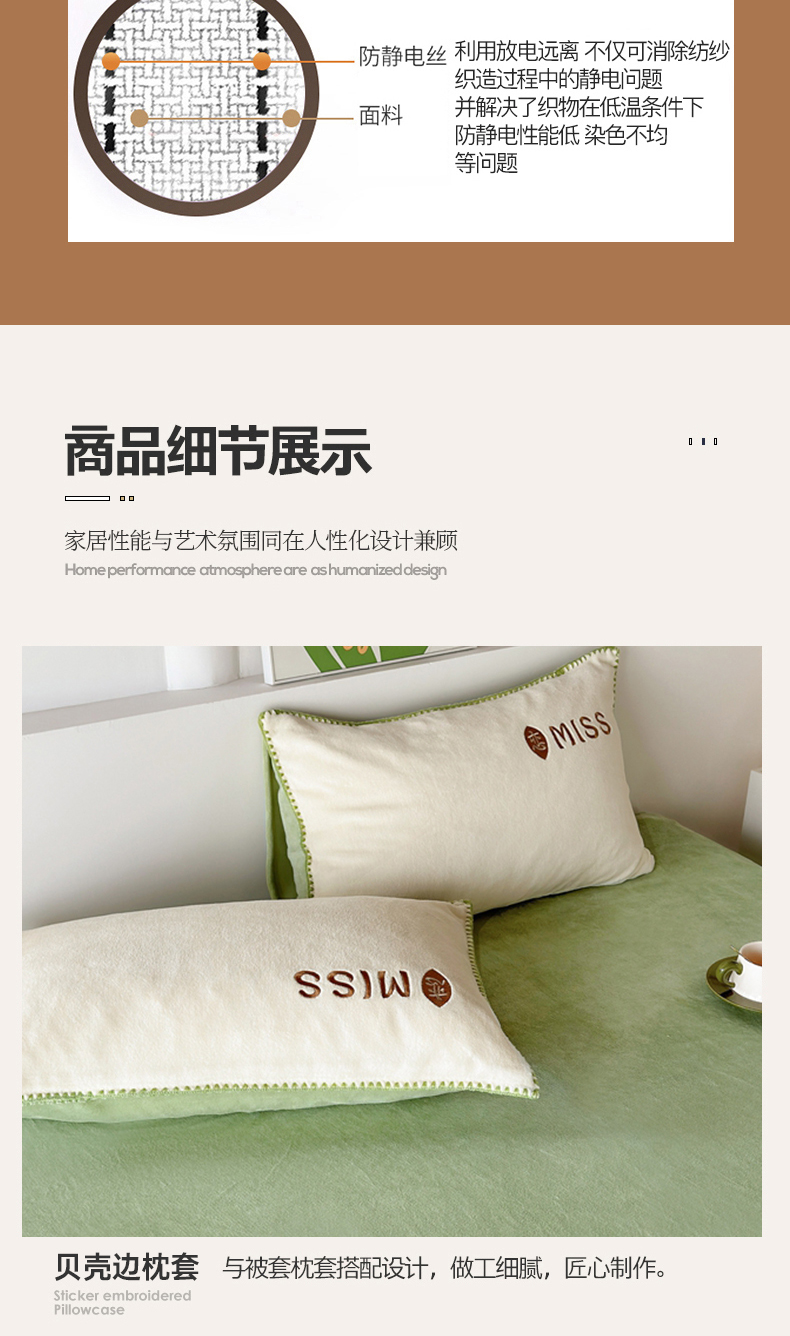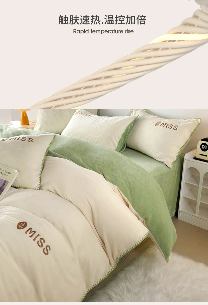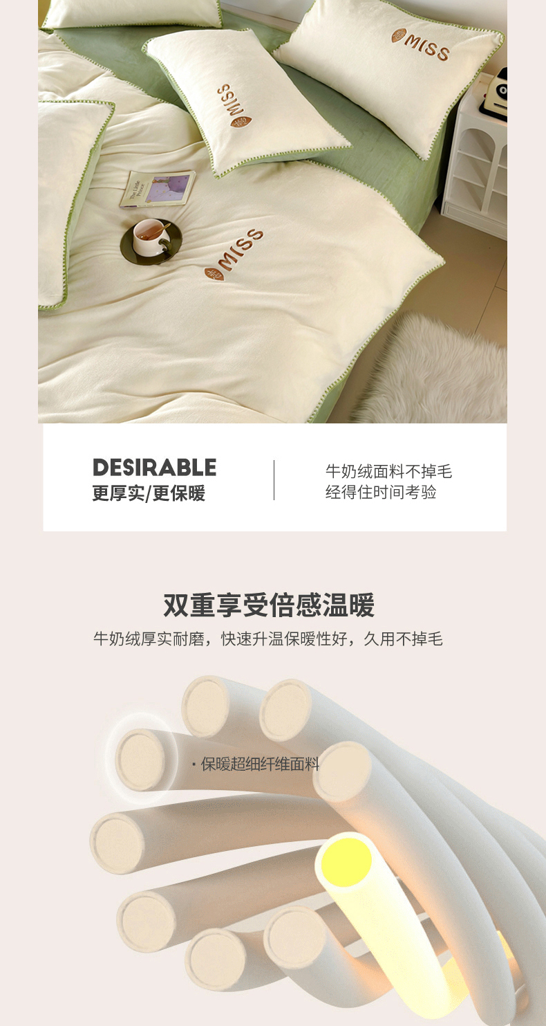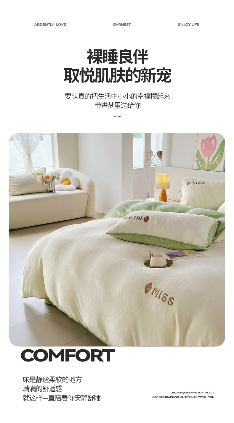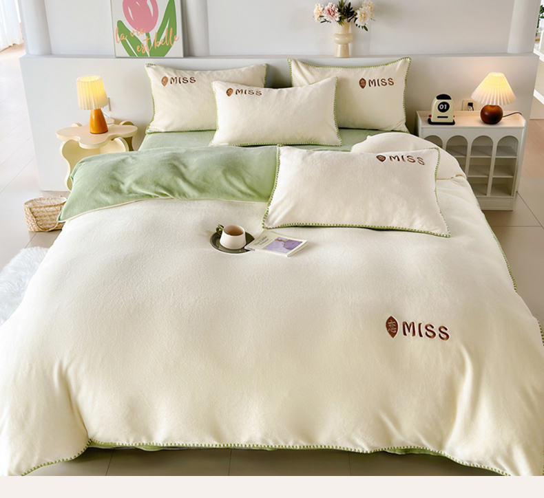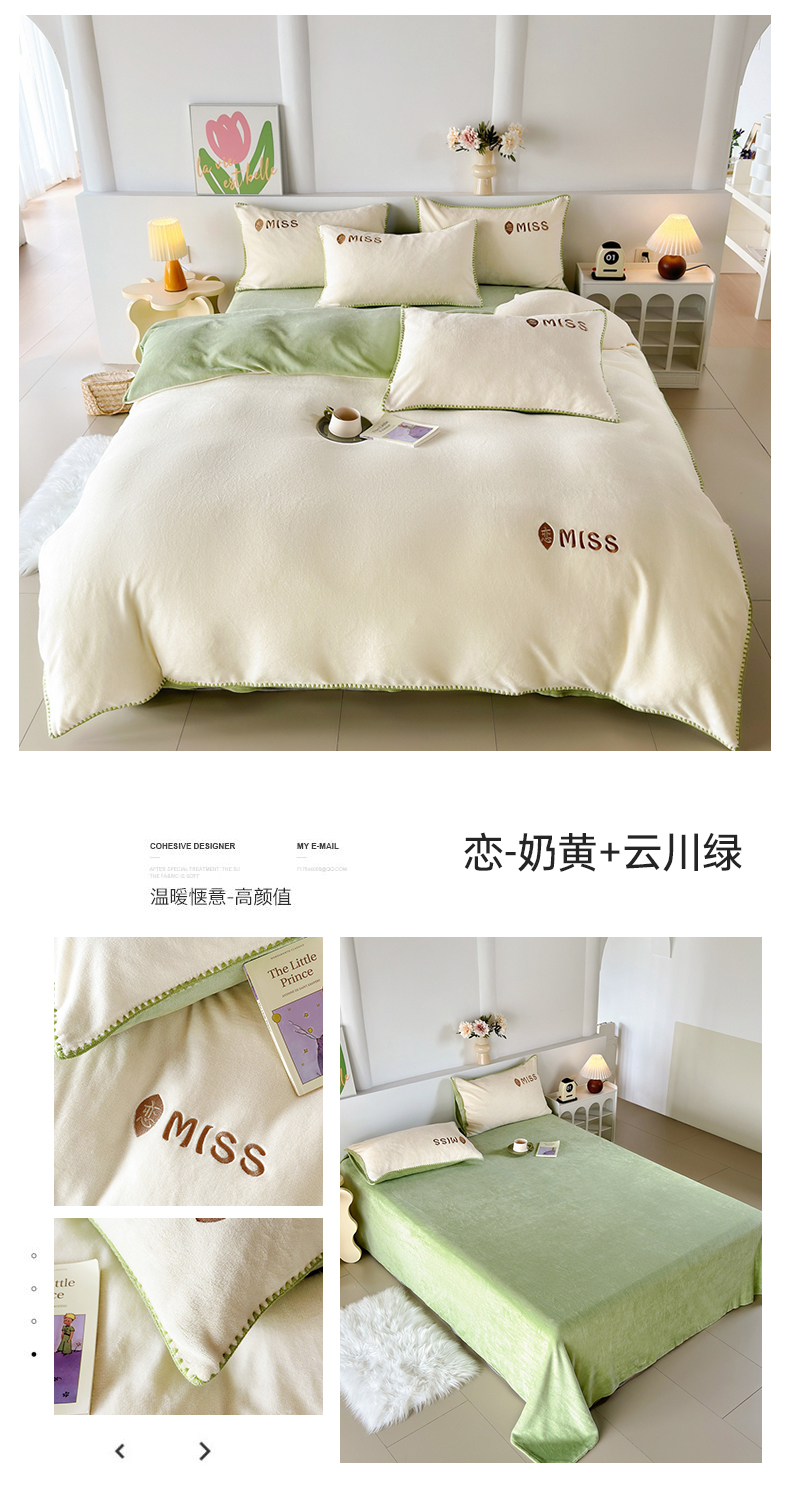 当前位置: 91家纺网 > 商品网购 > 床品套件 > 四件套 > 牛奶绒四件套 > 眷恋 2024新款贝壳边牛奶绒刺绣四件套 恋-奶黄+云川绿