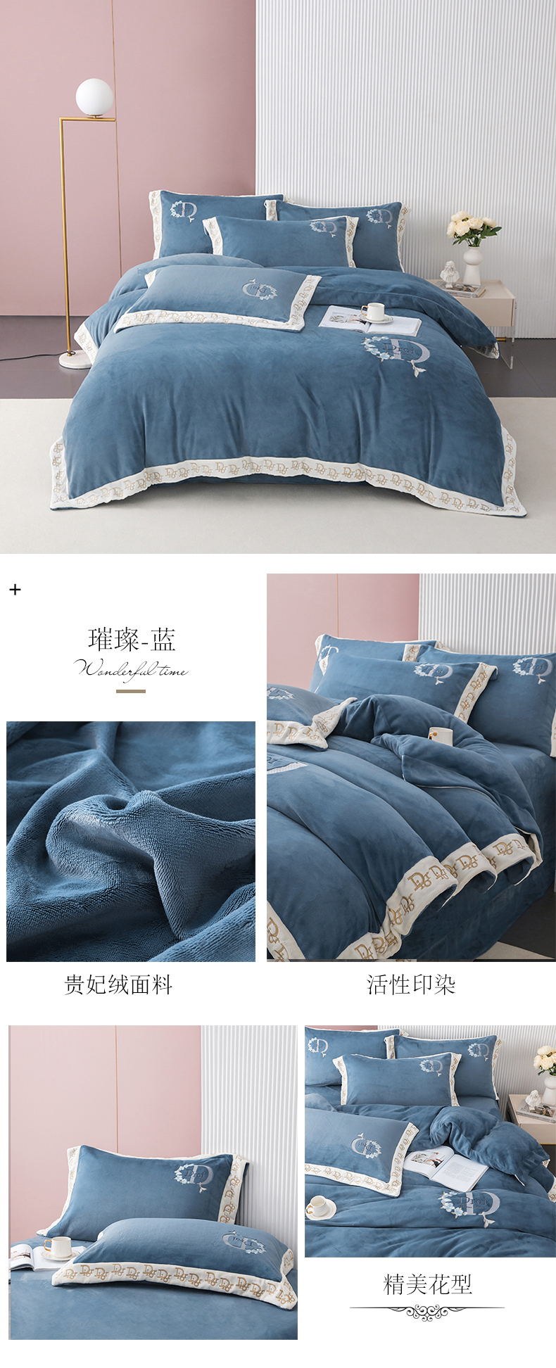 商品名称:寐时代 2023新款轻奢高端贵妃绒绒绣花款四件套 璀璨迪奥-蓝