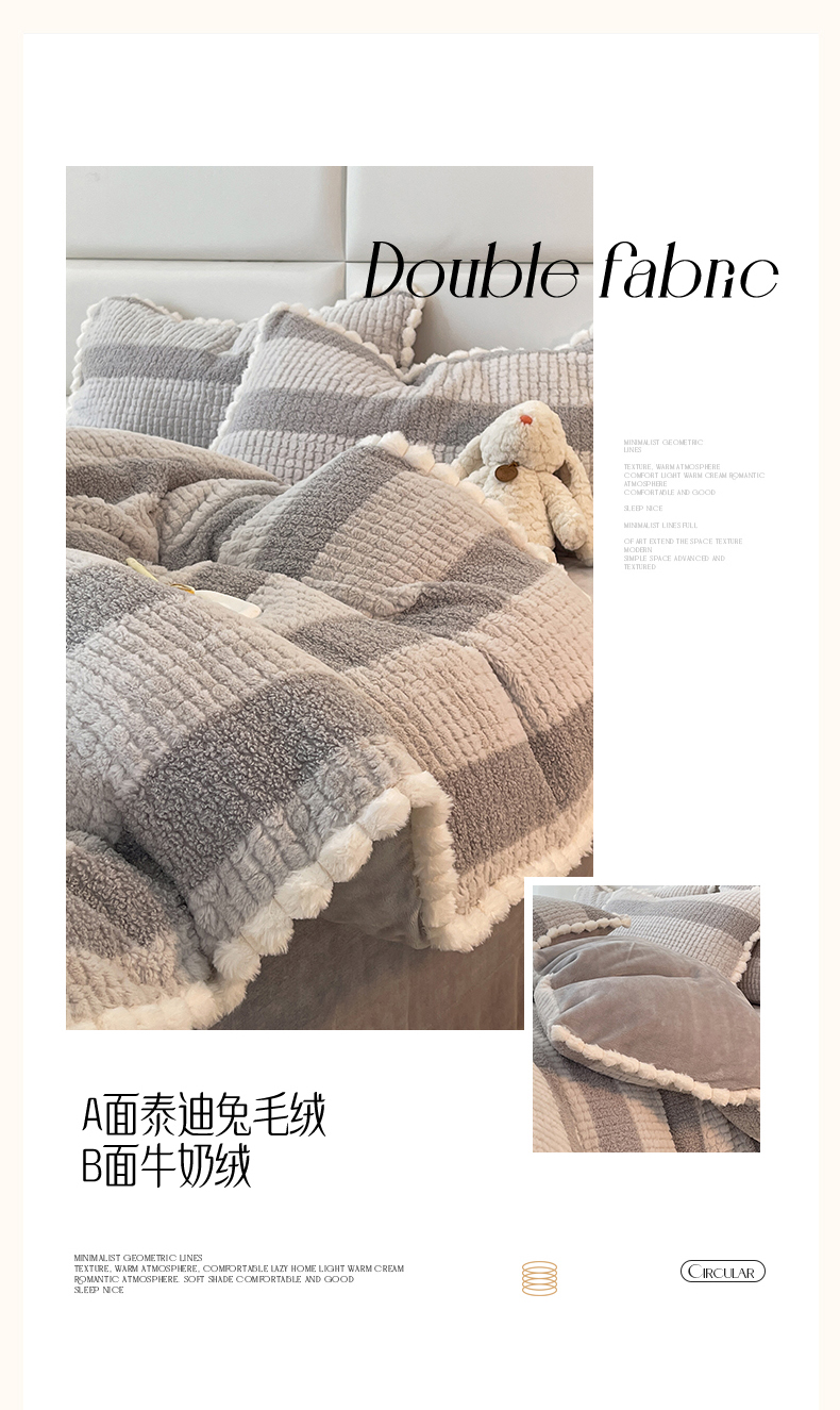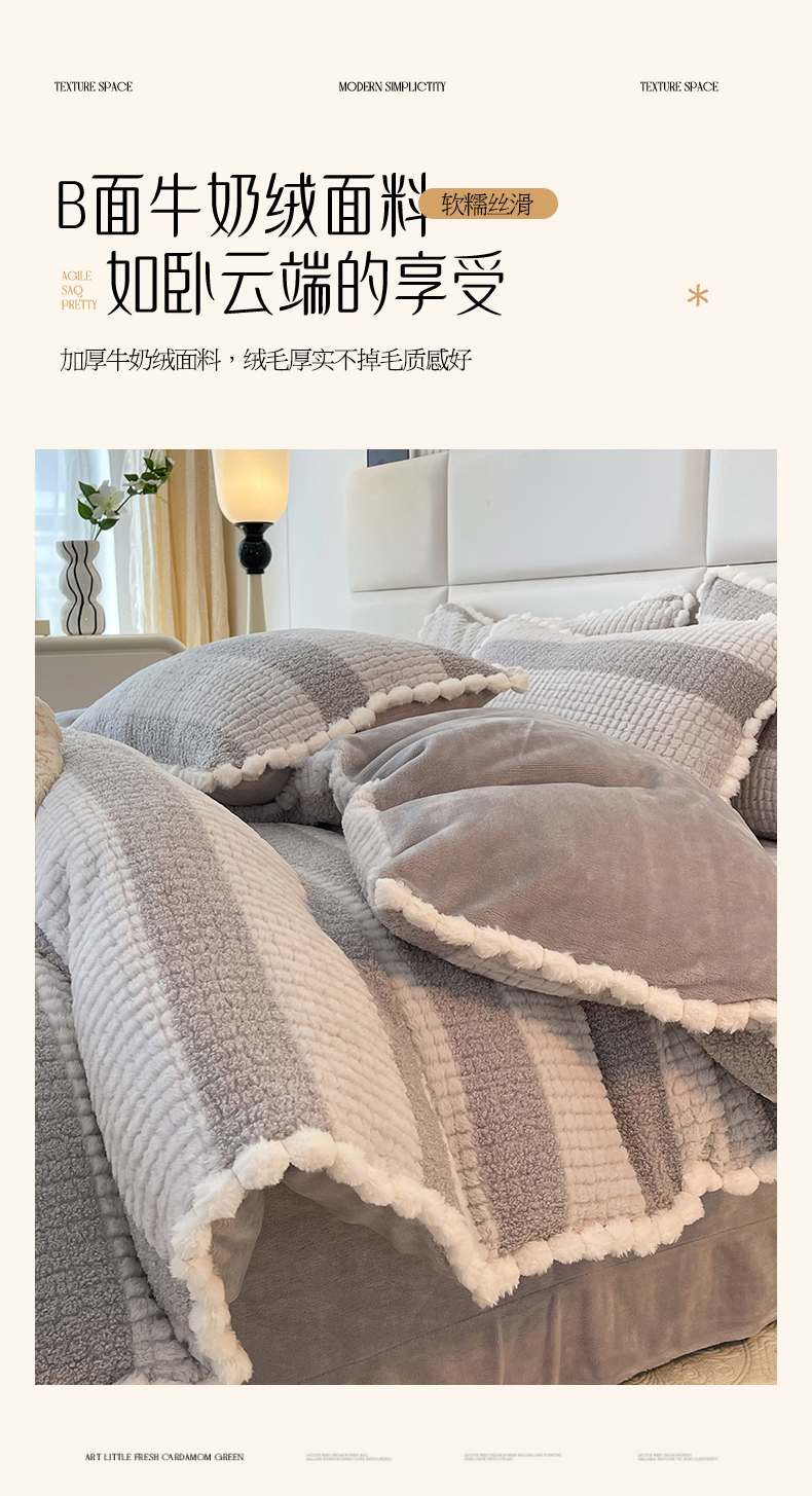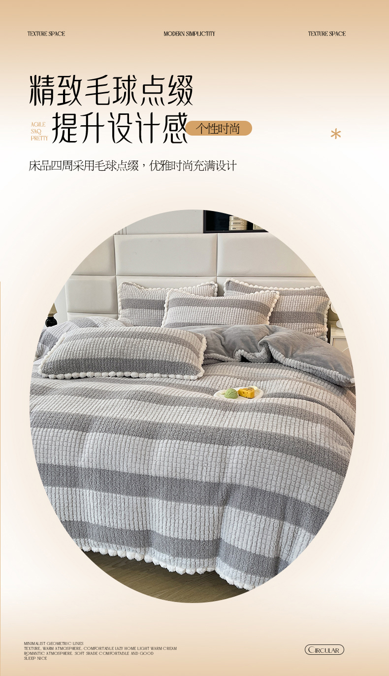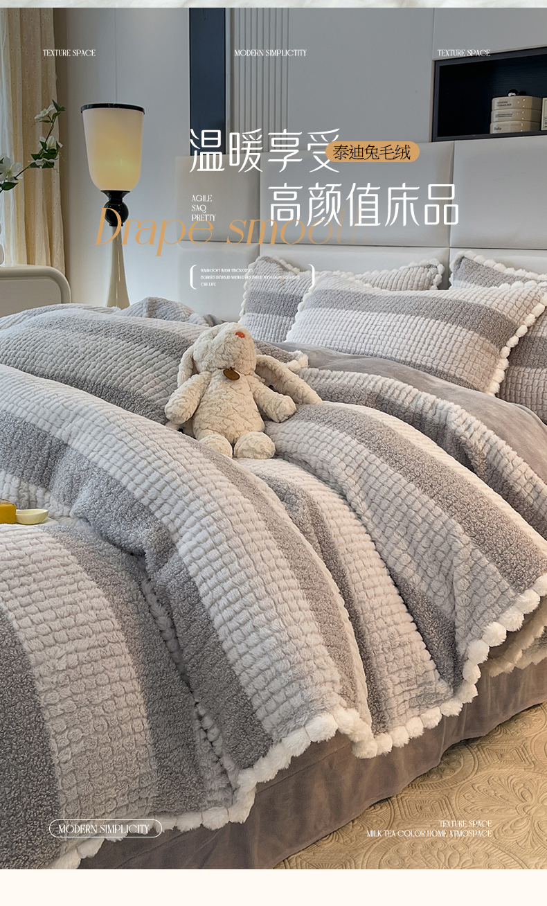 商品名称:暖洋 2024新款A类加厚泰迪绒兔毛绒纯色牛奶绒球球系列保暖四件套 高级灰