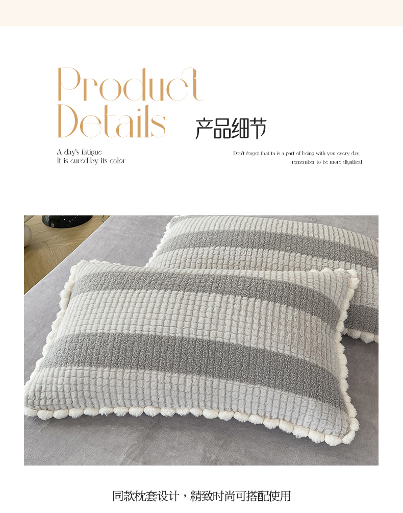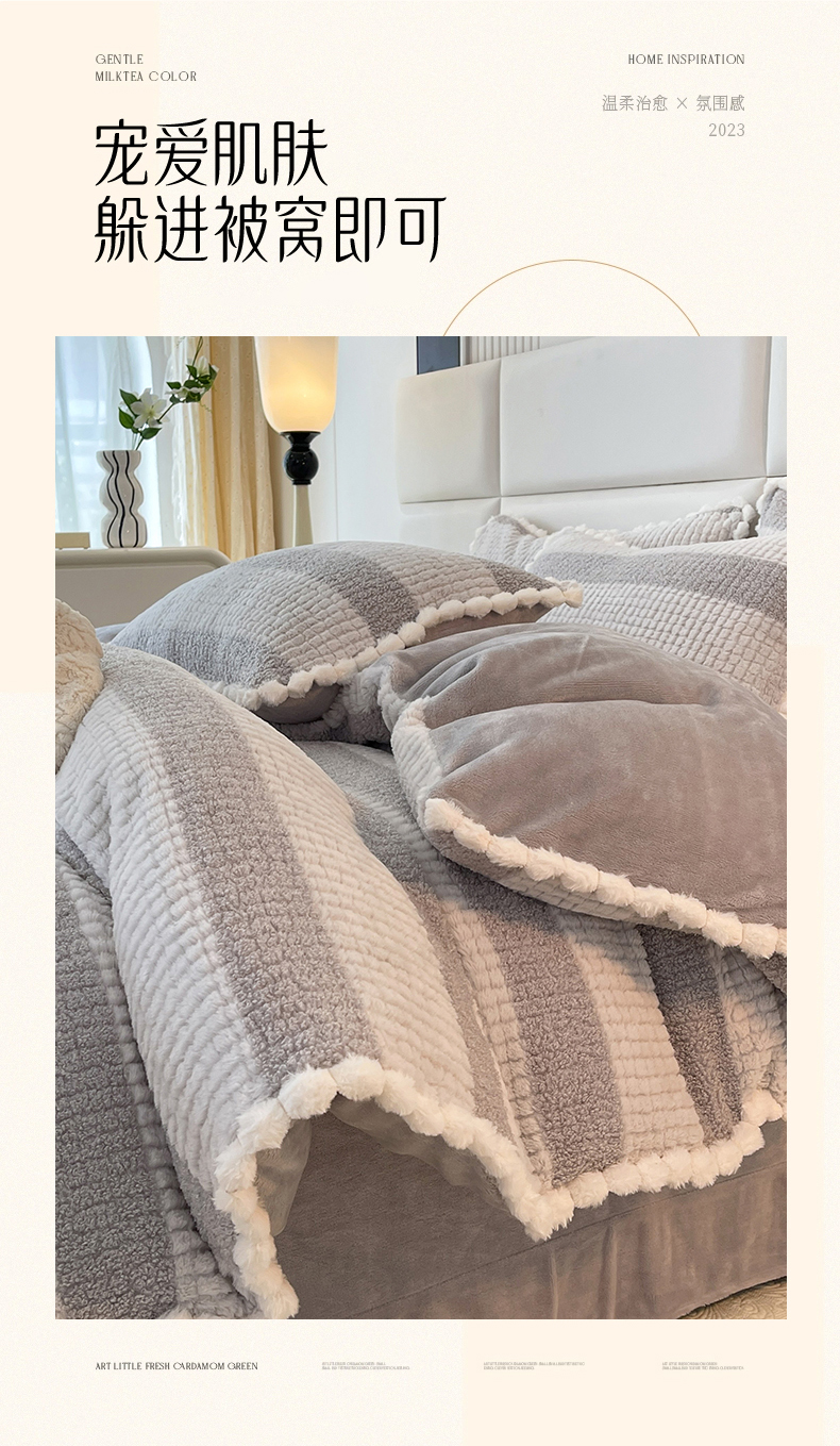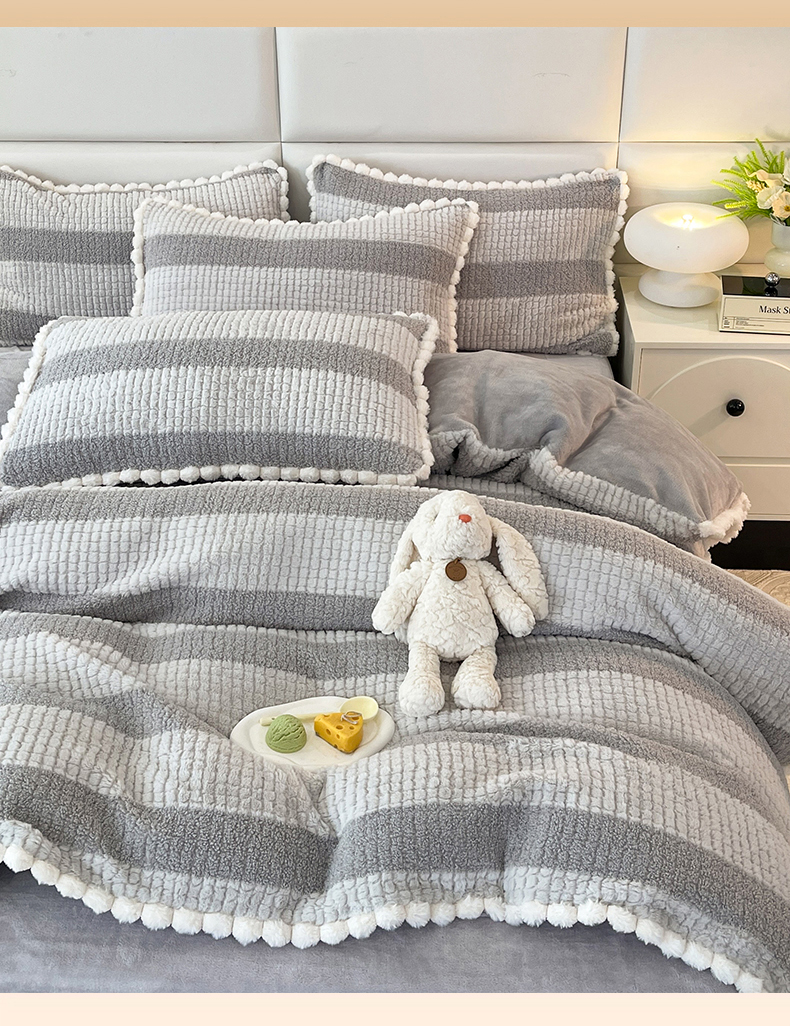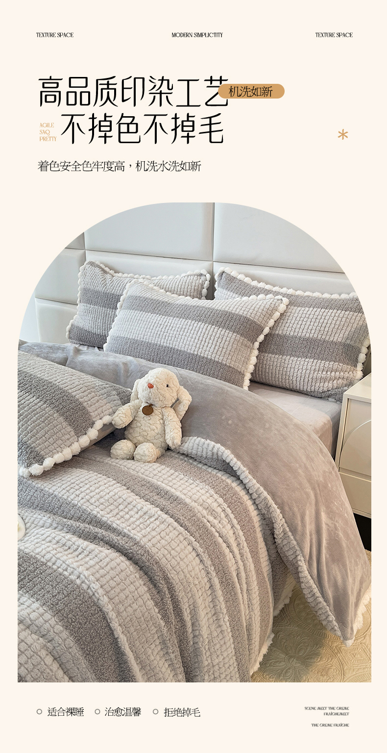 商品名称:暖洋 2024新款A类加厚泰迪绒兔毛绒纯色牛奶绒球球系列保暖四件套 高级灰
