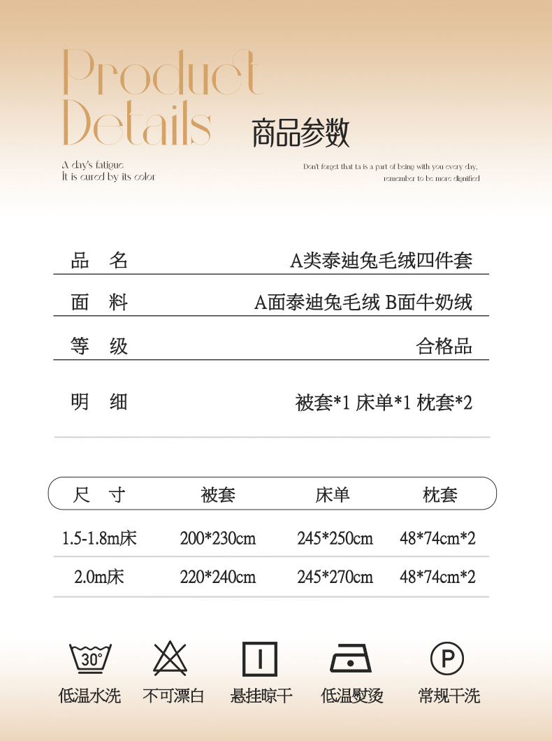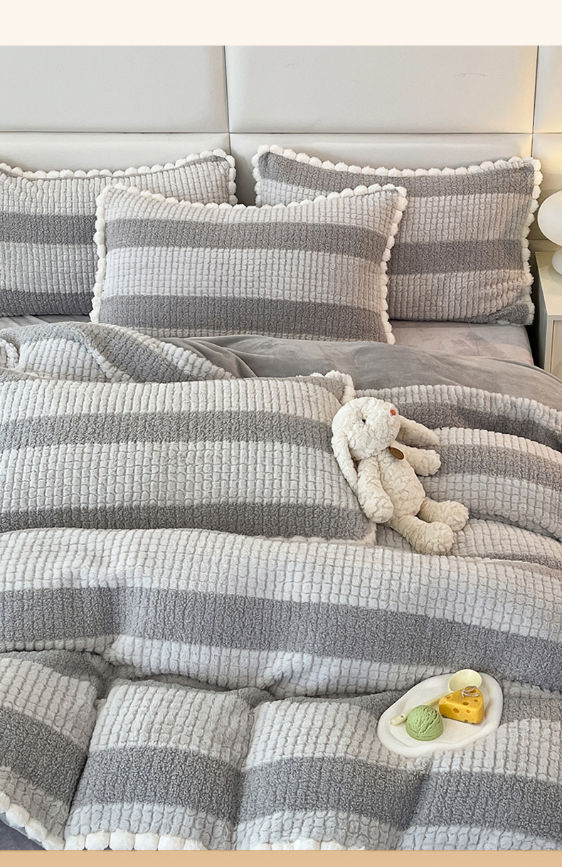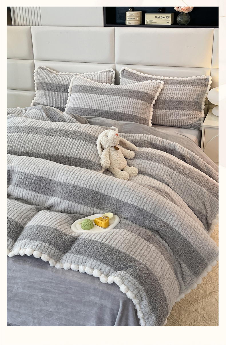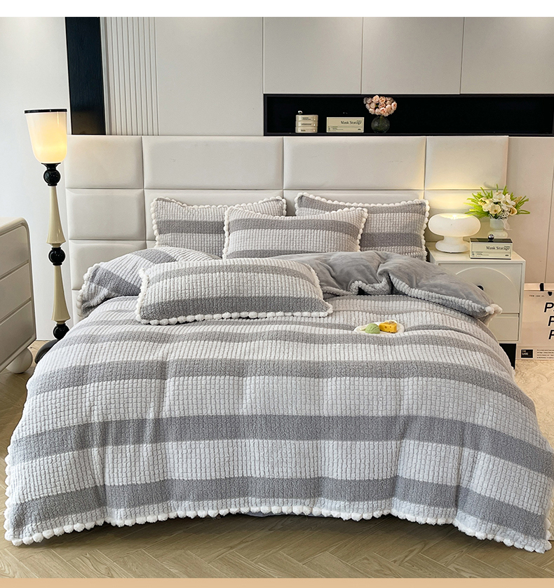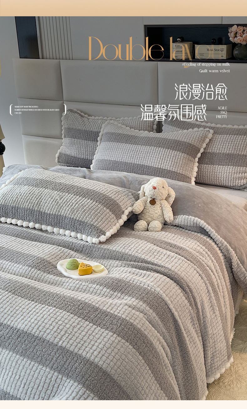 商品名称:暖洋 2024新款A类加厚泰迪绒兔毛绒纯色牛奶绒球球系列保暖四件套 高级灰