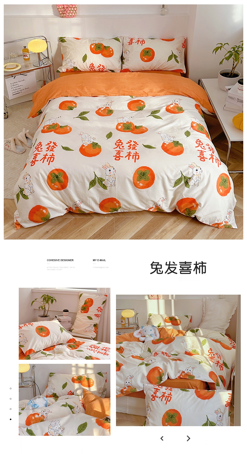 宜家坊 2024新款12868全棉小清新四件套 兔发喜柿