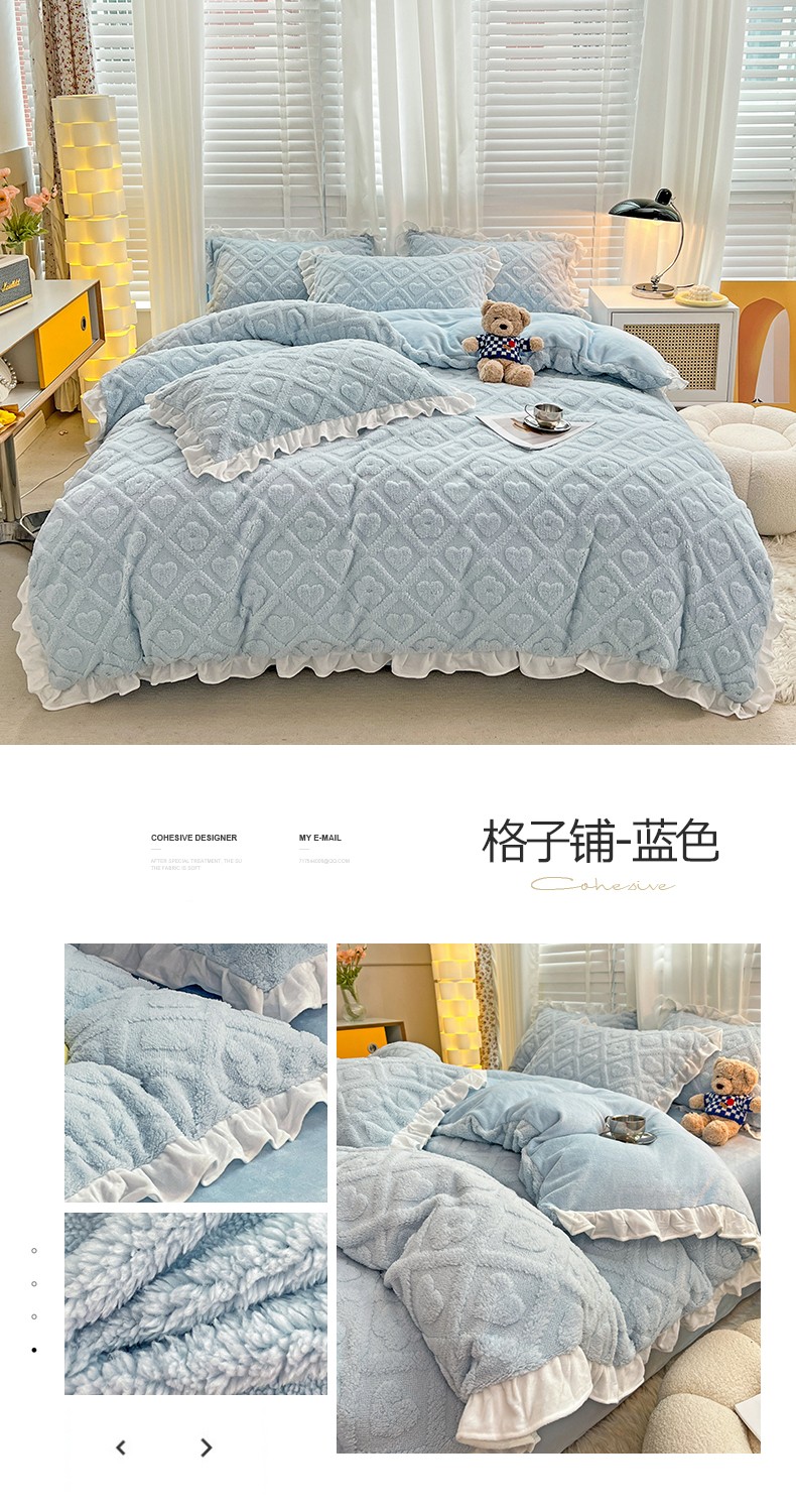 商品名称:澳梵 2023新款温柔梦境花梦塔芙绒韩版四件套 格子铺-蓝色