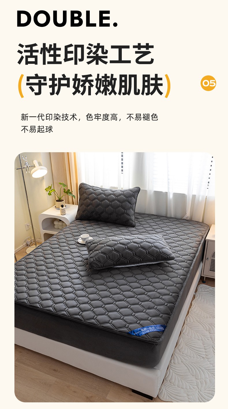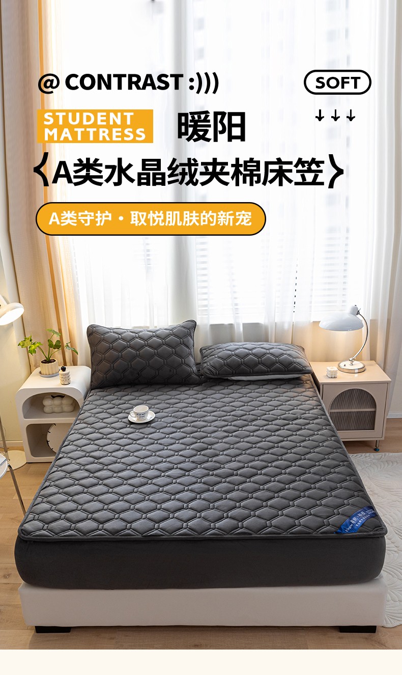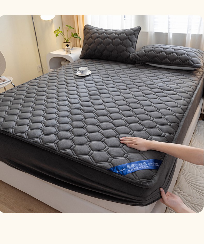 • 91家纺网 家纺一手货源 找家纺 福来临 2025新款水晶绒夹棉床笠三件套 水晶绒夹棉床笠-深灰
