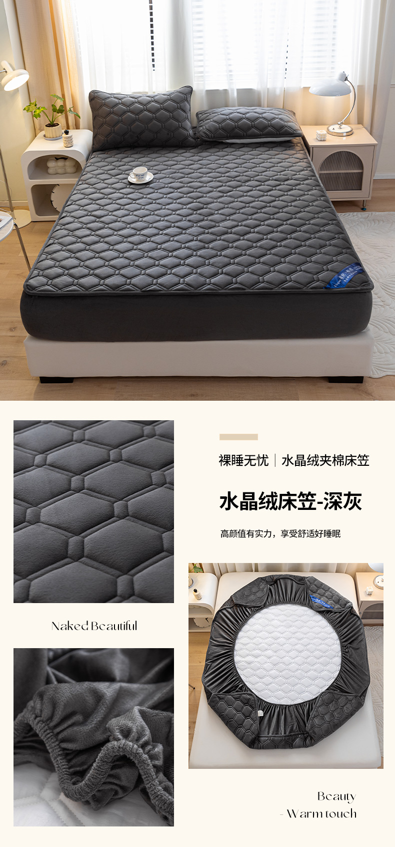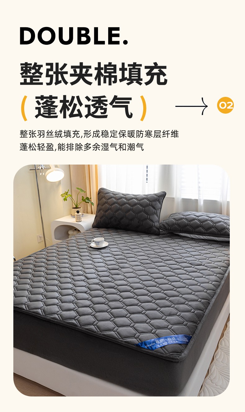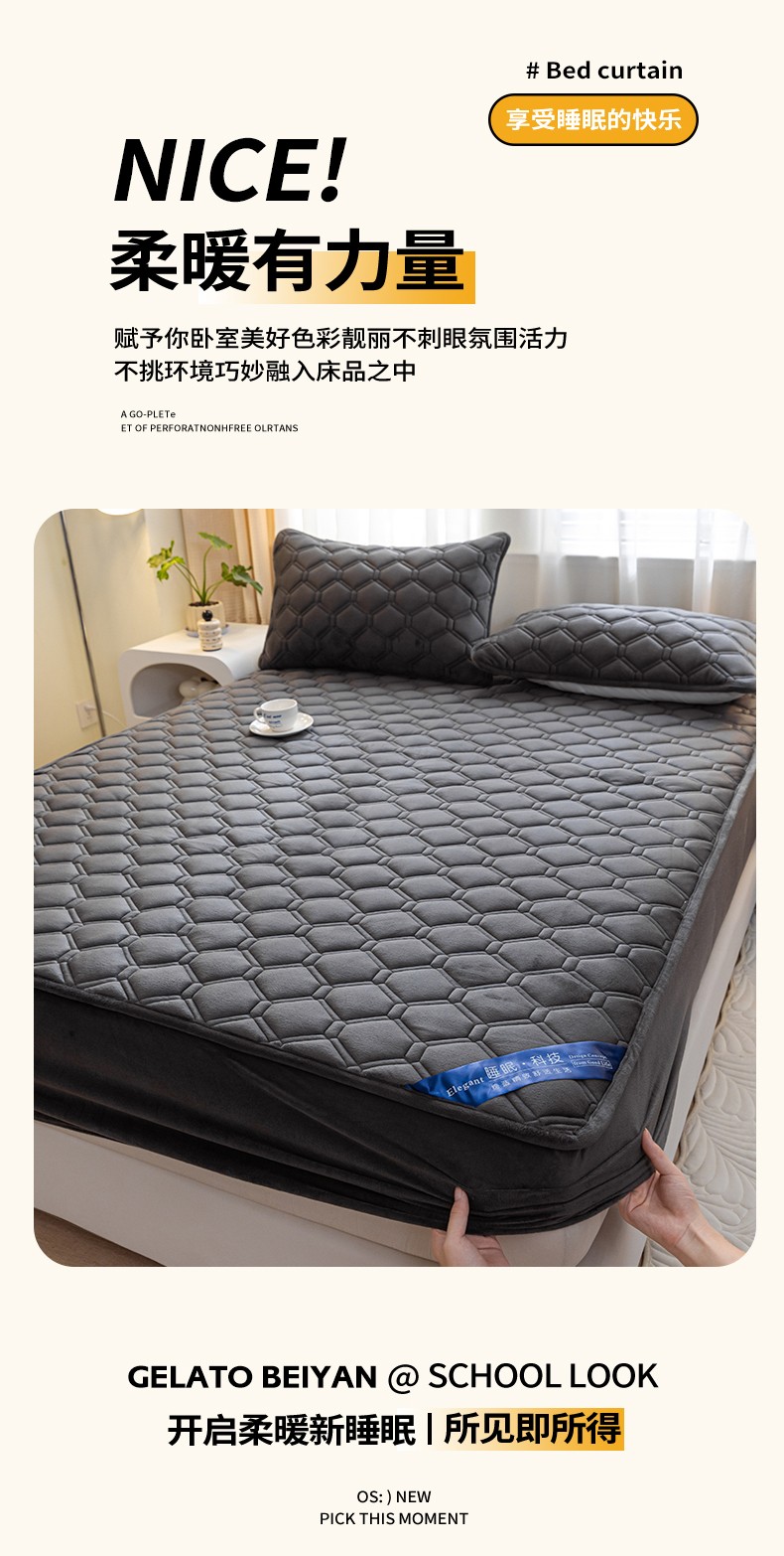 • 91家纺网 家纺一手货源 找家纺 福来临 2025新款水晶绒夹棉床笠三件套 水晶绒夹棉床笠-深灰