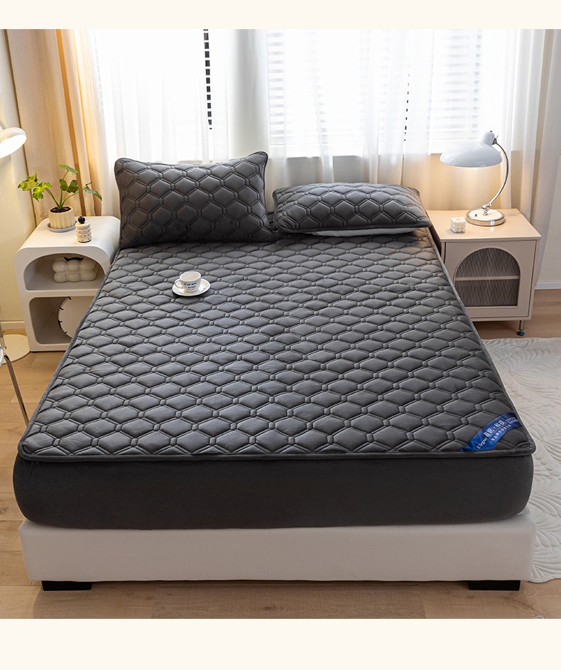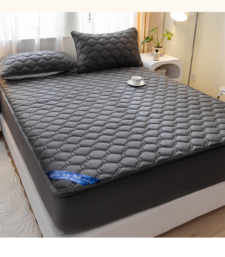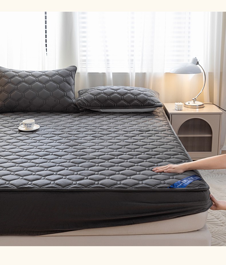 福来临 2025新款水晶绒夹棉床笠三件套 水晶绒夹棉床笠-深灰