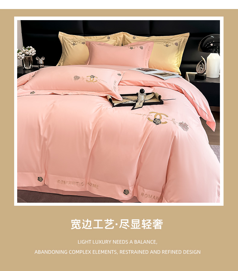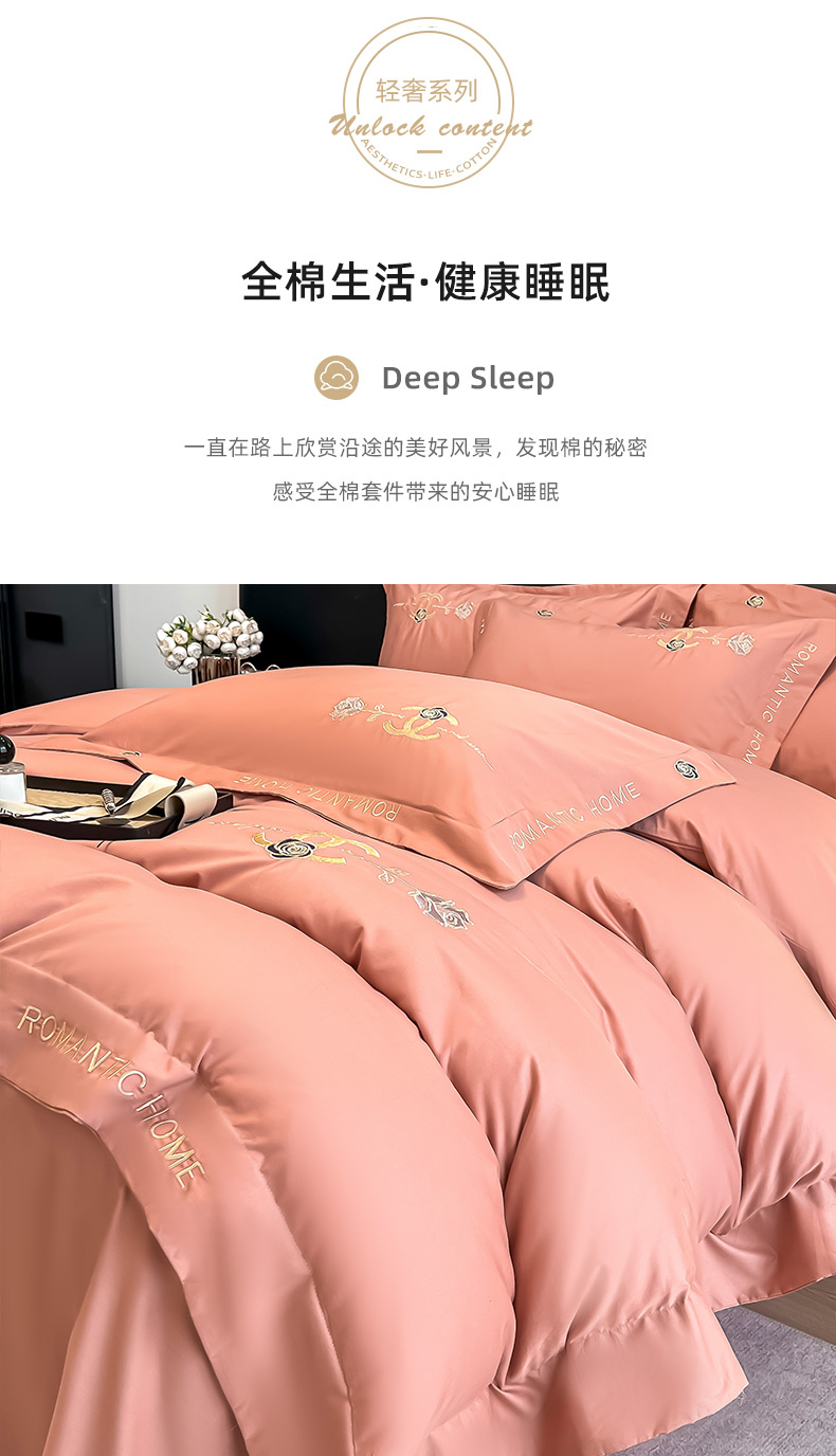 梧桐家居 2023新款13376全棉轻奢刺绣四件套-罗薇系列 罗薇-豆沙
