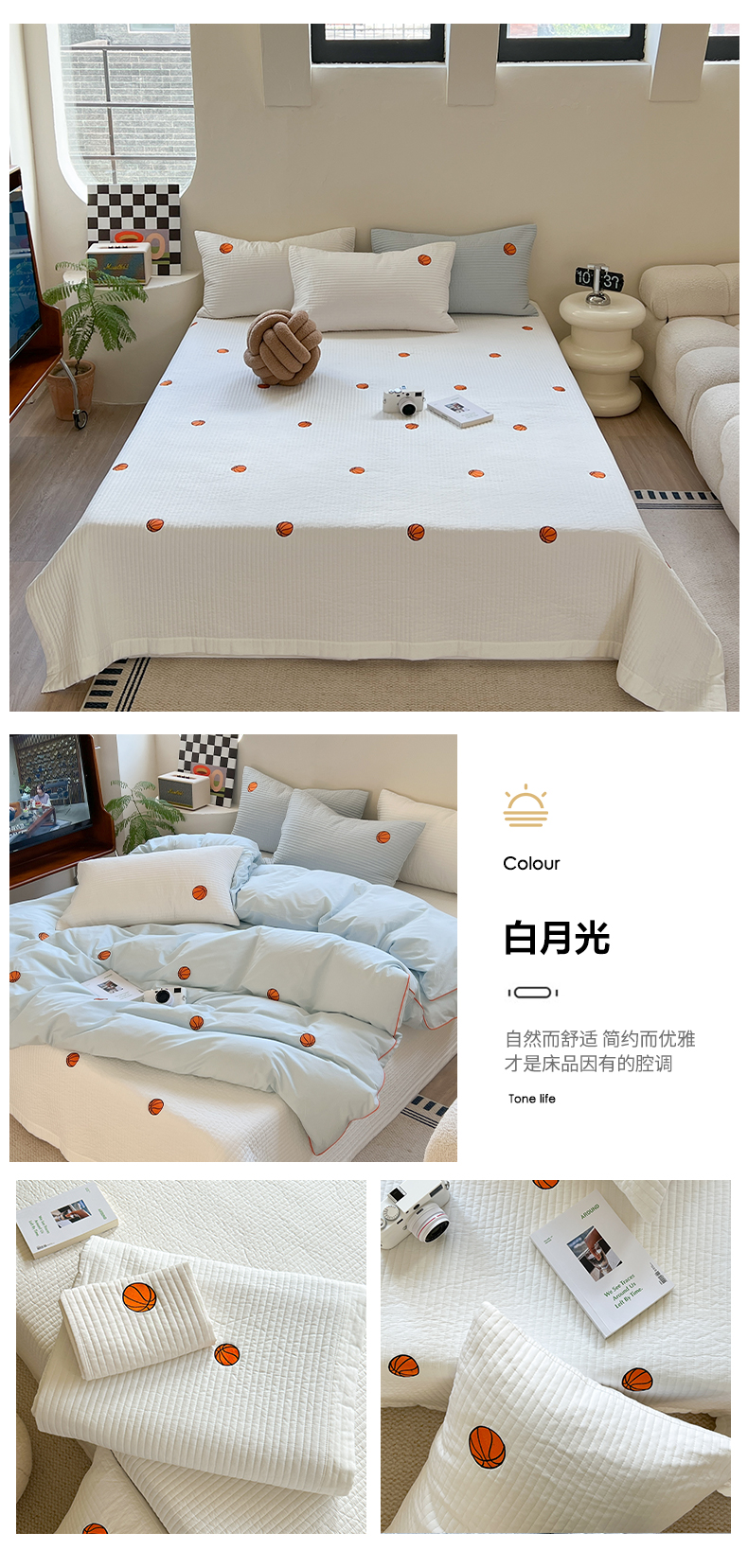 商品名称:诗黛尔 2023秋冬新款全棉刺绣床单三件套可搭配被套 白月光