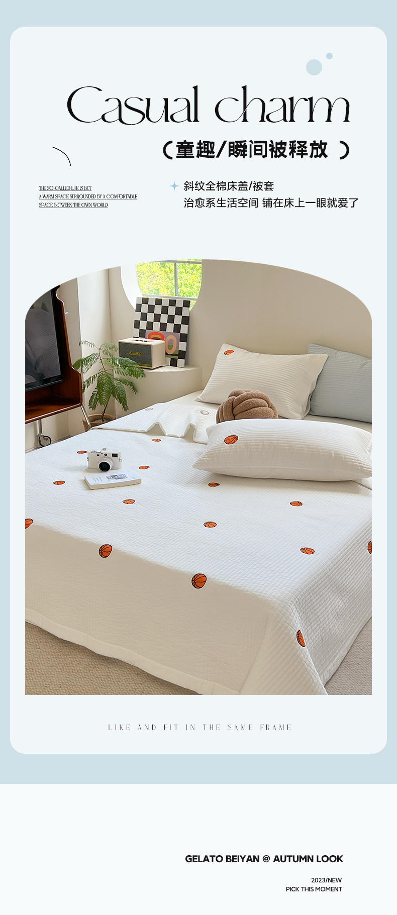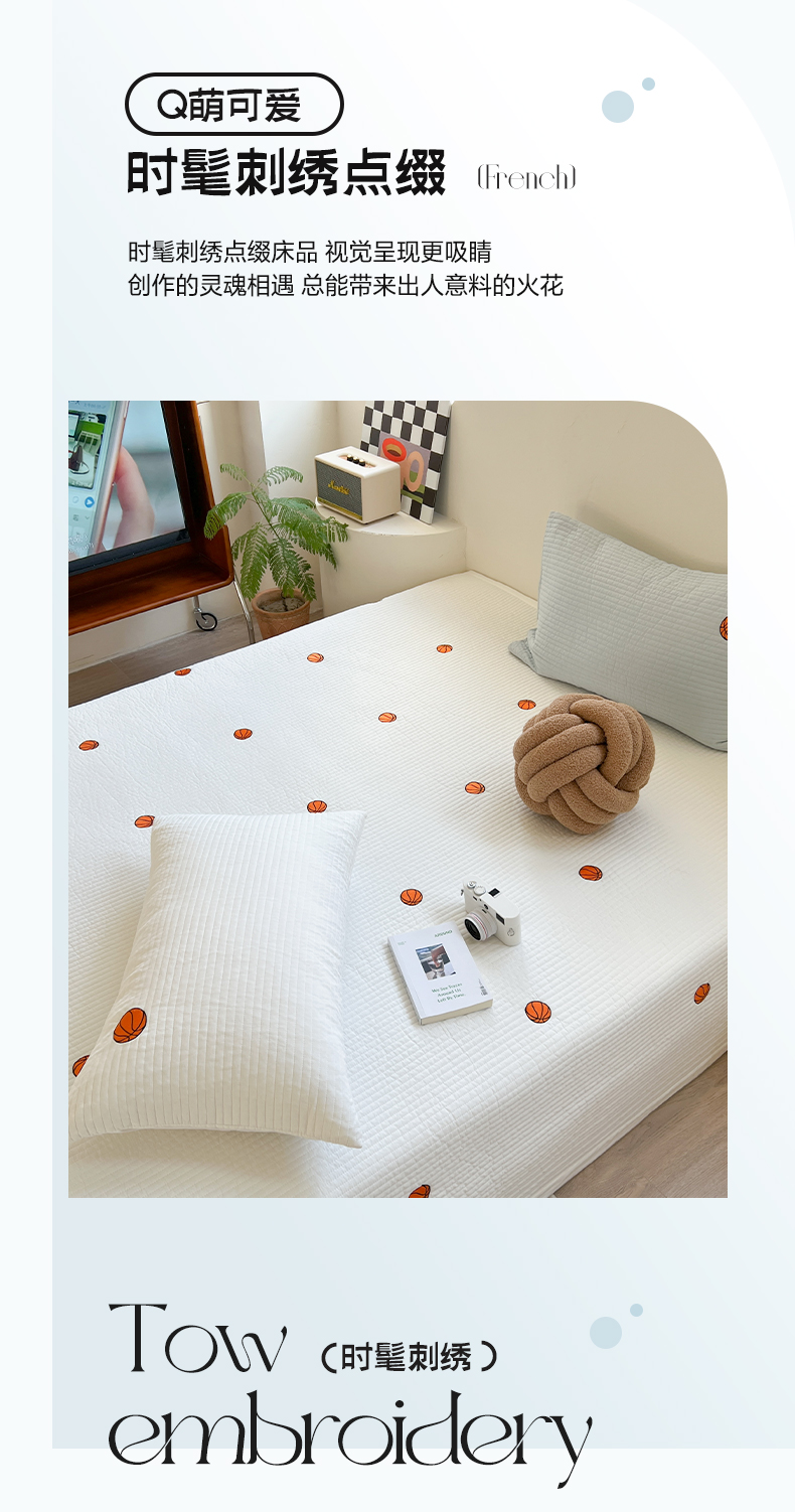 诗黛尔 2023秋冬新款全棉刺绣床单三件套可搭配被套 白月光