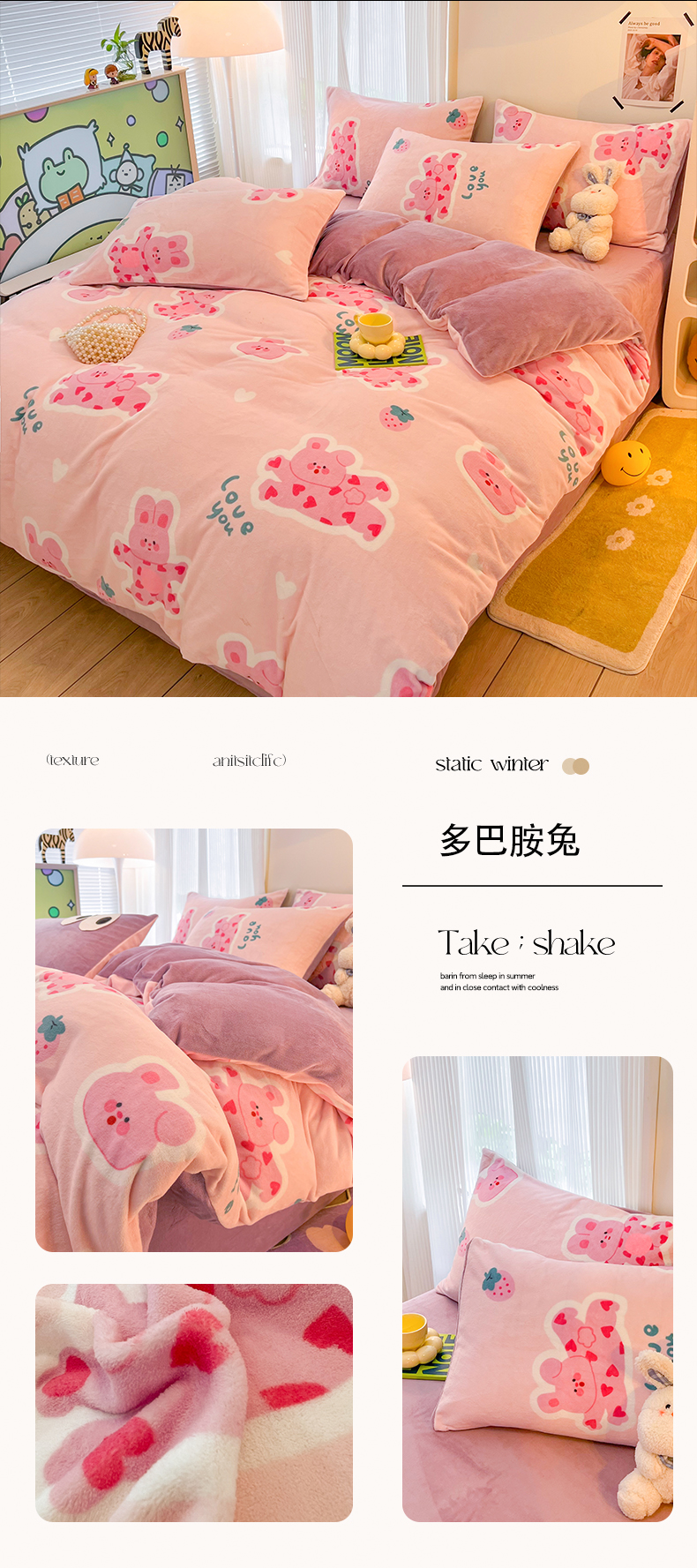 商品名称:HL原创 2023新款牛奶绒单被套 多巴胺兔