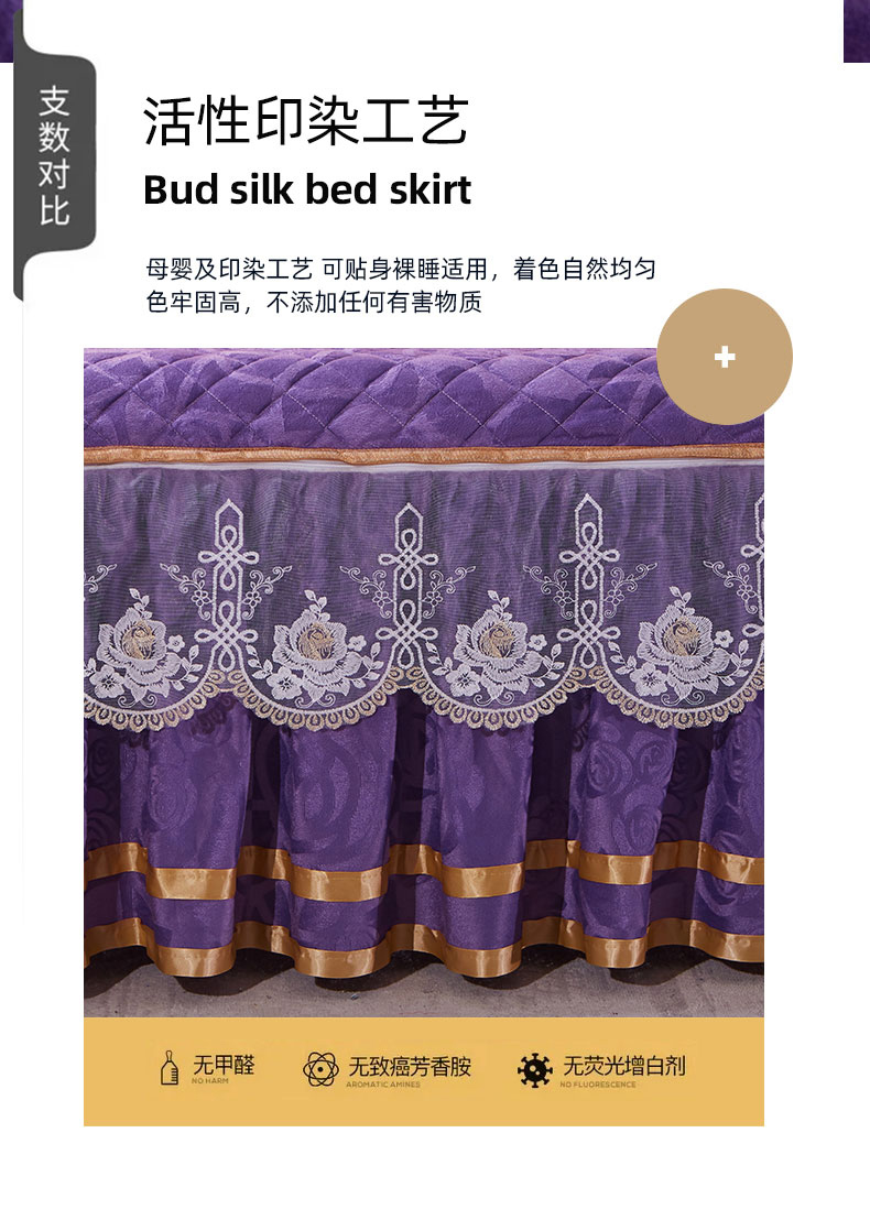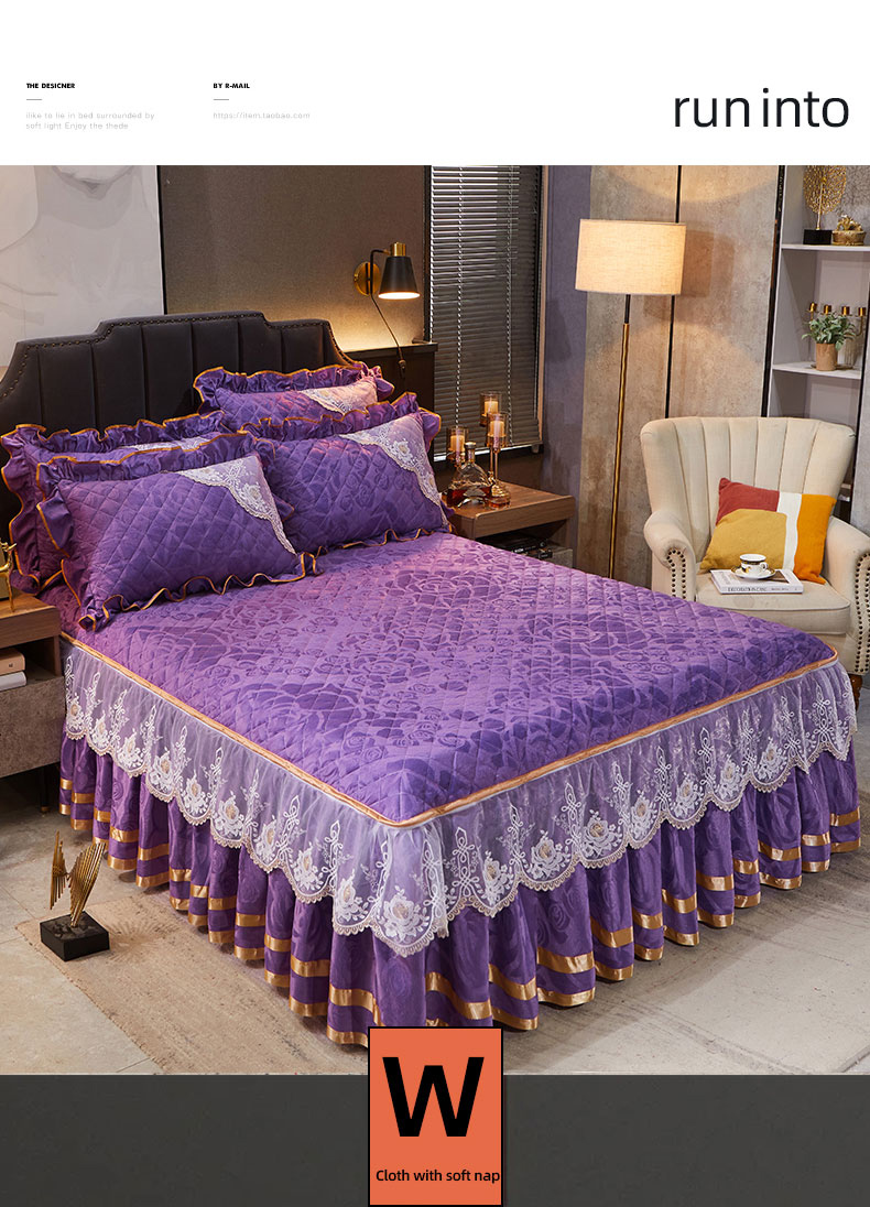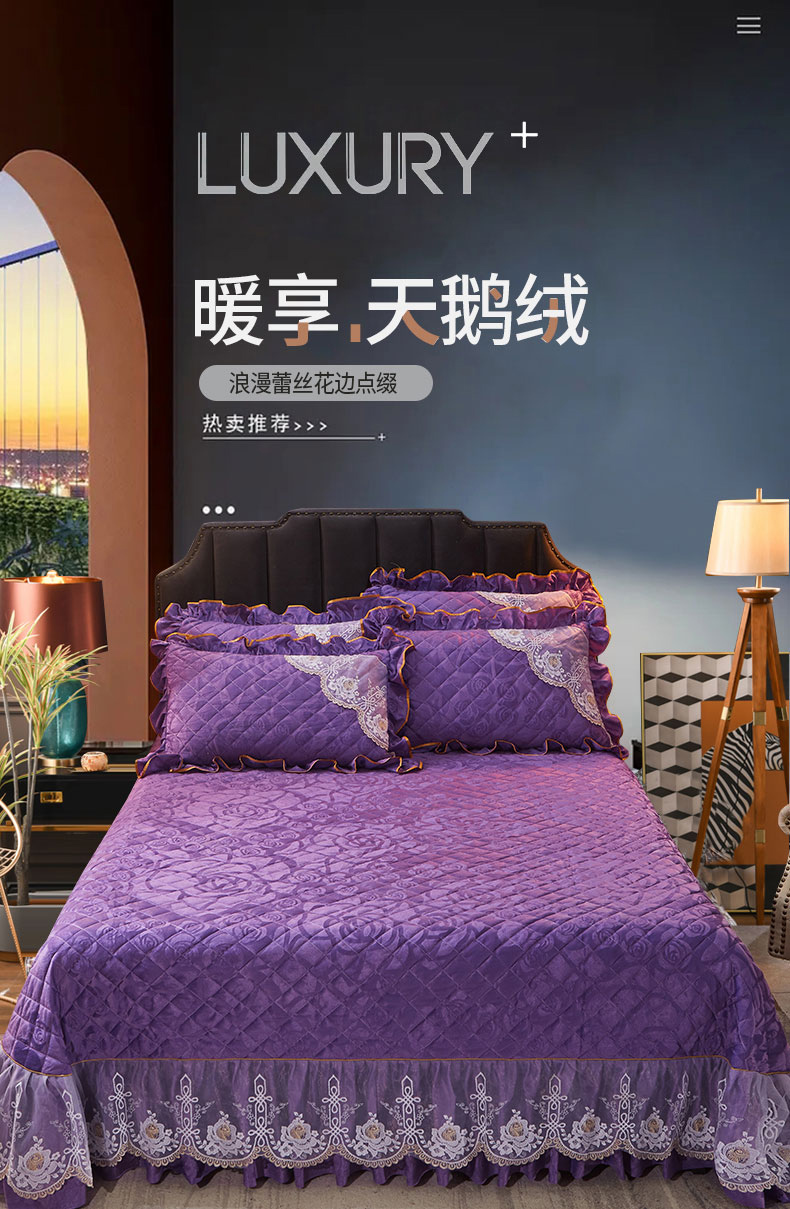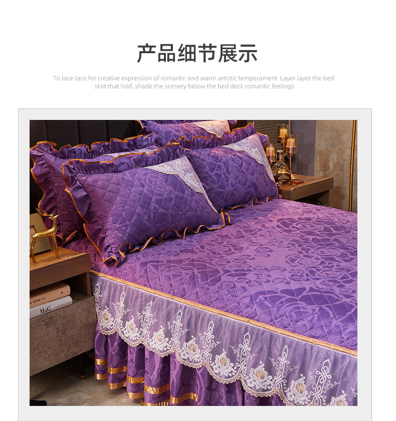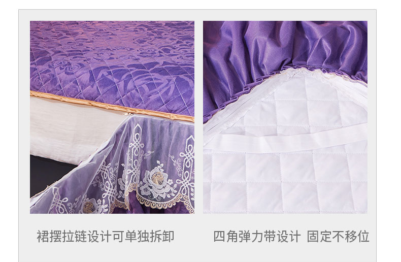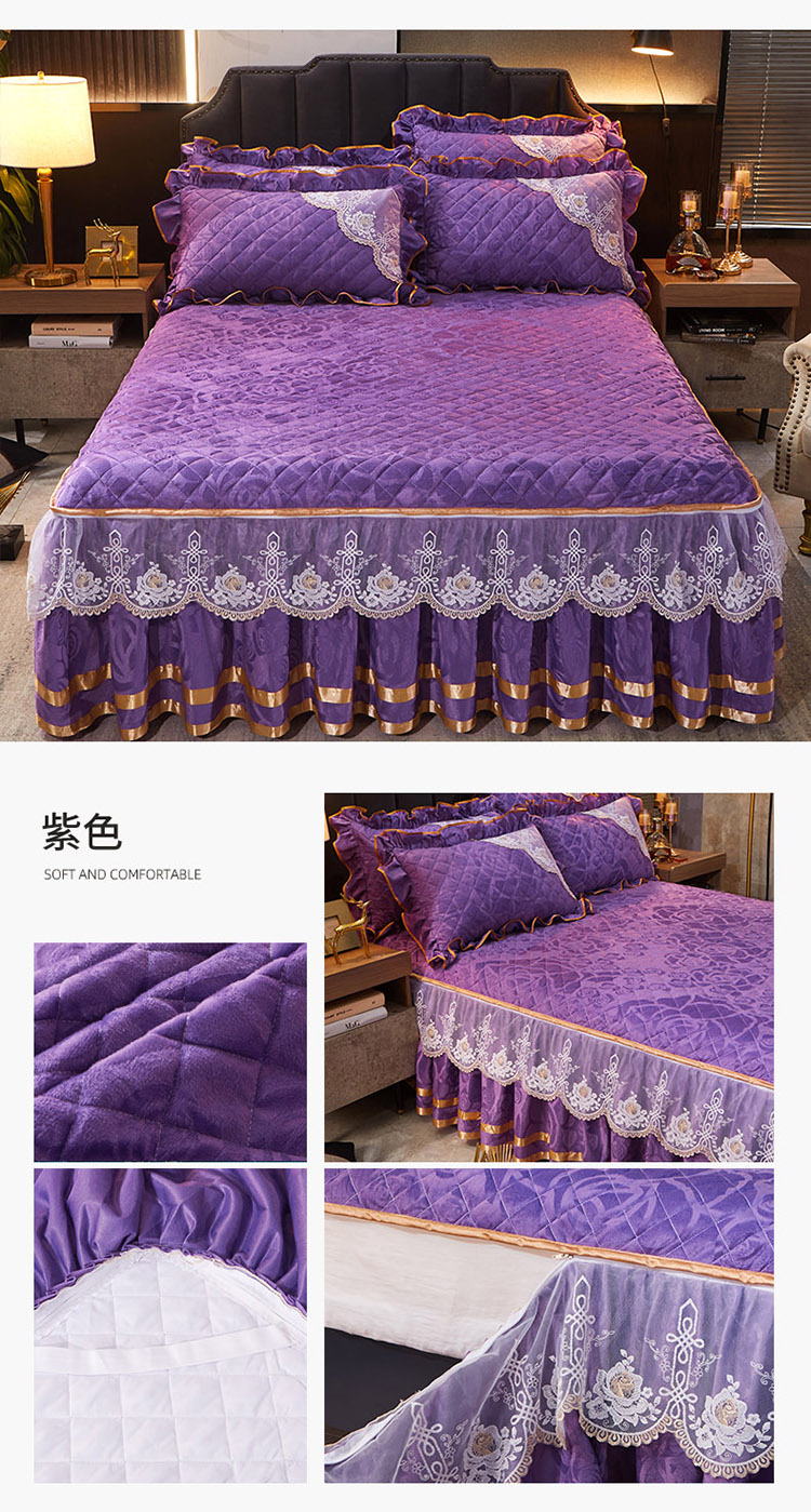 商品名称:恋尚 2023新款天鹅绒可脱卸夹棉床裙 床盖四件套 床裙 紫色