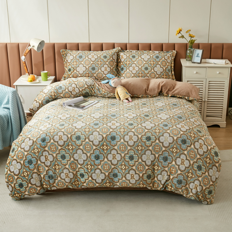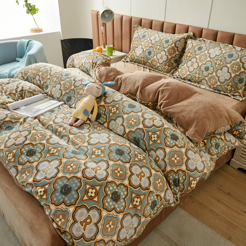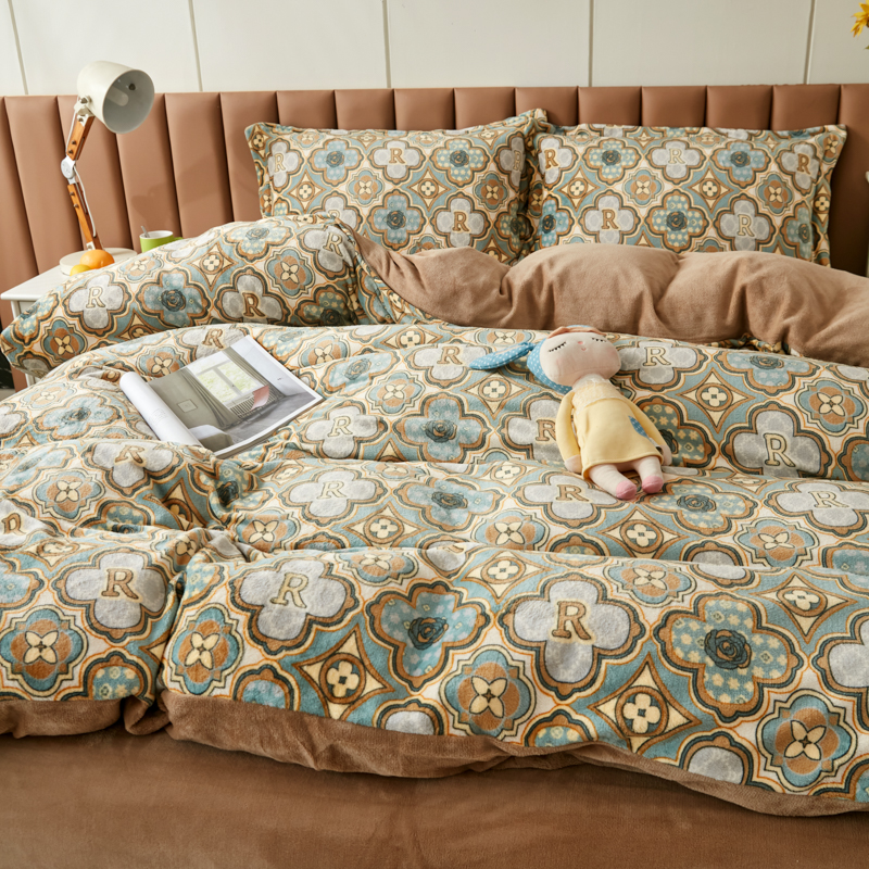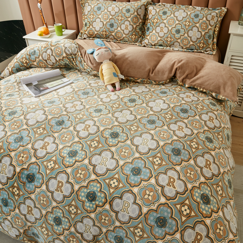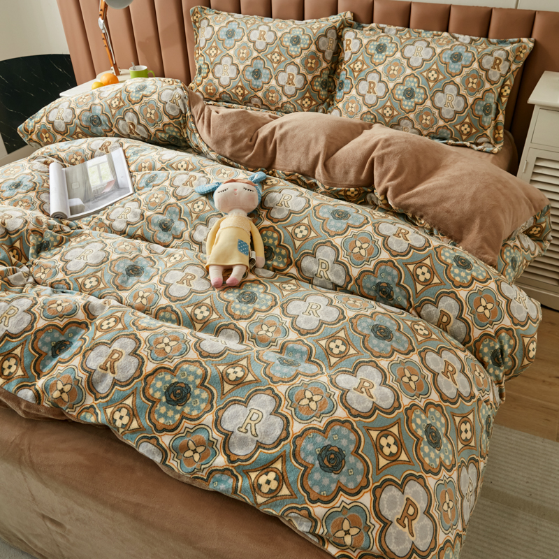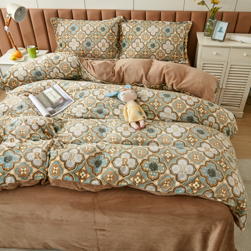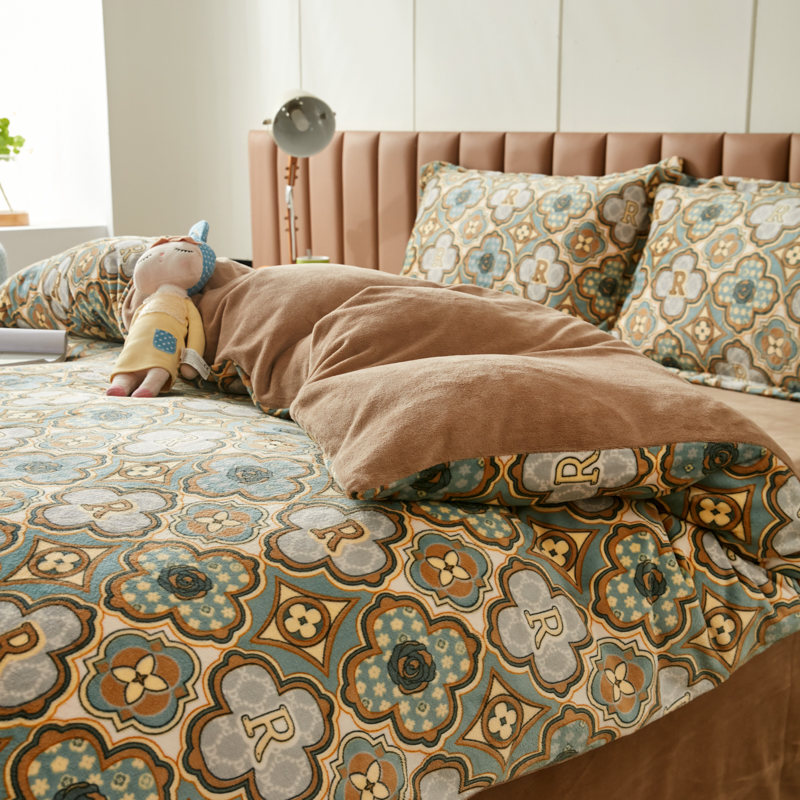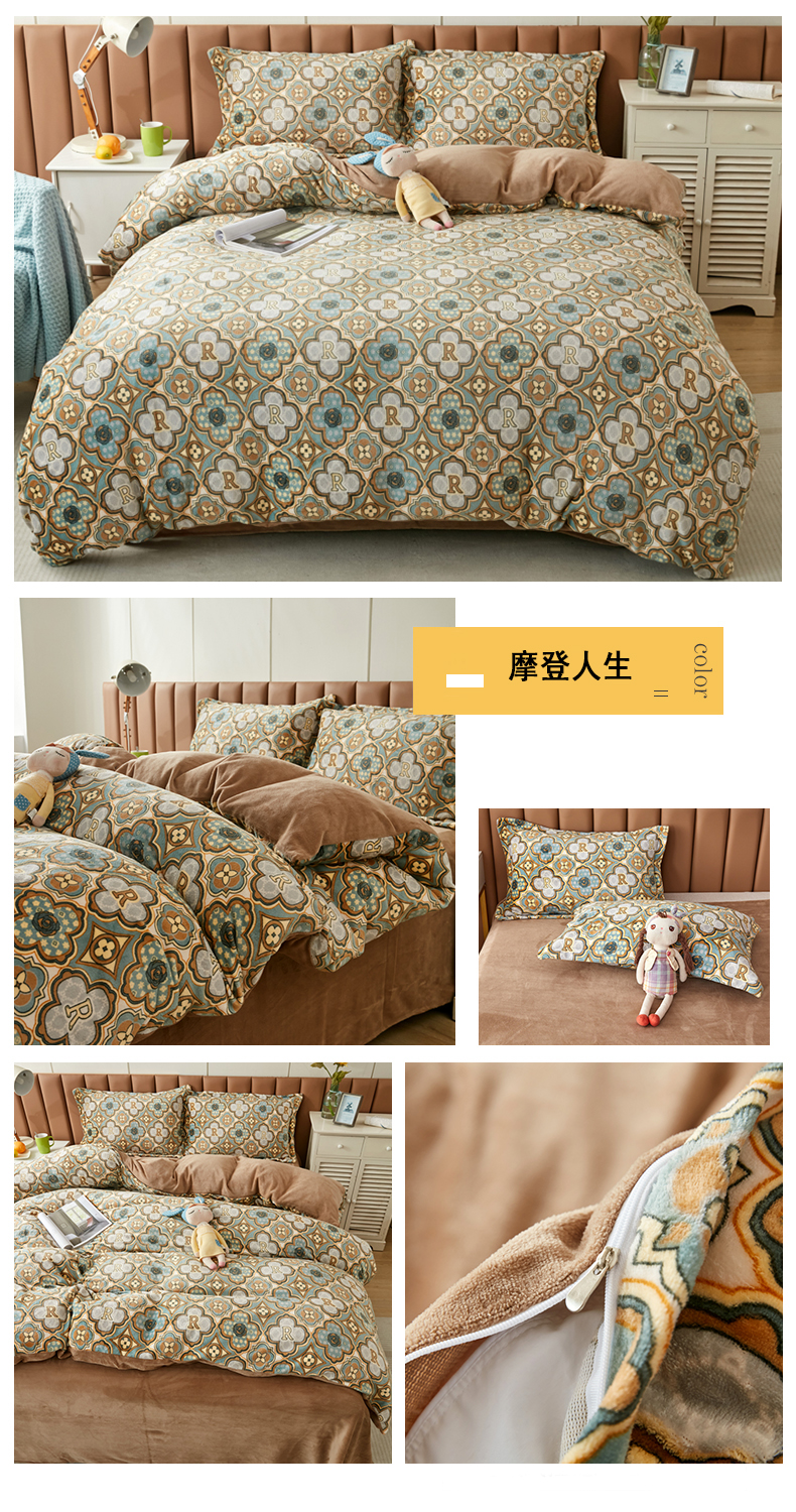 • 91家纺网 家纺一手货源 找家纺 乐居坊 2023新款高克重牛奶绒印花保暖四件套 摩登人生