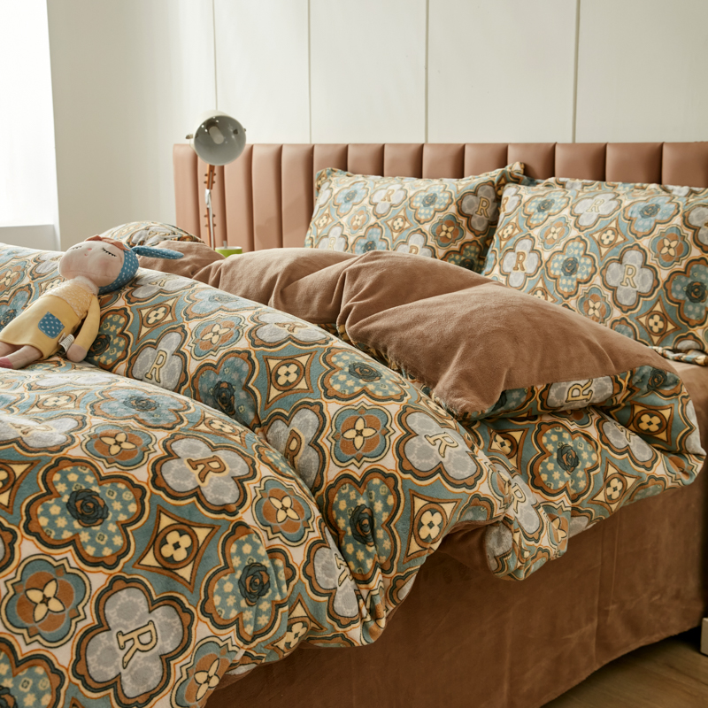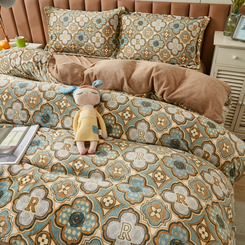 乐居坊 2023新款高克重牛奶绒印花保暖四件套 摩登人生