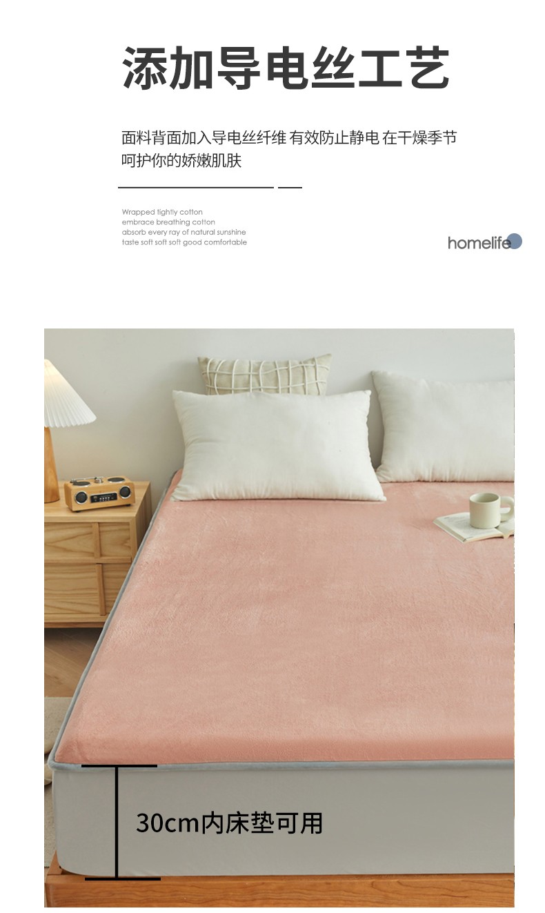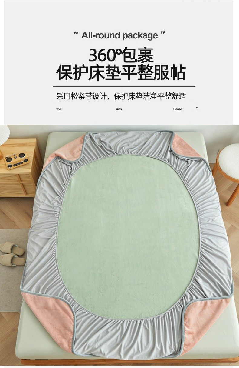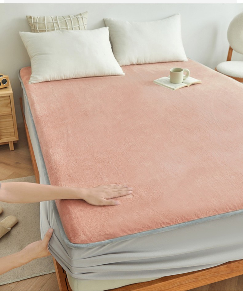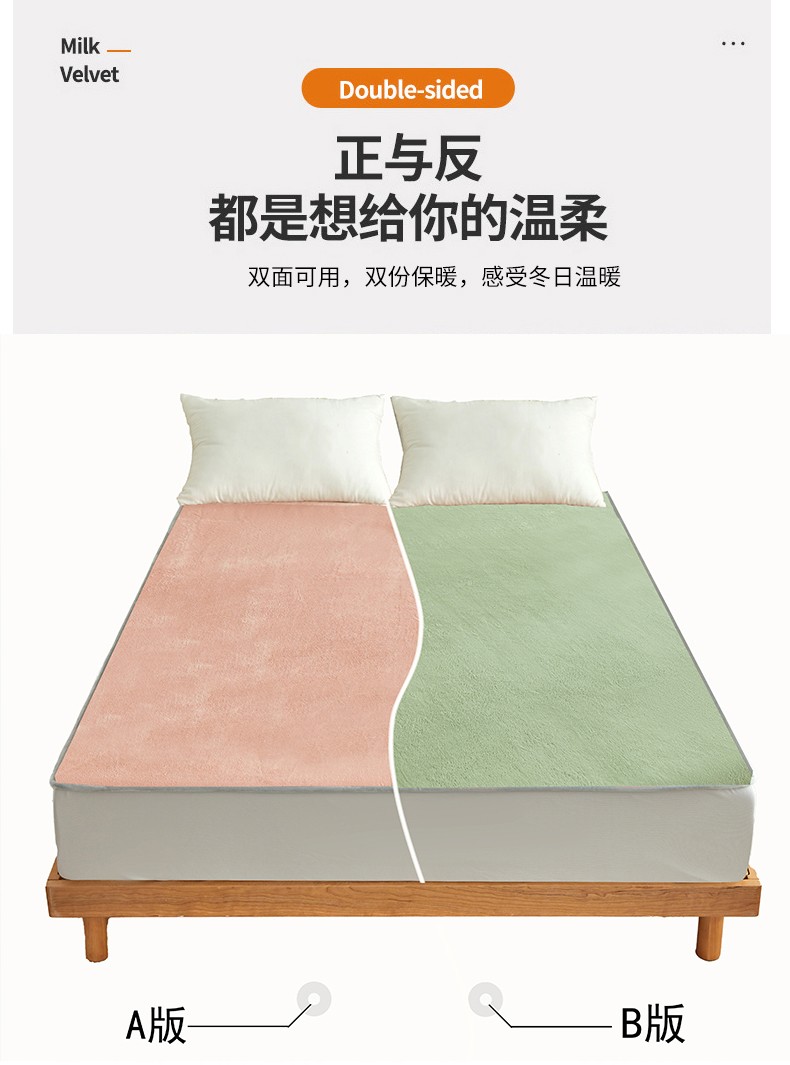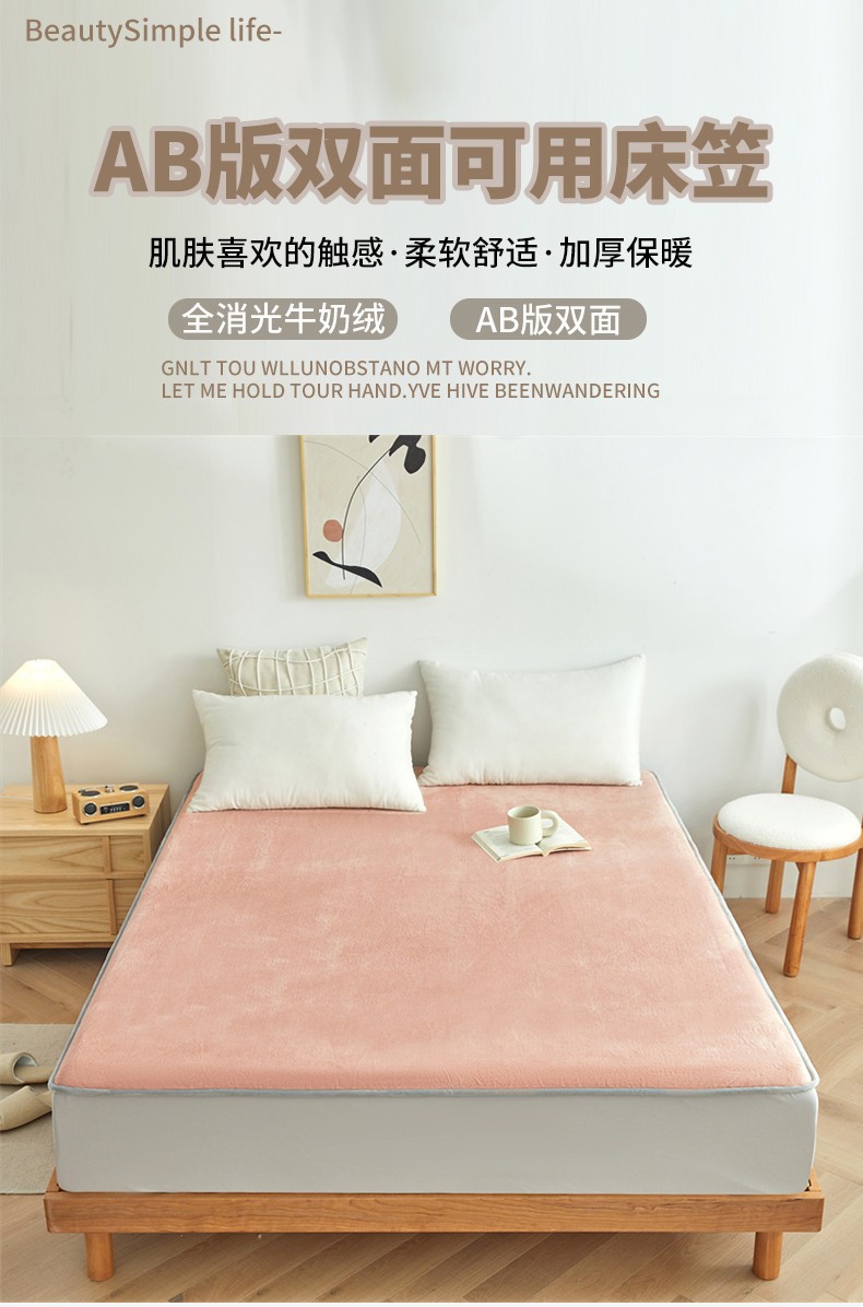 AB版双面牛奶绒床笠 复合保暖床笠 双面可用 粉绿