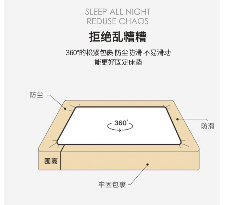 (总)安芯丝60S全棉夹棉床笠 抗菌防螨,白色,灰色