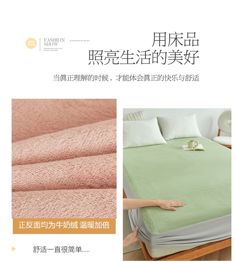 商品名称:AB版双面牛奶绒床笠 复合保暖床笠 双面可用 粉绿