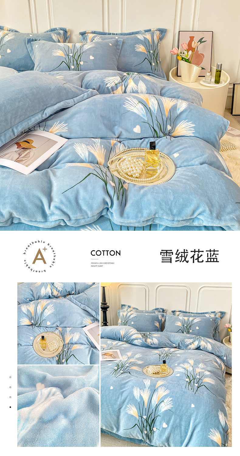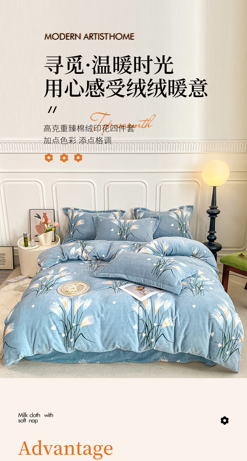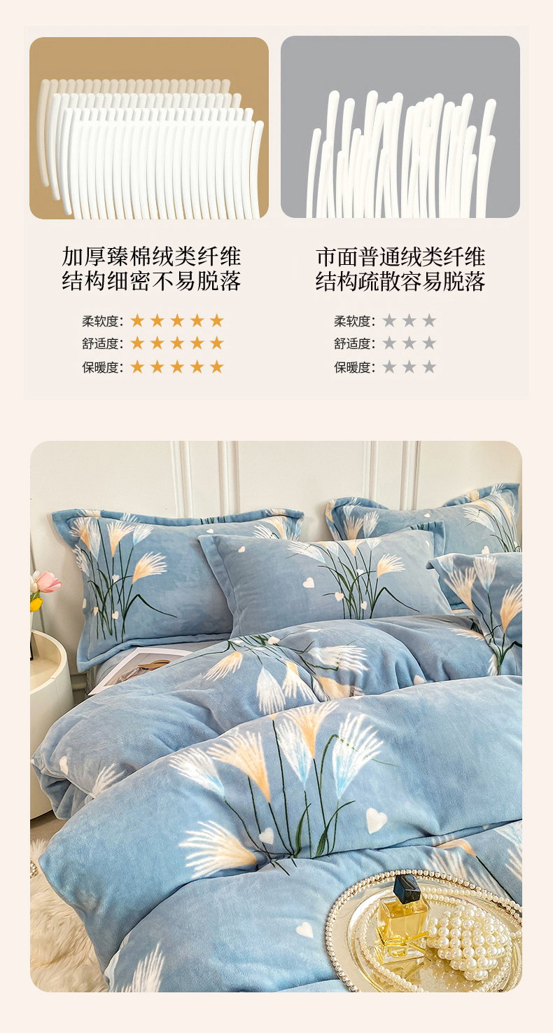 当前位置: 91家纺网 > 商品网购 > 床品套件 > 四件套 > 牛奶绒四件套 > 518家纺 2025新款A类高克重臻棉绒四件套 雪绒花蓝