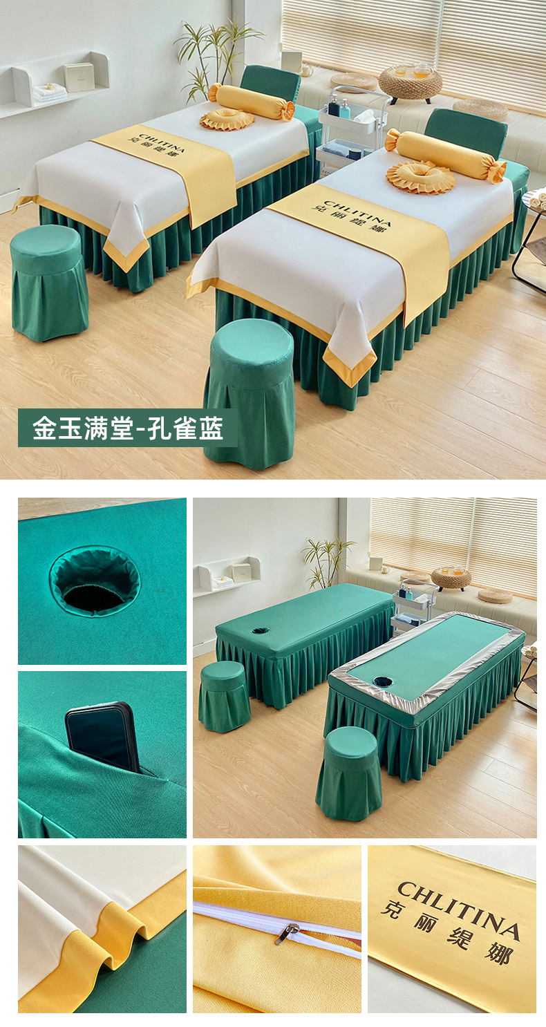不打烊家纺 2023新款欧洲尼金玉满堂床罩四件套 孔雀绿