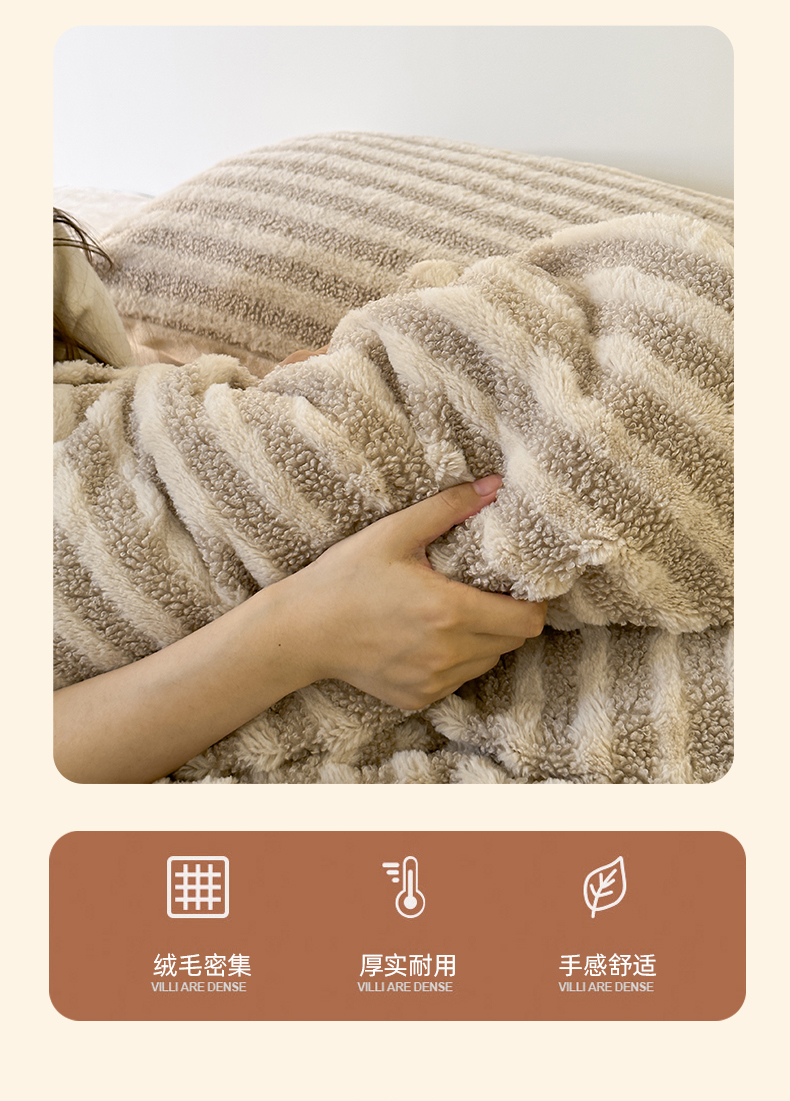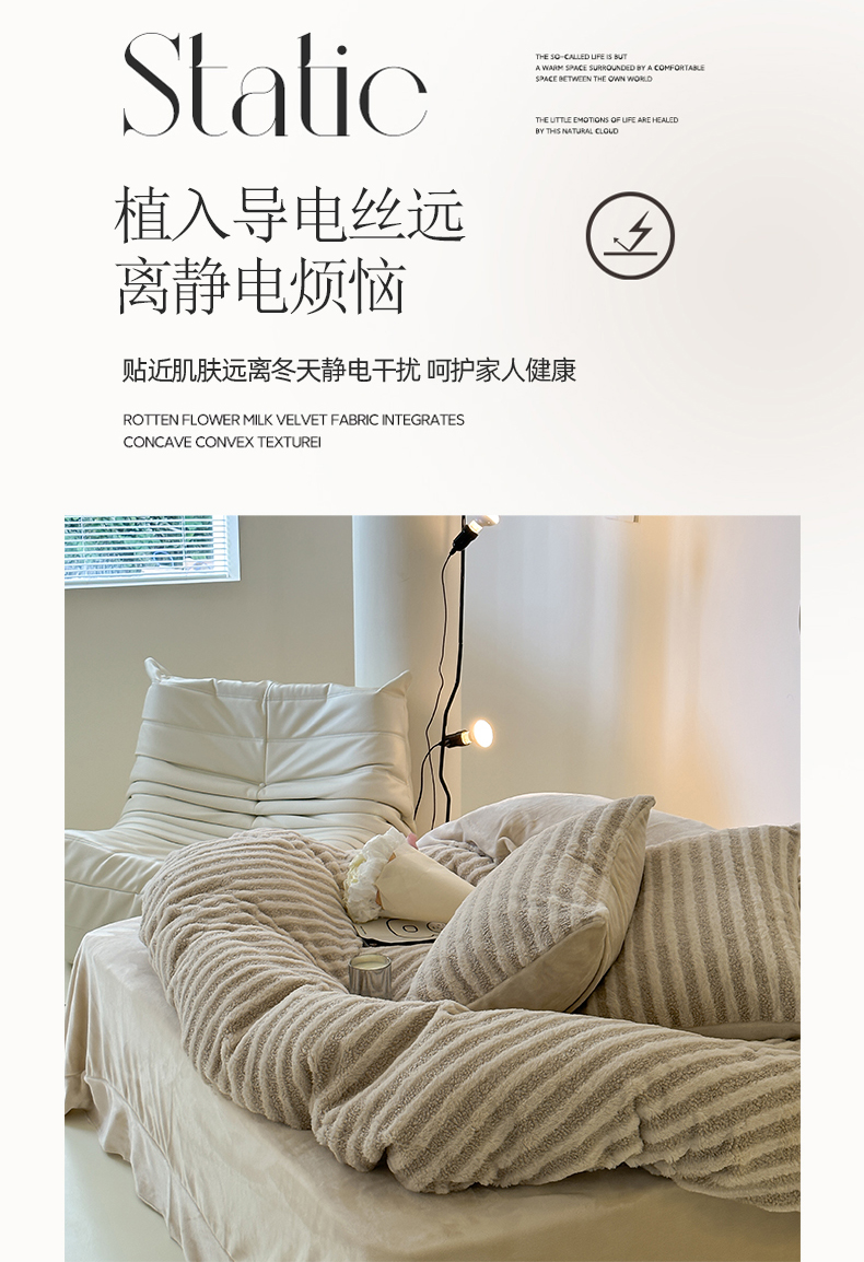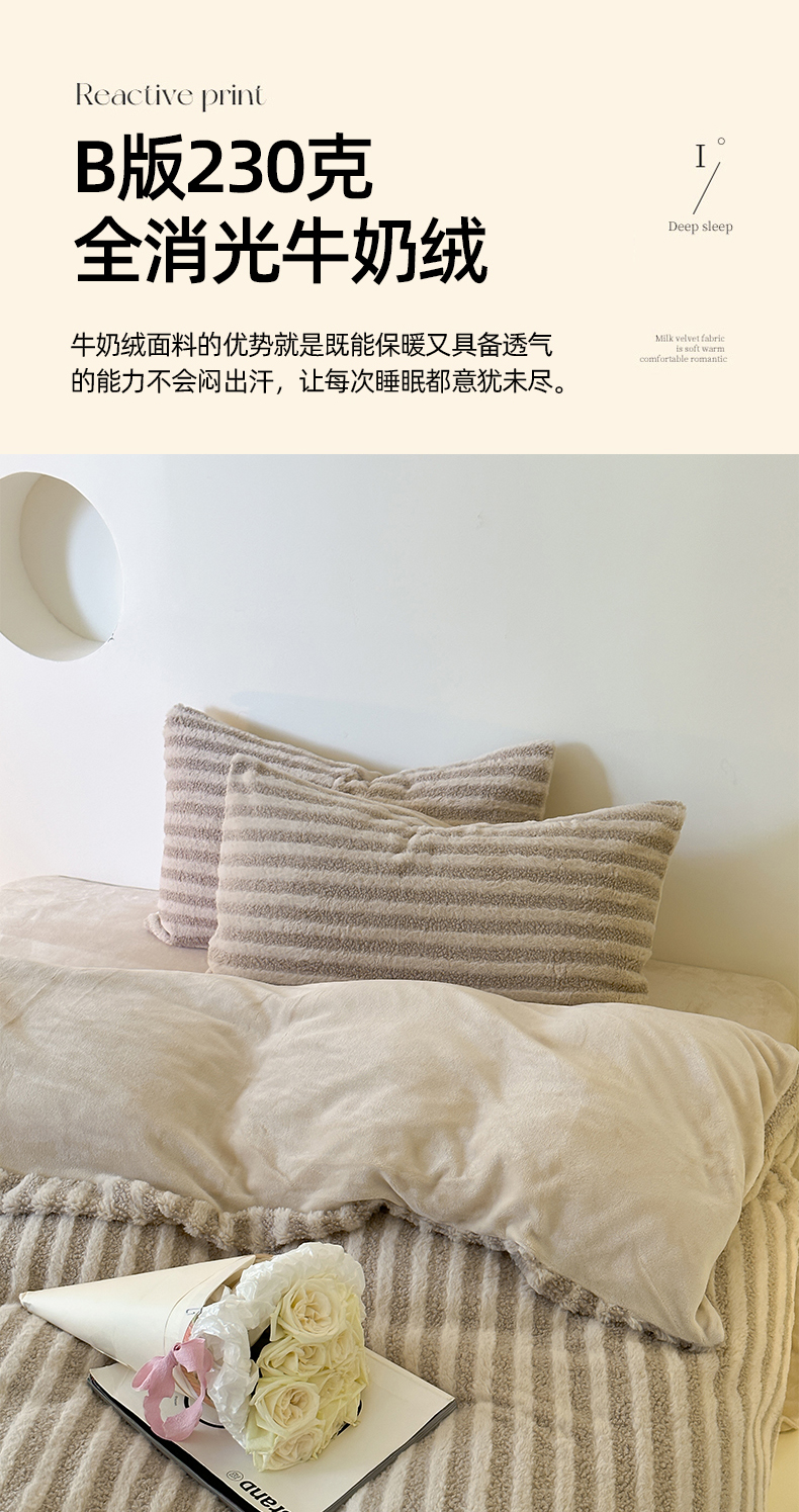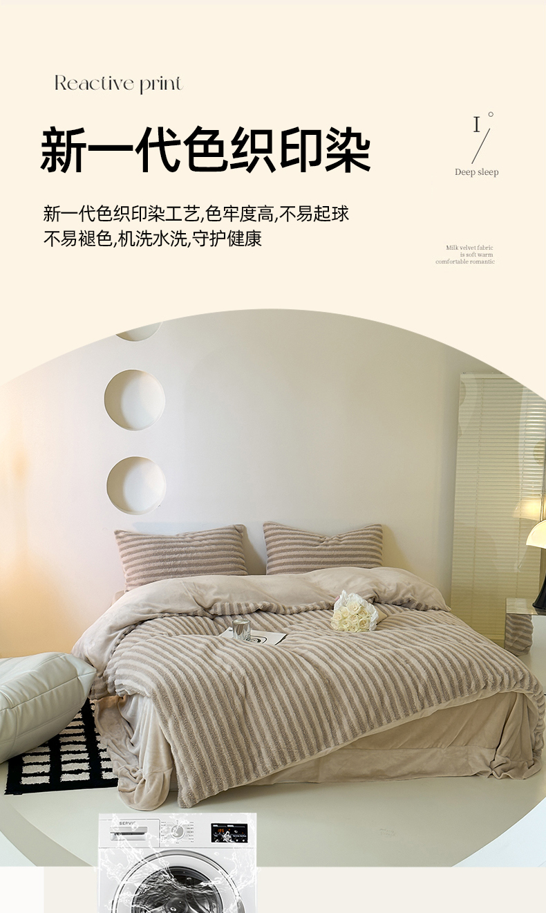 商品名称:玛奇朵 2023新款秋冬新品色织泰兔绒系列四件套 泰兔绒-条纹咖