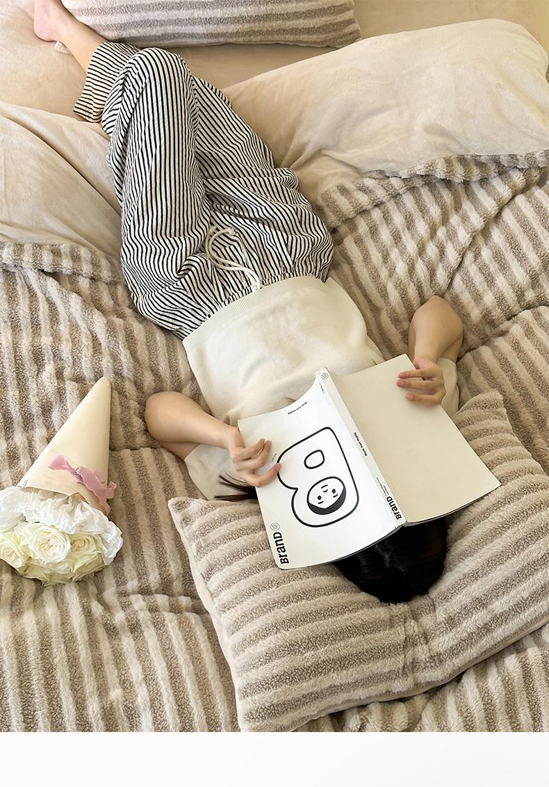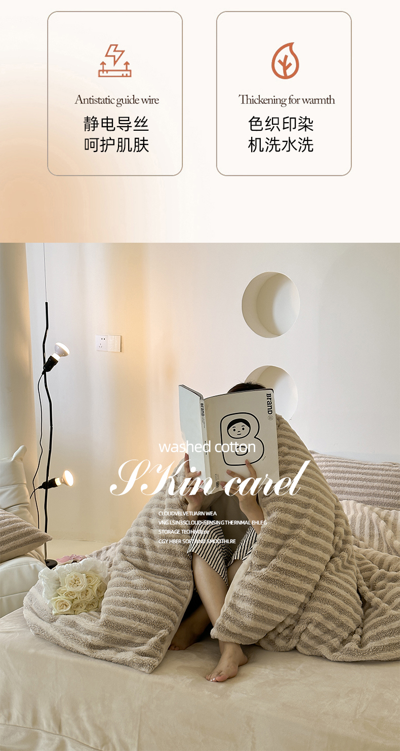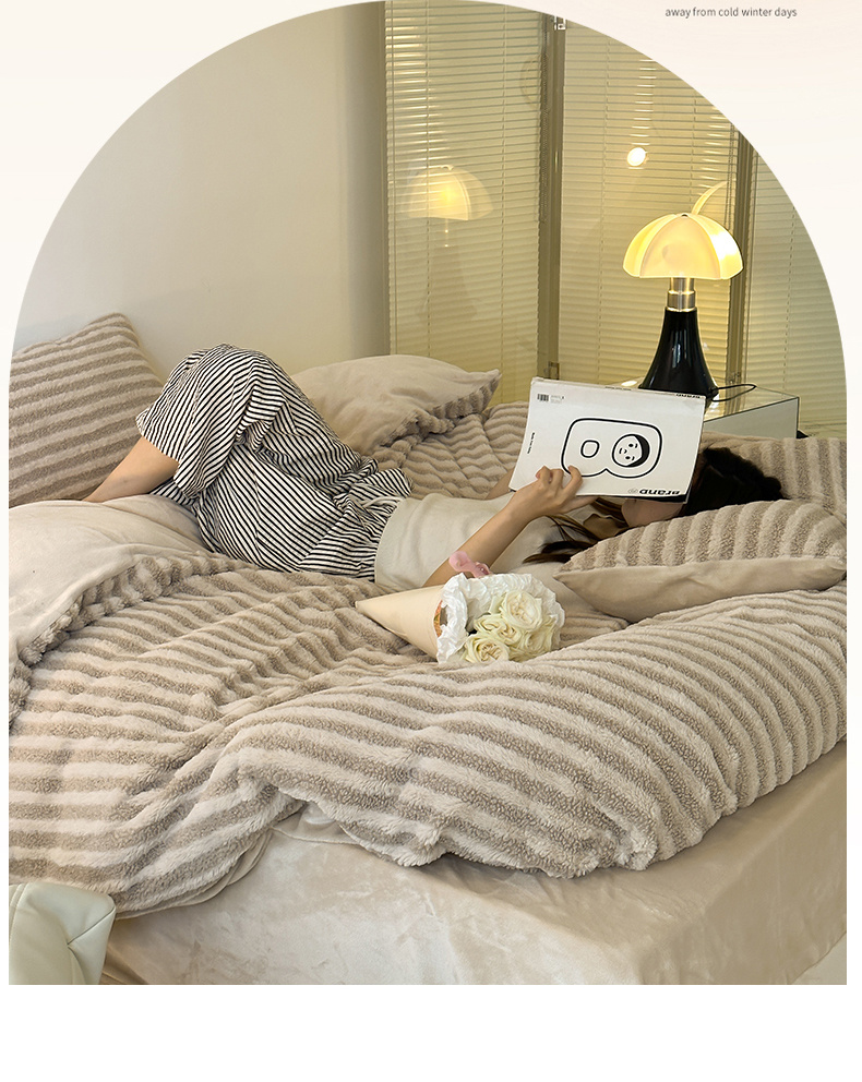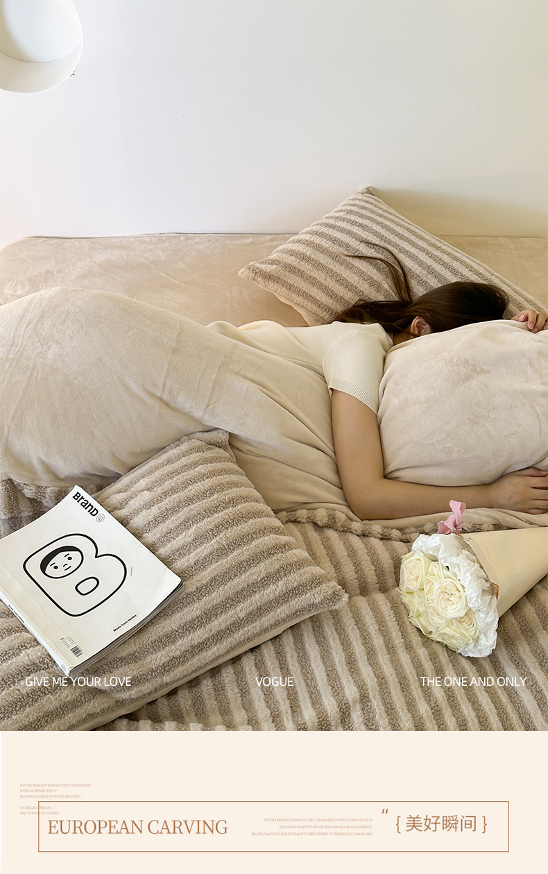 商品名称:玛奇朵 2023新款秋冬新品色织泰兔绒系列四件套 泰兔绒-条纹咖