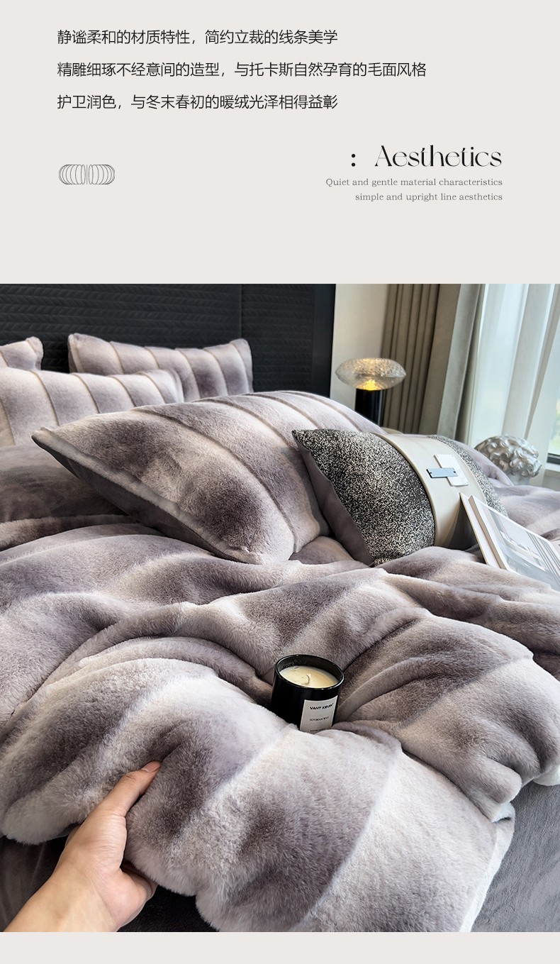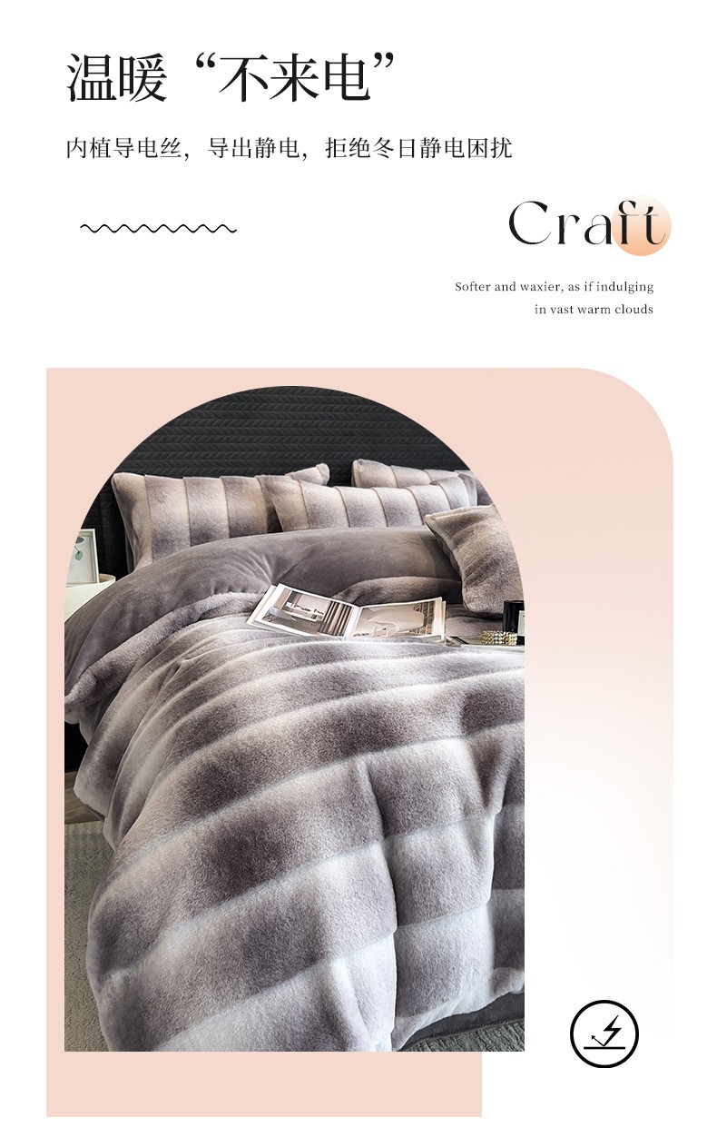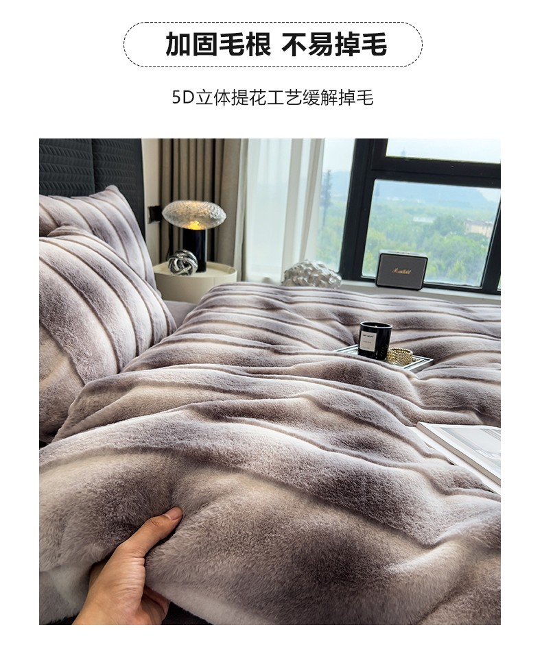 商品名称:宜代光年 2023新款尼采兔毛绒四件套 尼彩-墨蓝灰