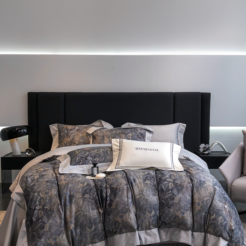 (总)若未家居 LOVEWE HOUSE 2026新款100S数码印花轻奢风四件套-波澜,波澜 爵士灰,波澜 公主粉,波澜 贝拉橘