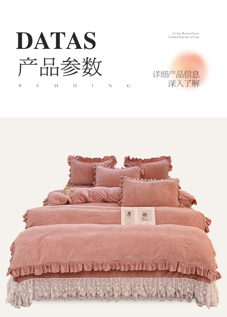 (总)宜凡家纺 2025新款兔绒提花牛奶绒夹棉床裙四件套,爱心 少女粉,爱心 粉紫,爱心 驼色,蝶舞 大红,蝶舞 米色,蝶舞 浅紫,蝶舞 玉色,简爱 苍青,简爱 豆沙紫,简爱 玉色,樱桃 苍青,樱桃 豆沙紫,樱桃 奶油白
