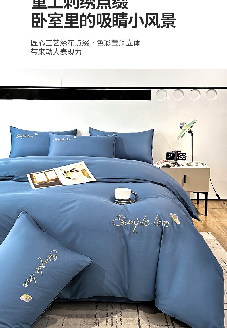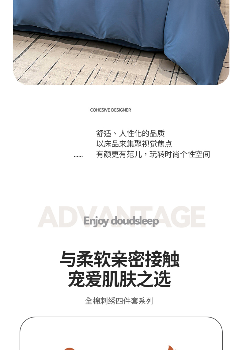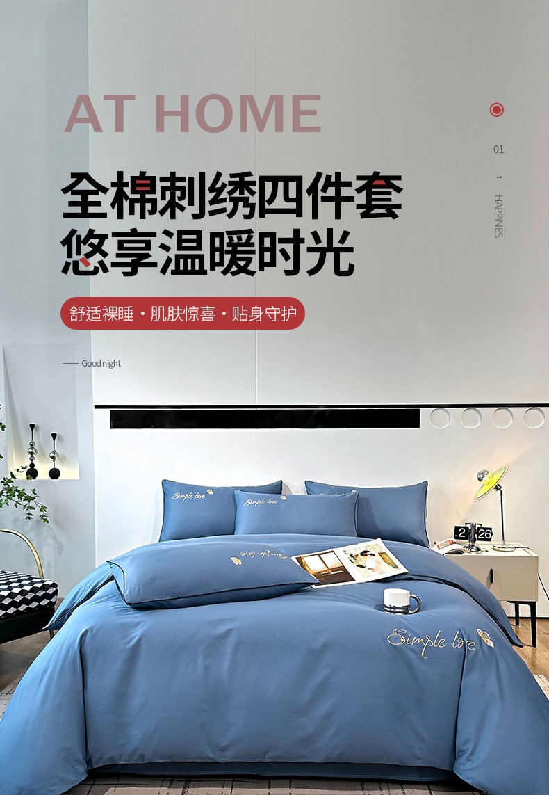 当前位置: 91家纺网 > 商品网购 > 床品套件 > 四件套 > 全棉普通四件套 > 宇彬 直播热爆新款全棉母婴级麻绳滚边纯色刺绣四件套 轻奢 宾利蓝