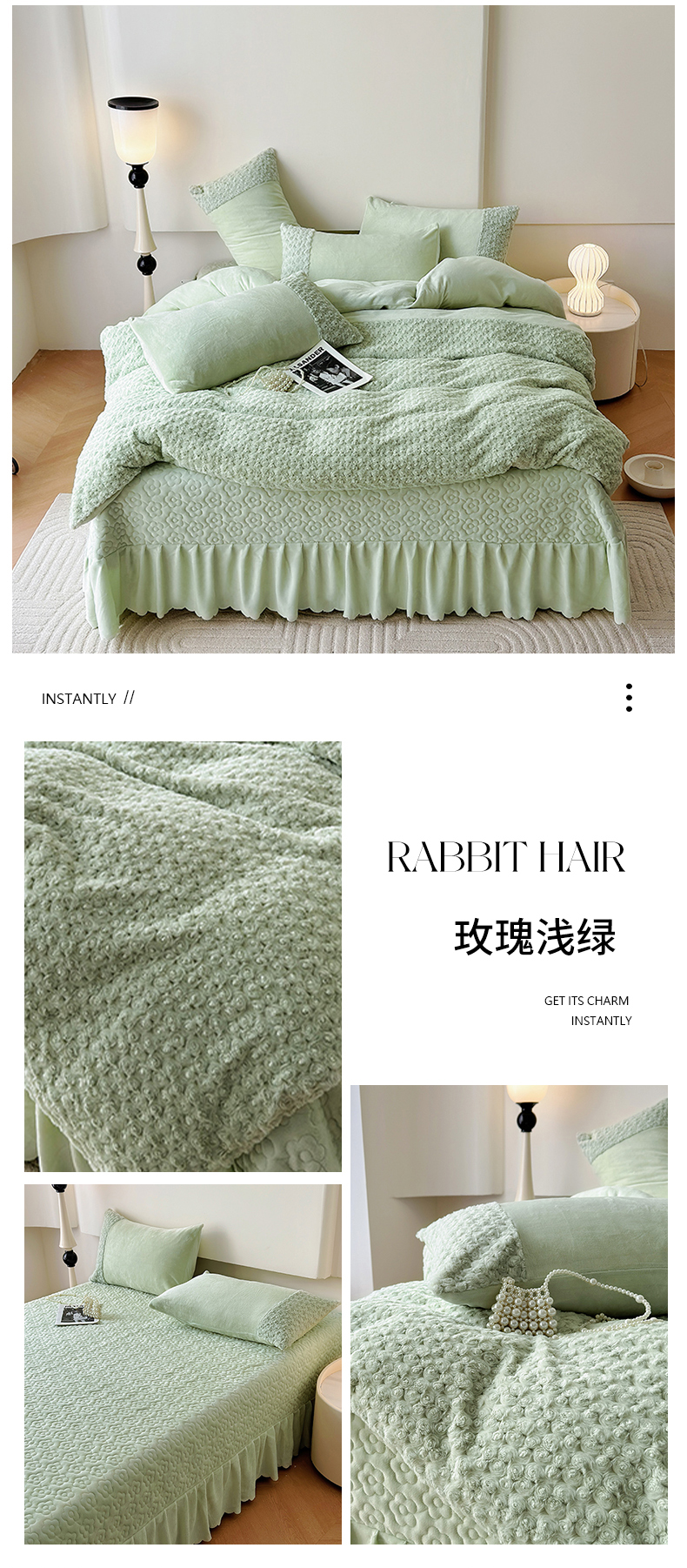 商品名称:舒梦琪 2023新款法式玫瑰兔绒提花四件套 玫瑰浅绿