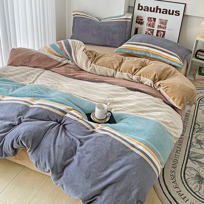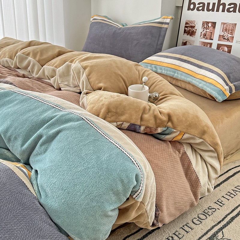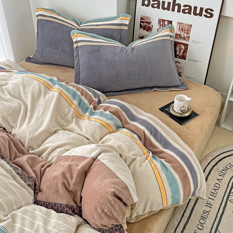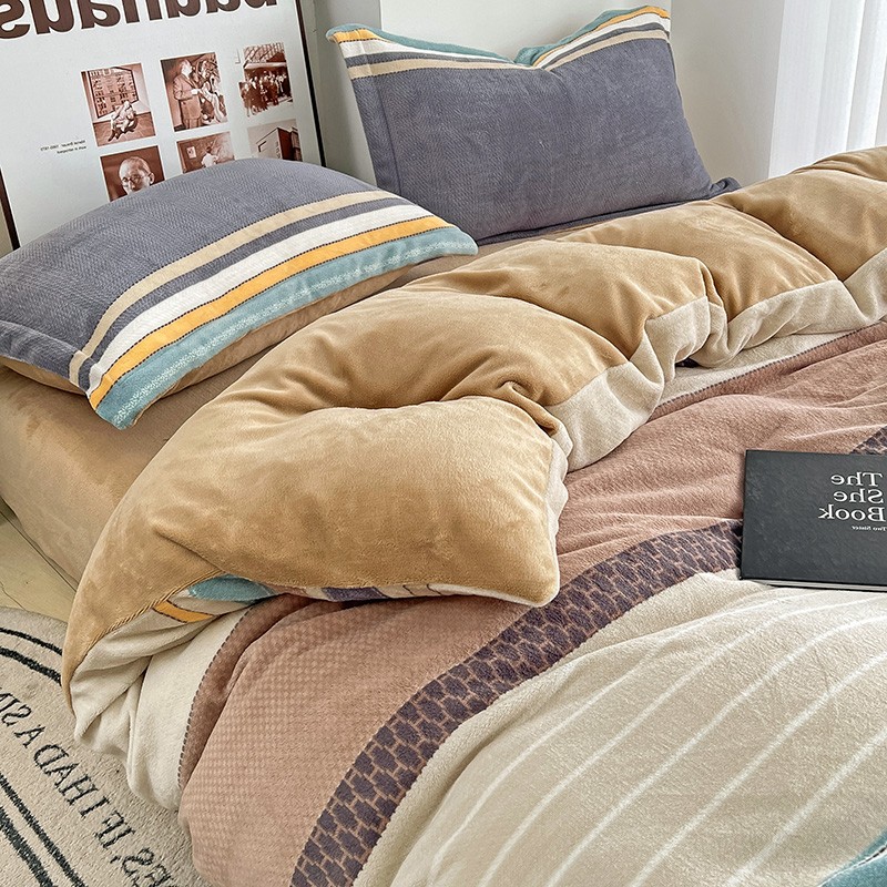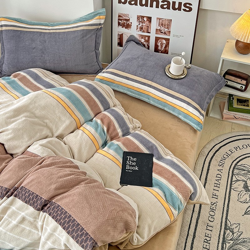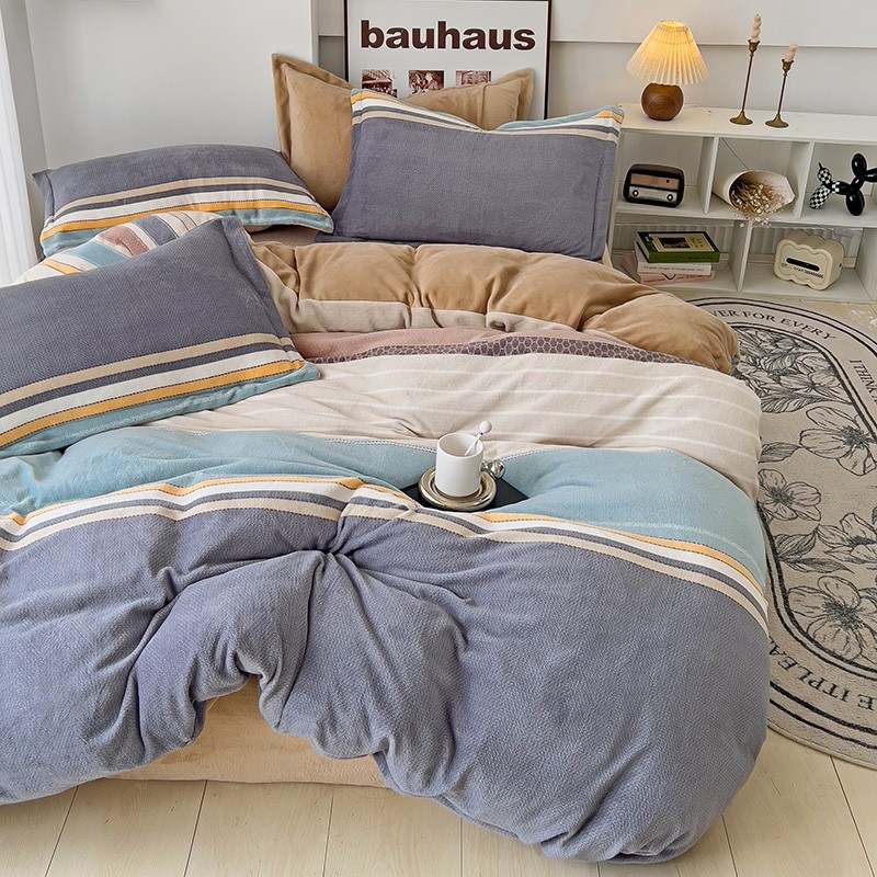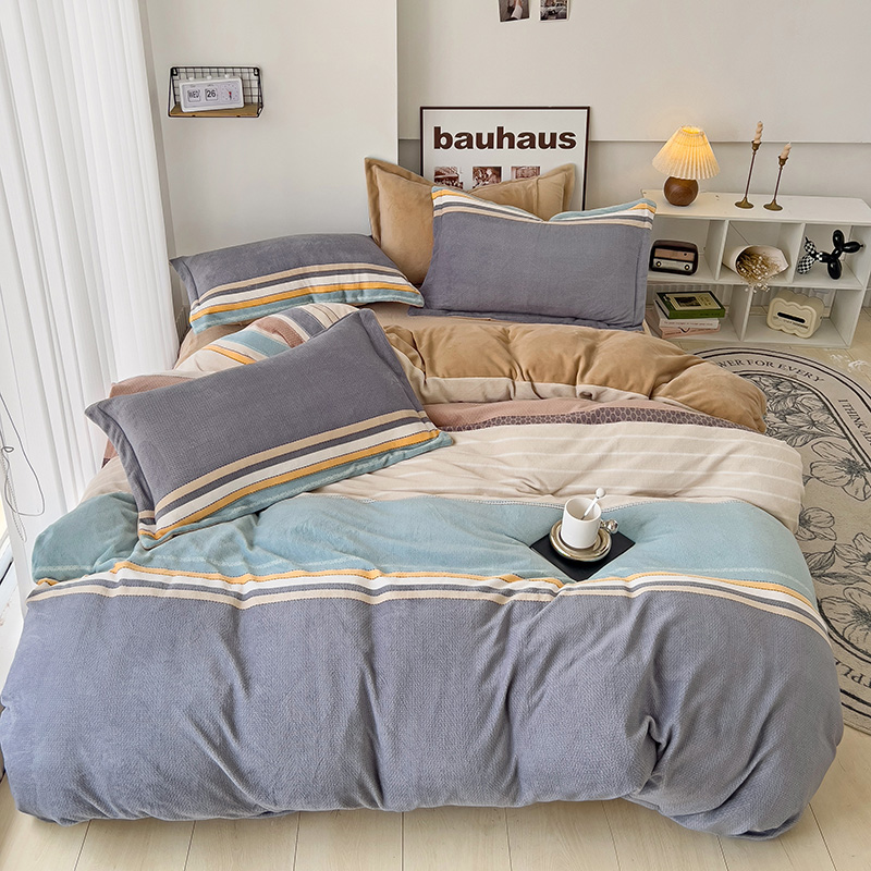 乐童2024新款吊边款牛奶绒四件套 莫兰迪