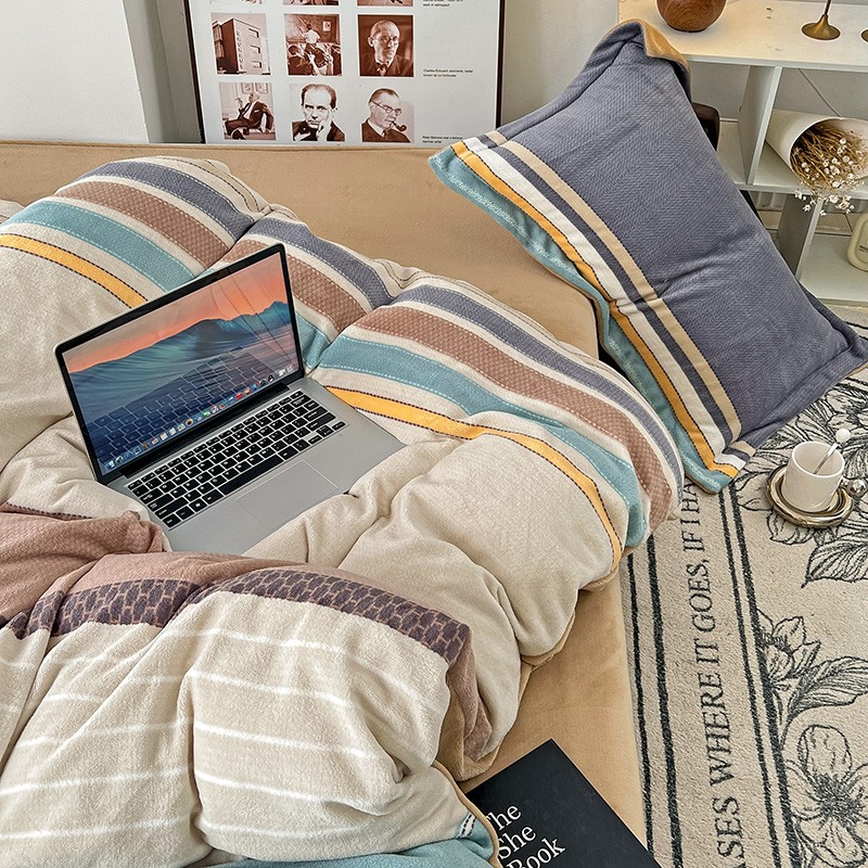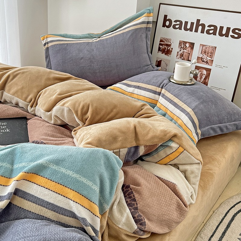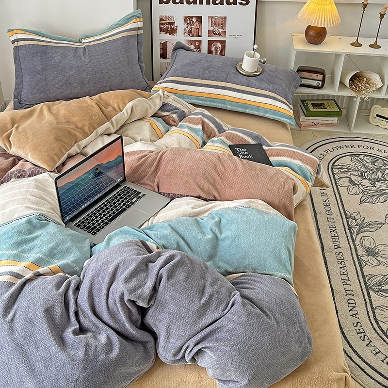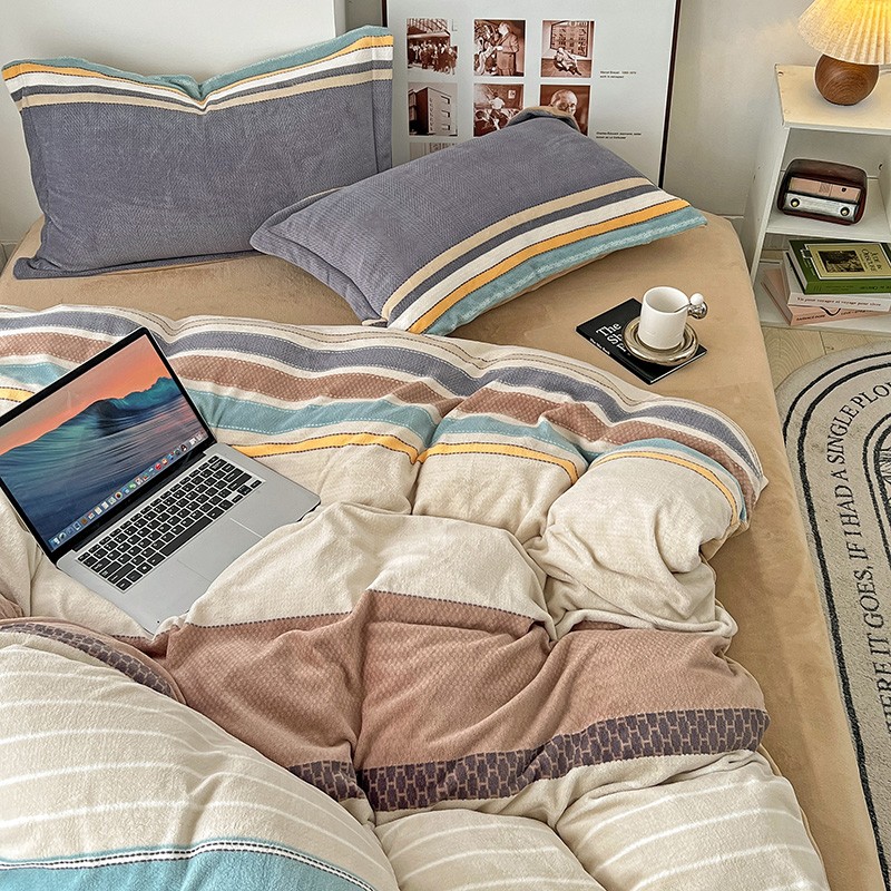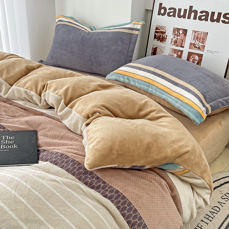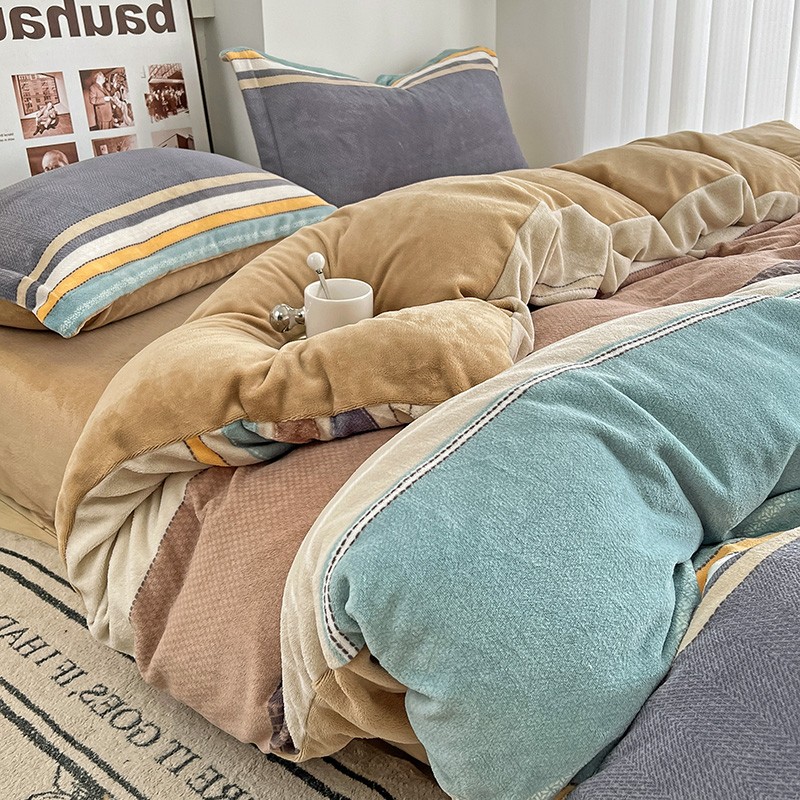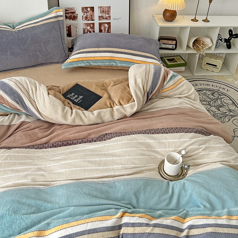 乐童2024新款吊边款牛奶绒四件套 莫兰迪