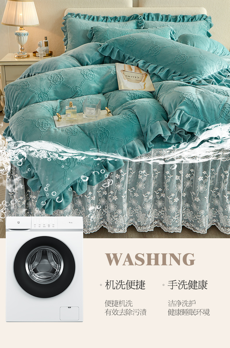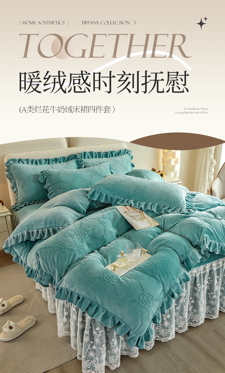 当前位置: 91家纺网 > 商品网购 > 床品套件 > 四件套 > 牛奶绒四件套 > 宜凡 2023新款烂花牛奶绒床裙四件套 海棠-薄荷绿