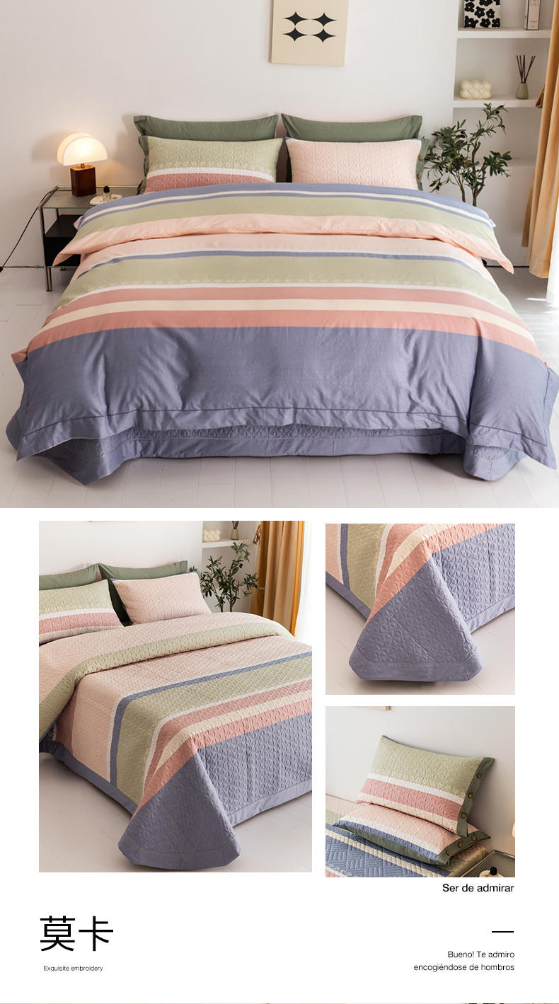 商品名称:优乐家纺 2025新款纯棉斜纹床盖款单层被套四件套 莫卡