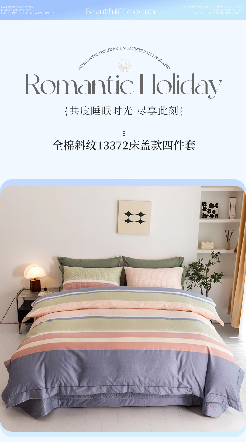 (总)优乐家纺 2025新款全棉斜纹13376单层被套夹棉床盖款四件套,安琪-黄,安琪-绿,波西米亚,博尔-咖,春意盎然,朵唯,花颜悦色,迷雾,慕斯,南薇,南薇-兰,普卡拉-红,普卡拉-兰,清婉,蔚然花,早春