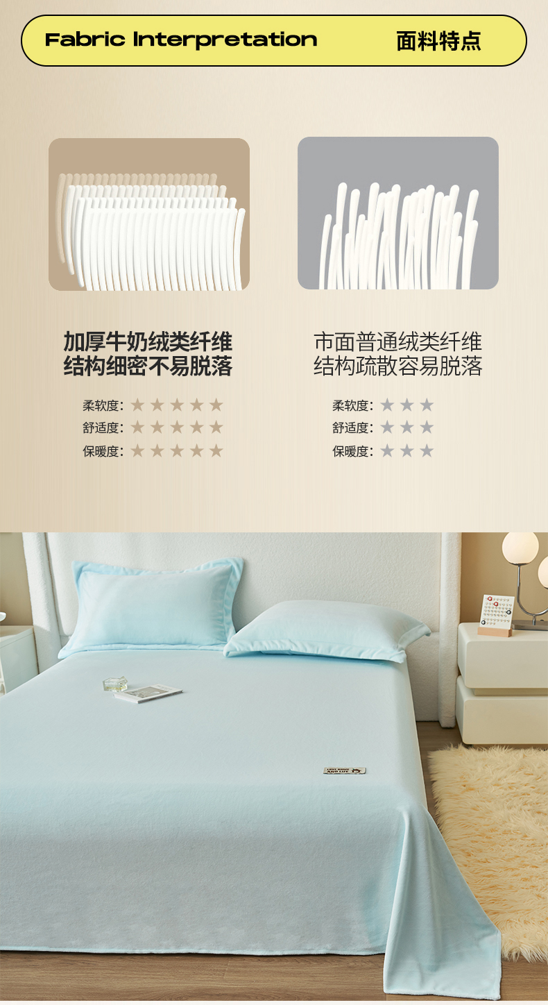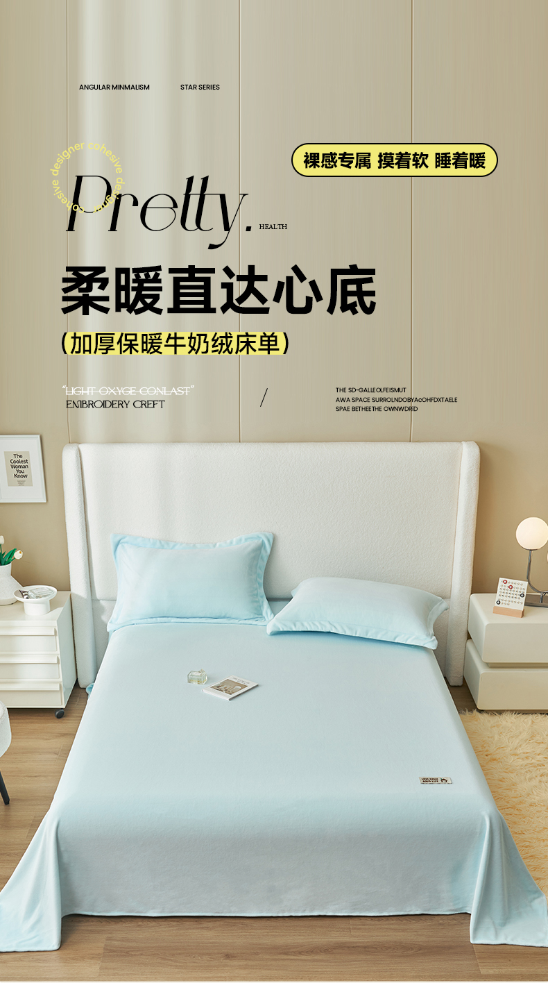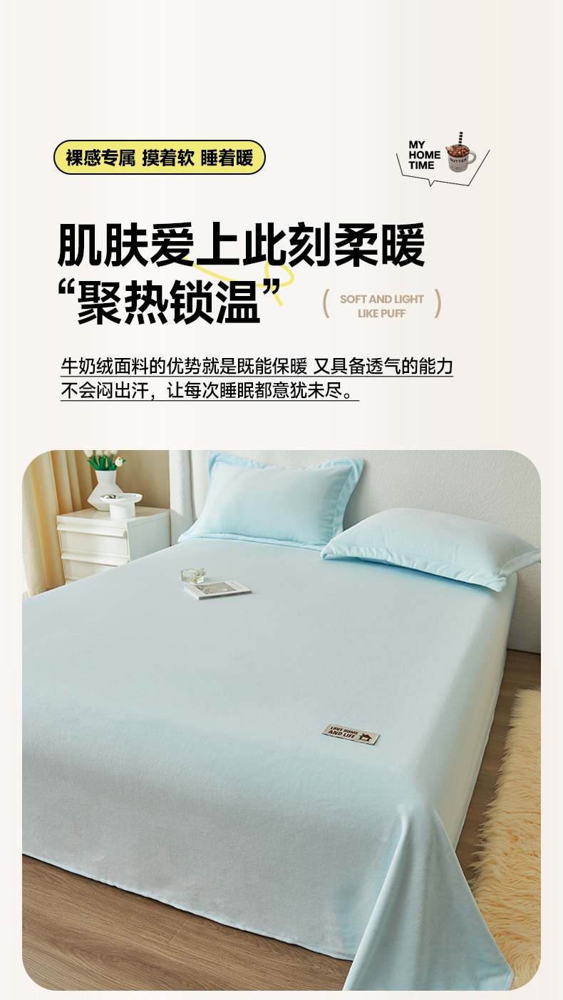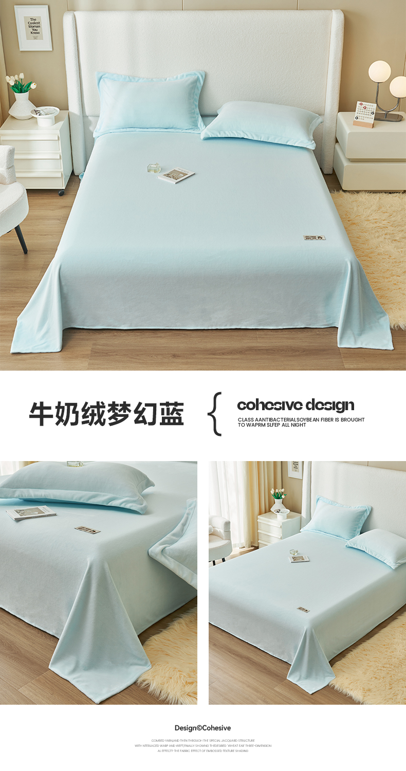 • 91家纺网 家纺一手货源 找家纺 艾佳 2025新款高克重加厚保暖牛奶绒床单 牛奶绒梦幻蓝